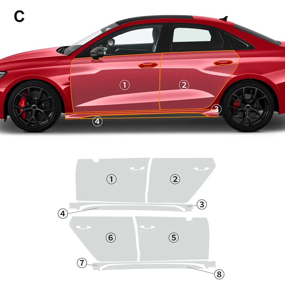 KUNGKIC for Audi RS3 Sedan Limousine 2021-2024 Car Paint Protection Film Clear Bra PPF Decal Kit Anti-Scratch Body Sticker TPU