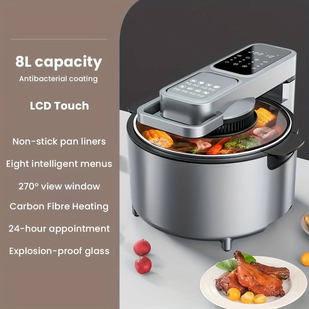 Large Capacity 8L Air Fryer with 270° Panoramic View Window - Perfect for Families of 4-5 - Low Fat Electric Oven with Automatic Power Off and Hot Air Circulation - Multifunctional French Fries Maker - Bake Whole Chicken with Ease