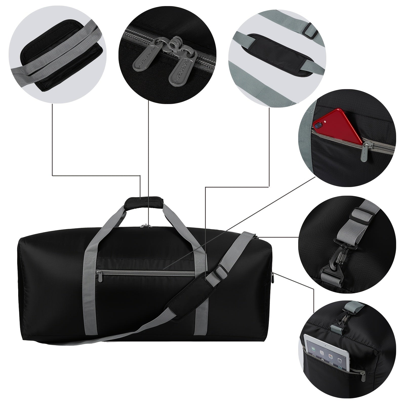 Large-capacity Foldable Travel Storage Bag, Lightweight Duffel Zipper Bag, Portable Bag With Handles