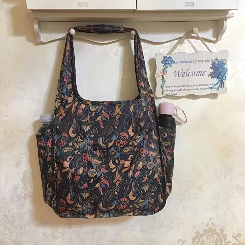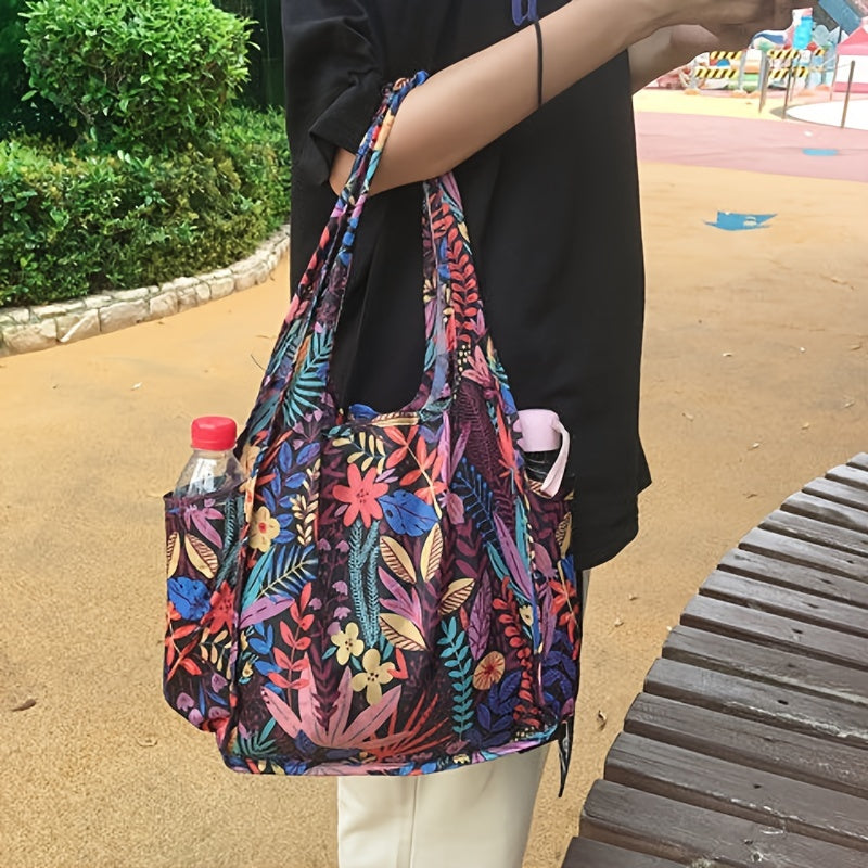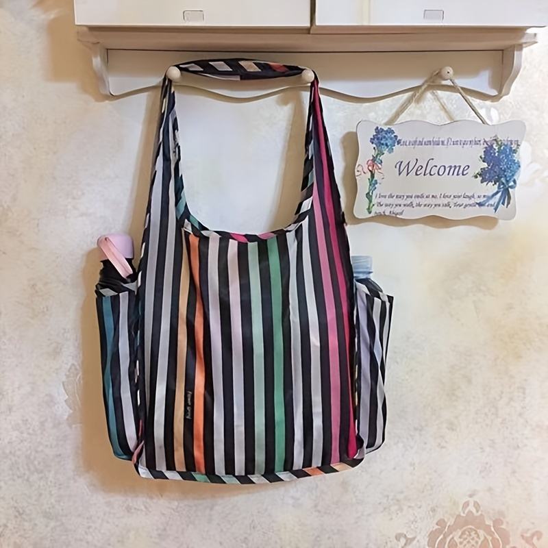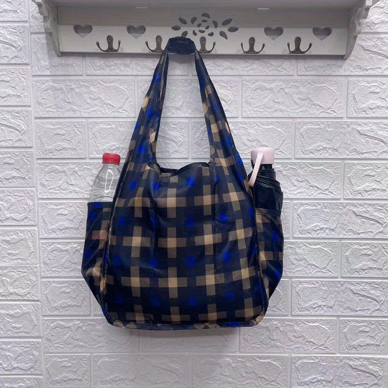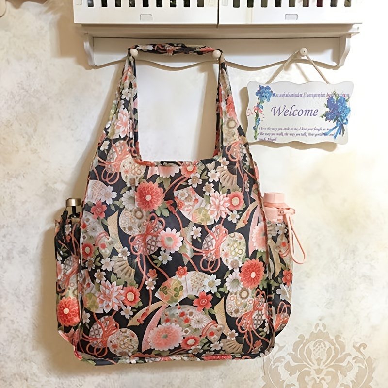 Large Capacity Shopping Bag, Fashion Foldable Grocery Bag, Versatile Tote Bag With Side Pocket