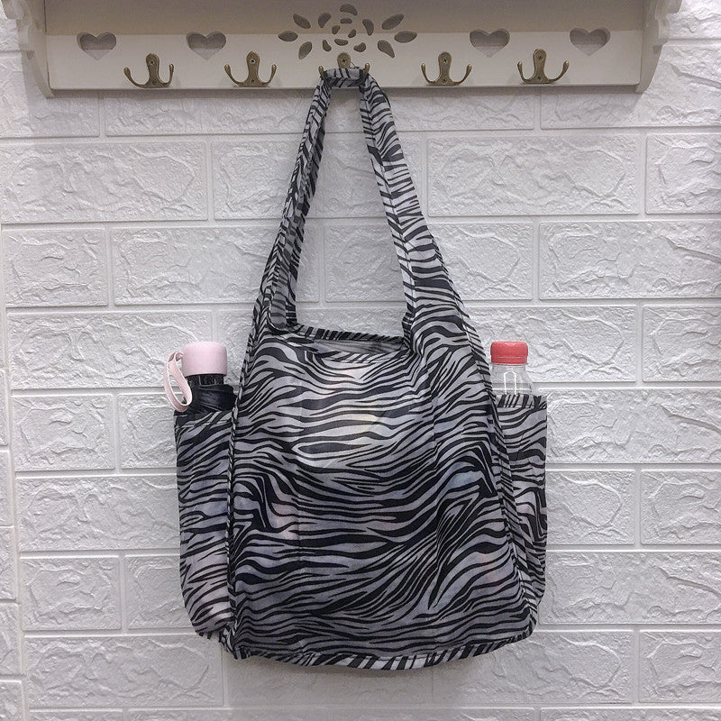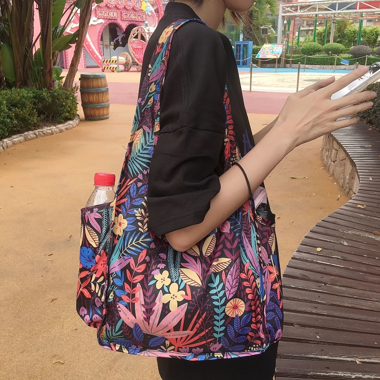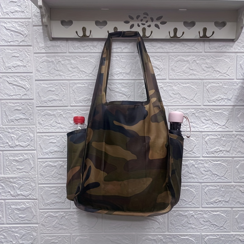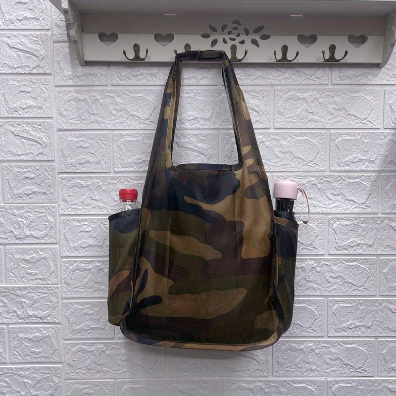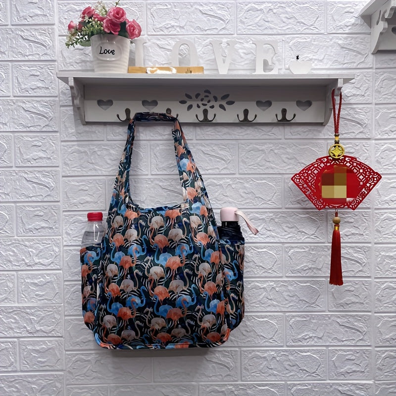 Large Capacity Shopping Bag, Fashion Foldable Grocery Bag, Versatile Tote Bag With Side Pocket