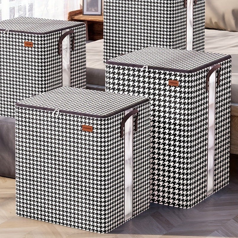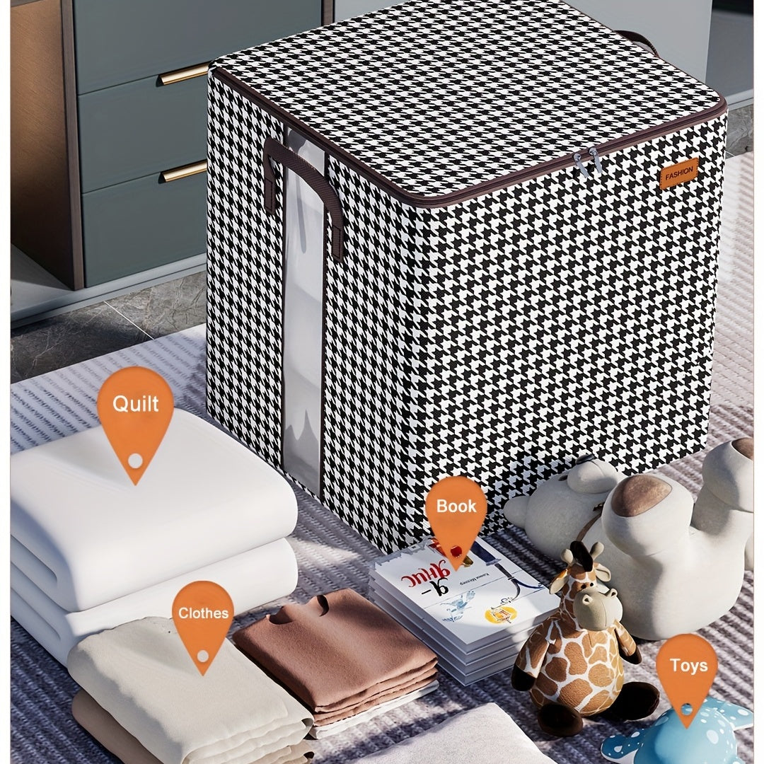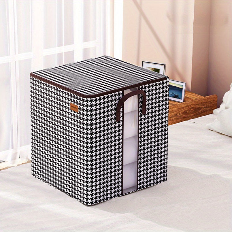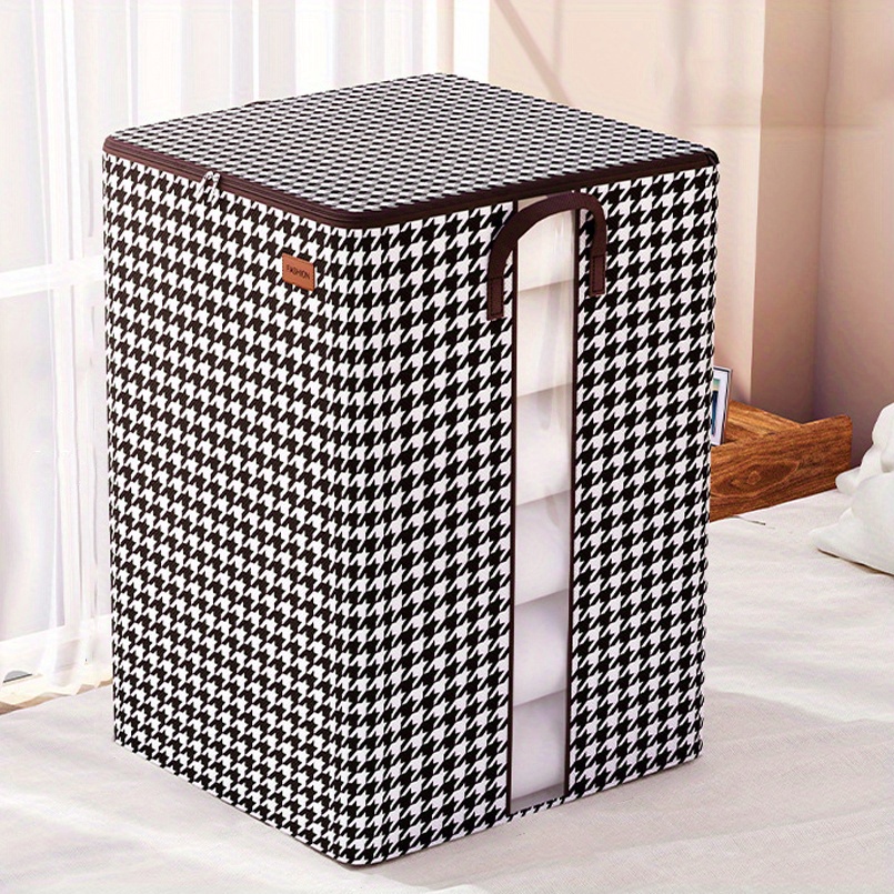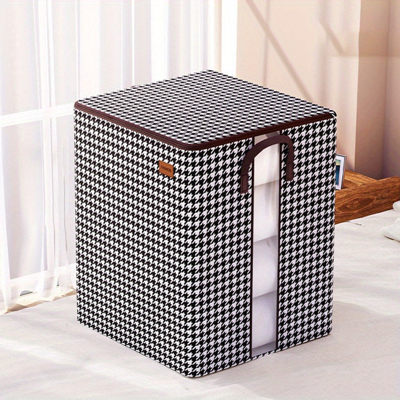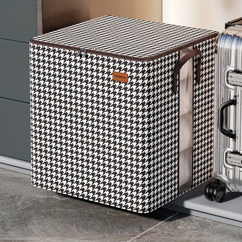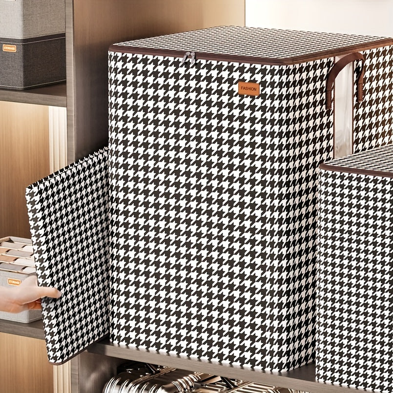 Large Capacity Storage Box, Lightweight Zipper Organzier, Houndstooth Pattern Container