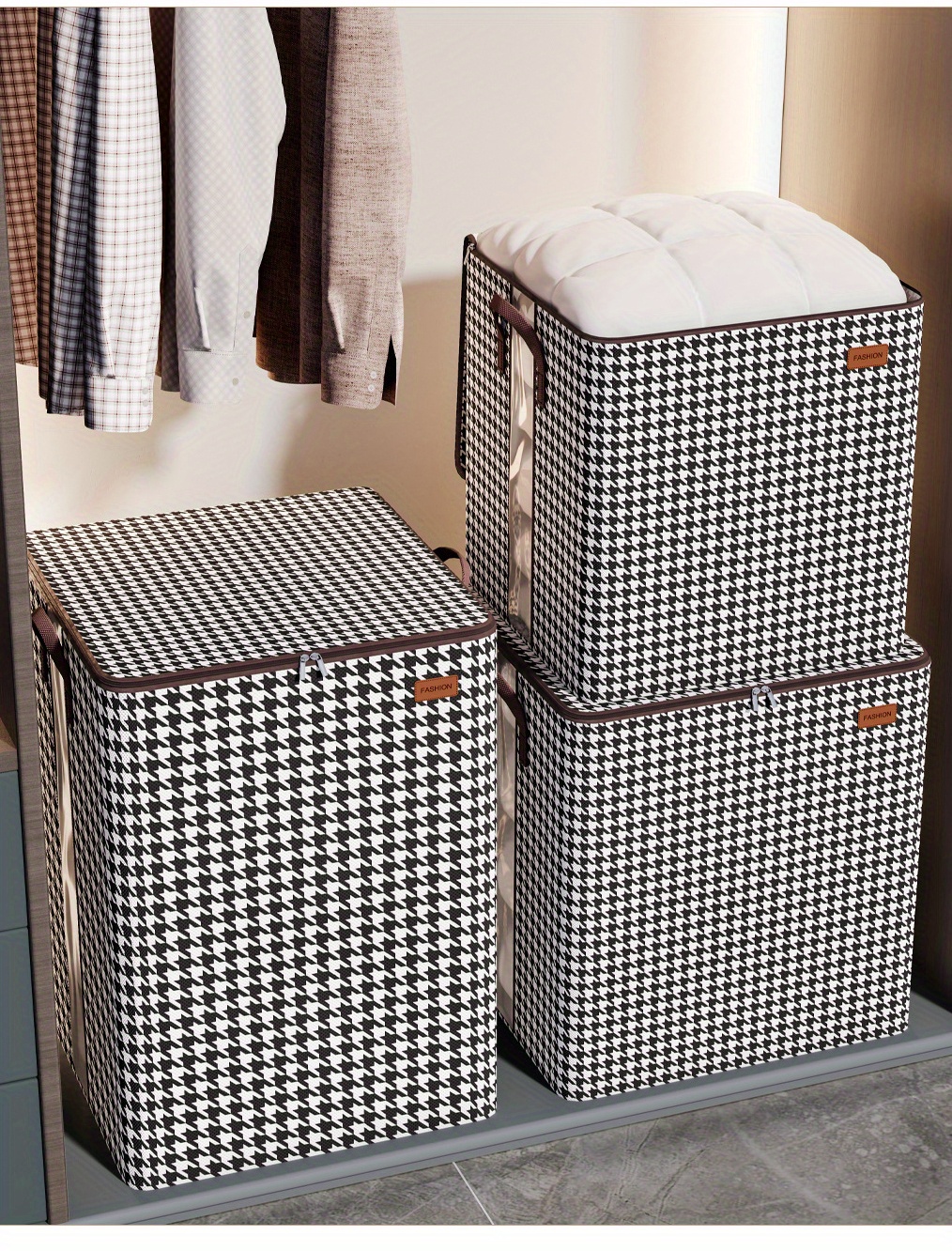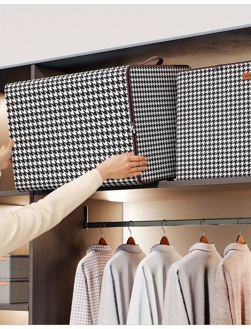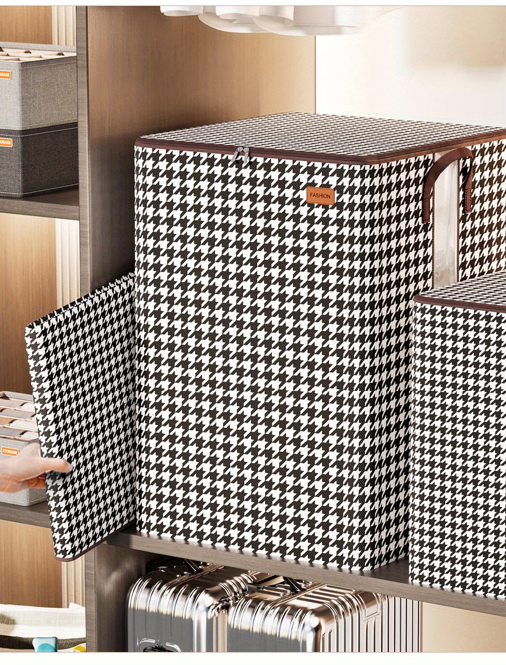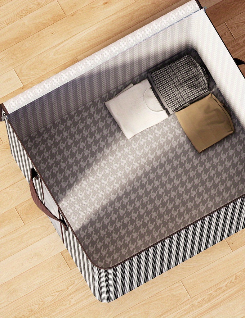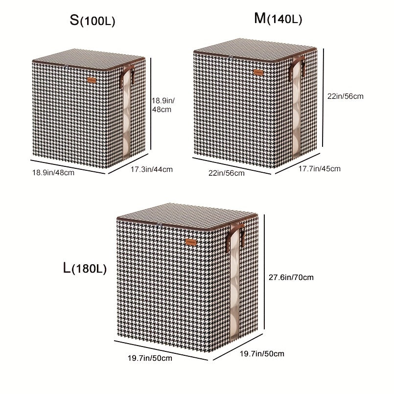 Large Capacity Storage Box, Lightweight Zipper Organzier, Houndstooth Pattern Container