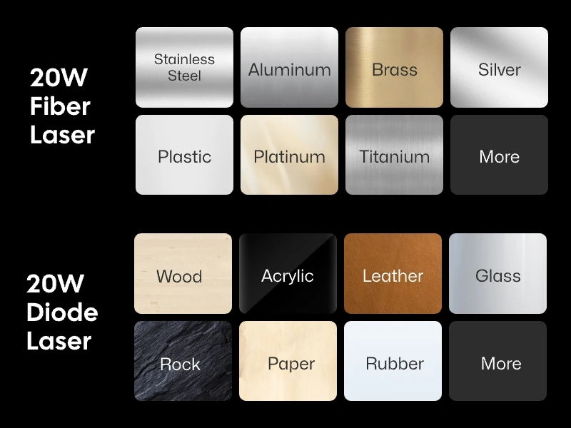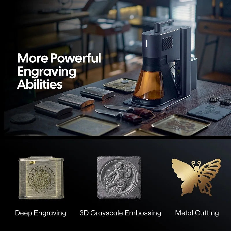 Deep engraving for high-contrast markings, vivid 3D grayscale embossing, ultra-precise metal cutting.