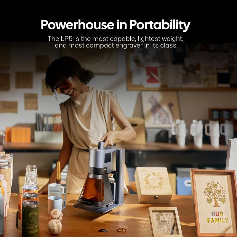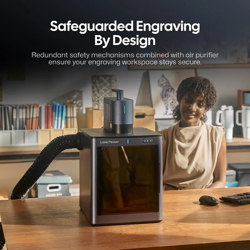 Safely engrave and deliver instant services indoors, for retail stores, maker spaces and creative studios.