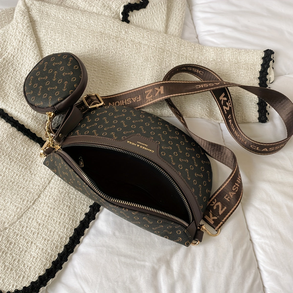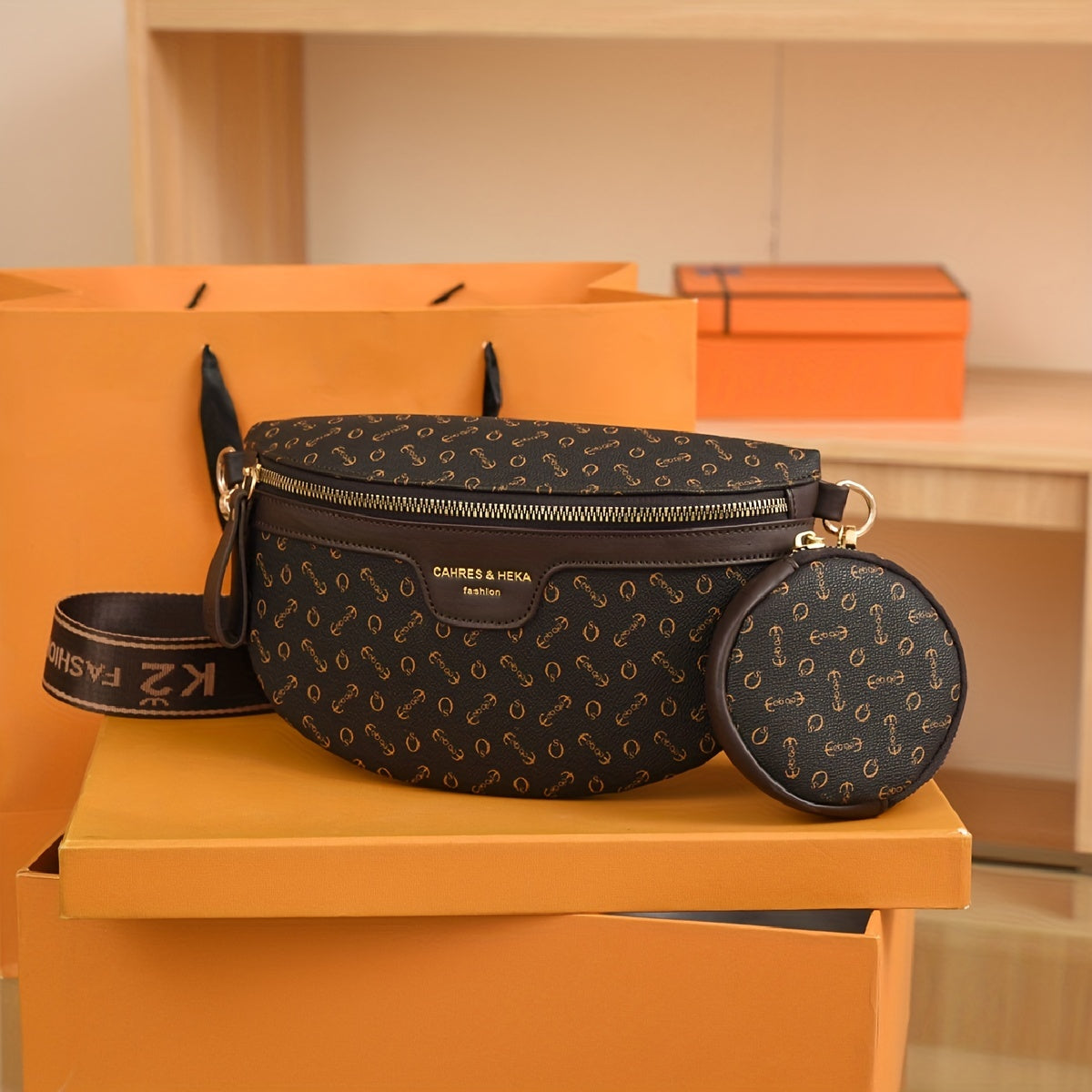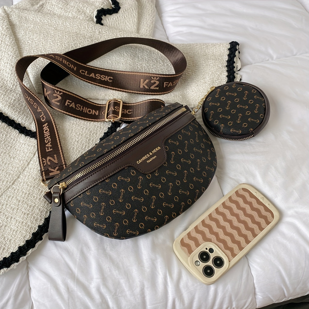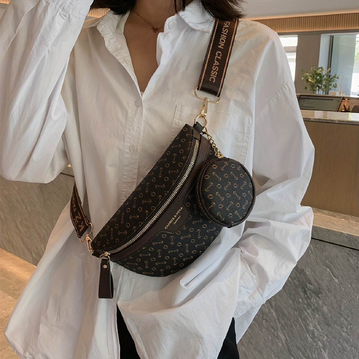 Letter Print Waist Bag With Coin Purse, Vintage Travel Crossbody Bag, Women's Faux Leather Chest Bag