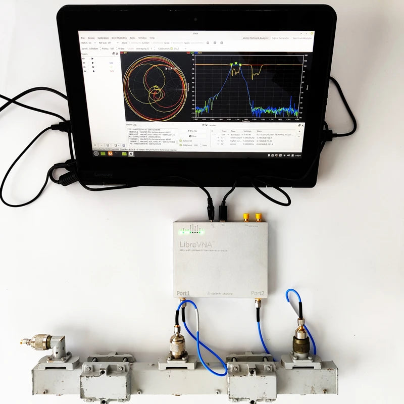 LibreVNA (TM) is a USB based full 2-port vector network analyzer designed by Jankae. Using 3 ADCs to sample data simultaneously and using FPGAs for signal processing, it is capable of scanning over 10,000 points of full dual-port measurements in less than 1 second. The ultra-low noise power supply design and the use of 16bit ADC, together with the precision CNC's aluminum shielded housing, achieve up to 100dB of effective dynamics. Many aspects are already comparable to lab-grade VNAs, but this is still a work-in-progress project. Some design features may not be perfect, especially the performance will drop when the frequency is higher than 3GHz, please fully understand the possible limitations before buying this machine. If you have any suggestions for future releases, please feel free to contact us as well.