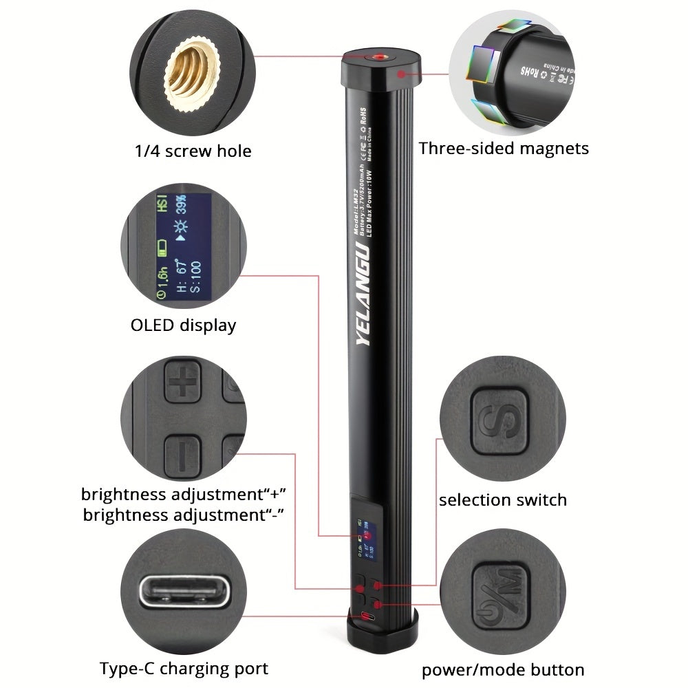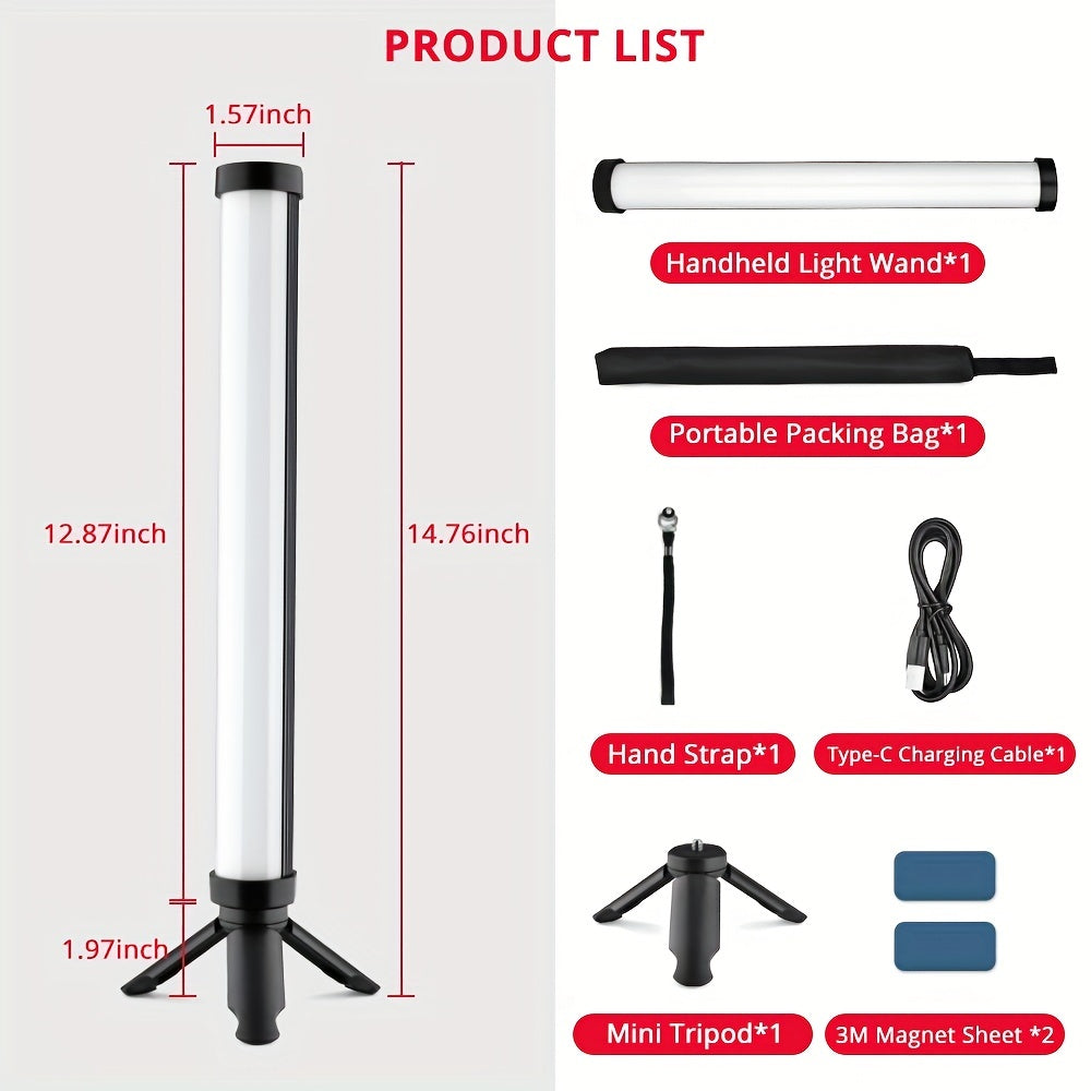 【Handheld RGB stick light】Double color temperature is adjustable from 2500K to 9900K, 12 levels of brightness can be adjusted freely, high illumination can reach 1000LM, 120° large lighting angle, RA>95, provide you with white light, warm light, natural light, for portrait, Live Streaming, Ambient Led, Light Painting Photography and more.