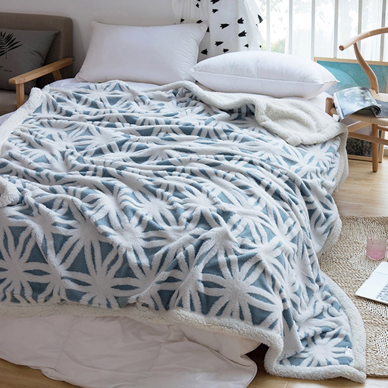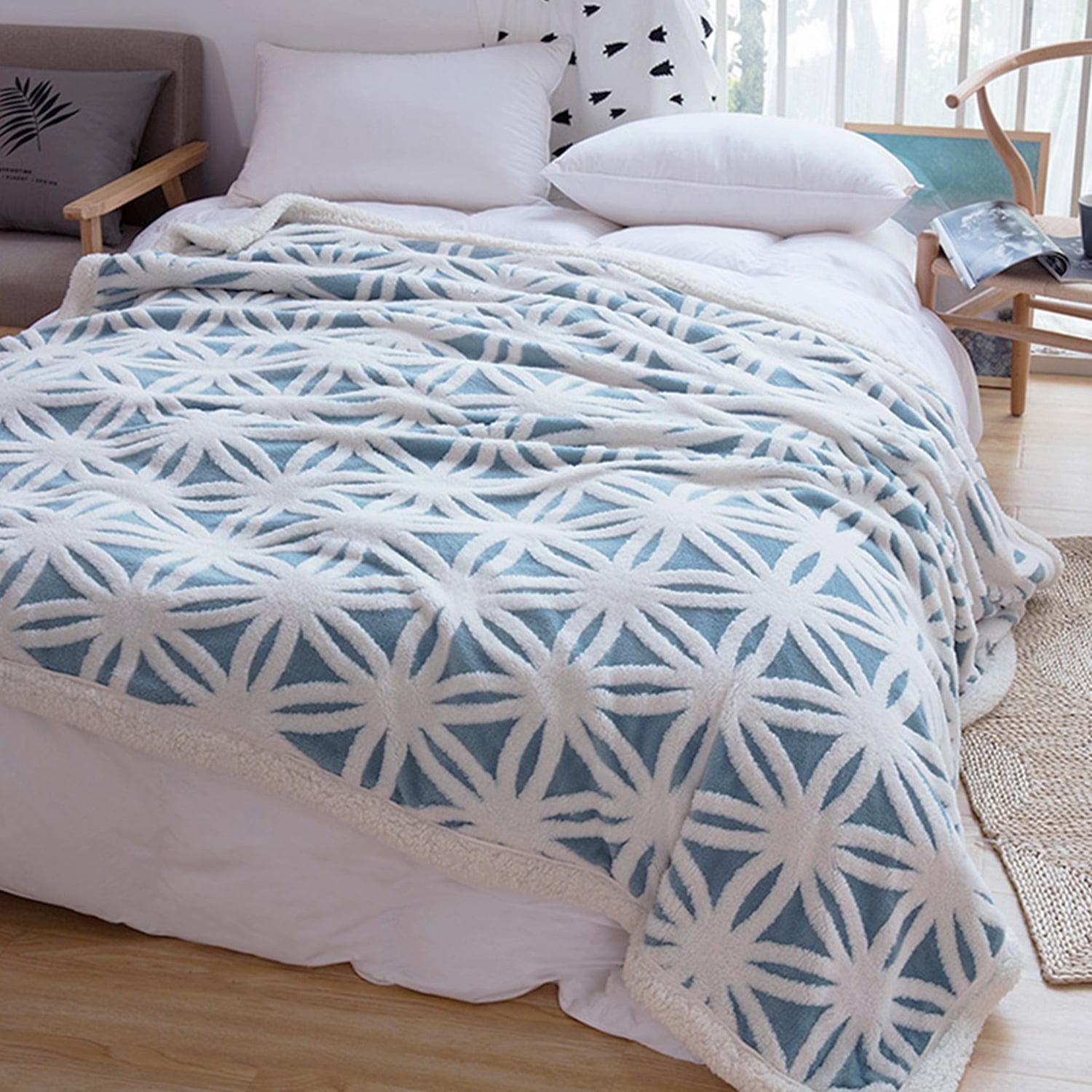 - 【Soft and Fluffy Reversible Blanket】- No matter how you nestle, you'll always come face-to-face with a luxuriously soft blanket!One side is a nice fluffy sherpa fleece and the other is super soft microfiber.Double-sided design offers you different soft with smooth and fluffy feeling.