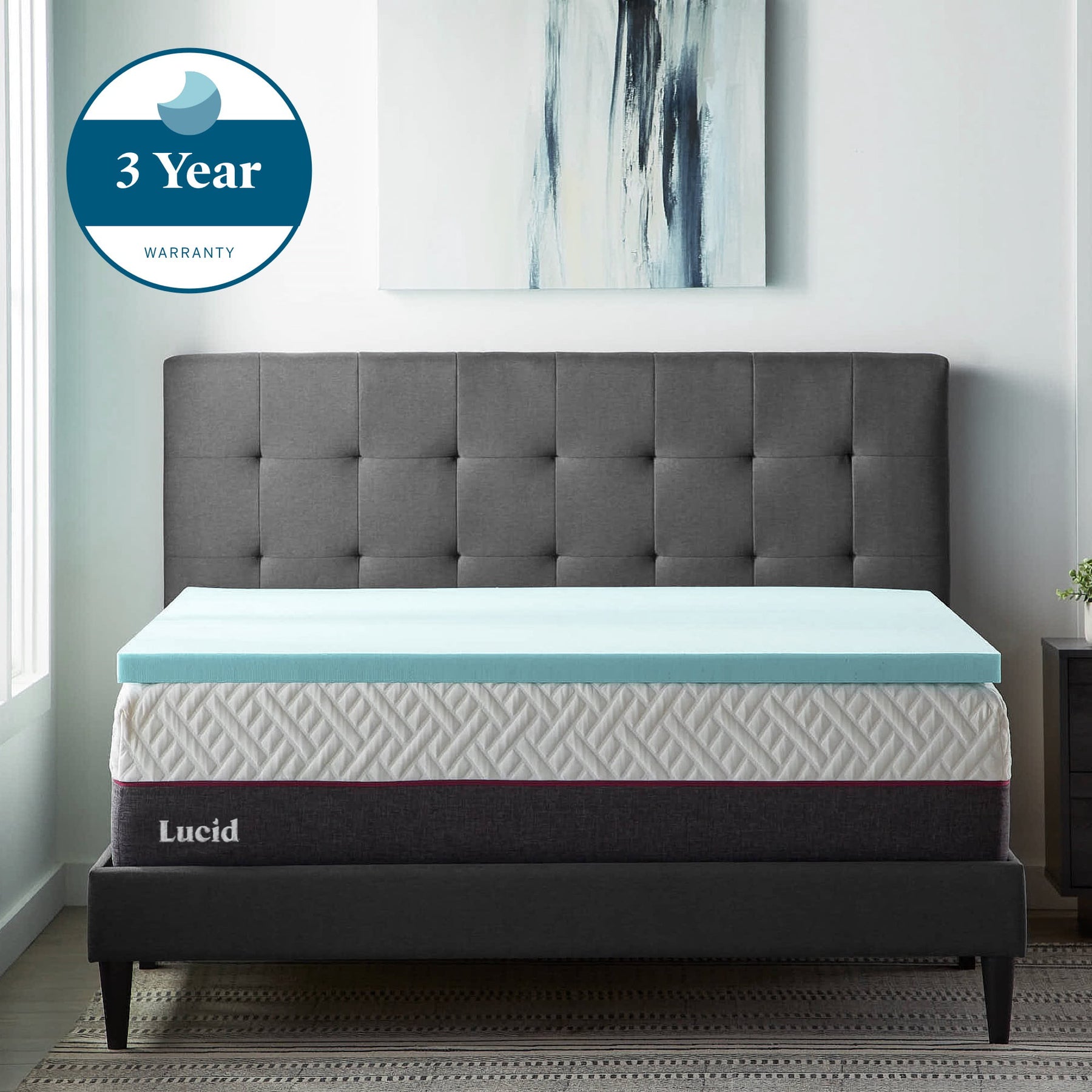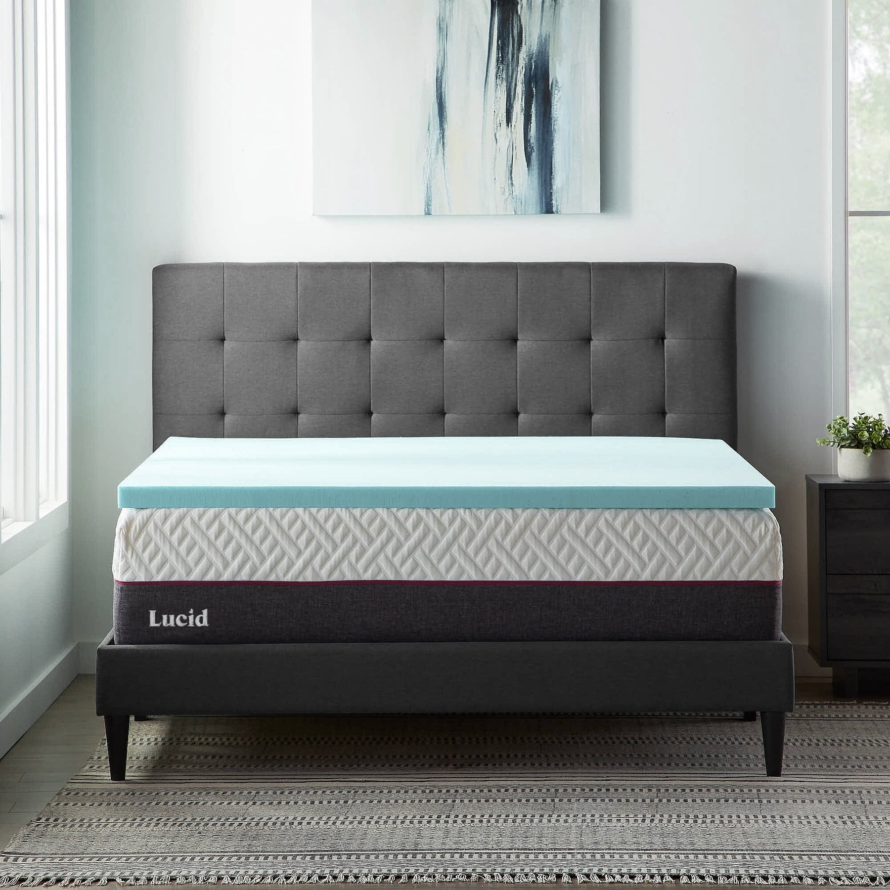 Lucid Memory Foam Mattress Topper, Queen, 2 inch, Cooling Gel and Aloe Infused:
