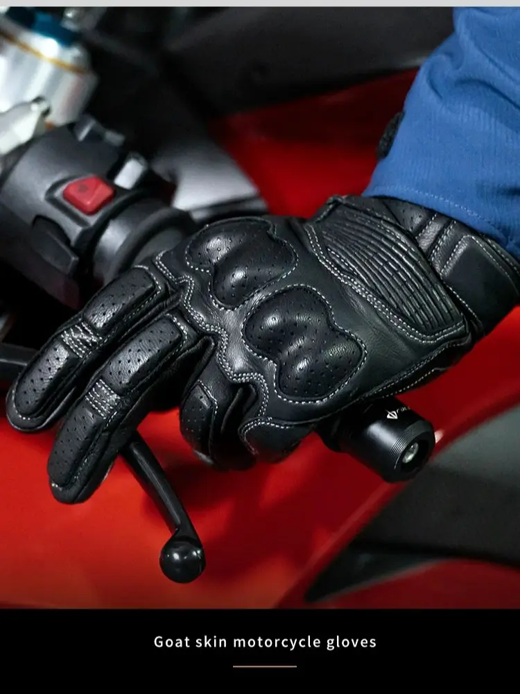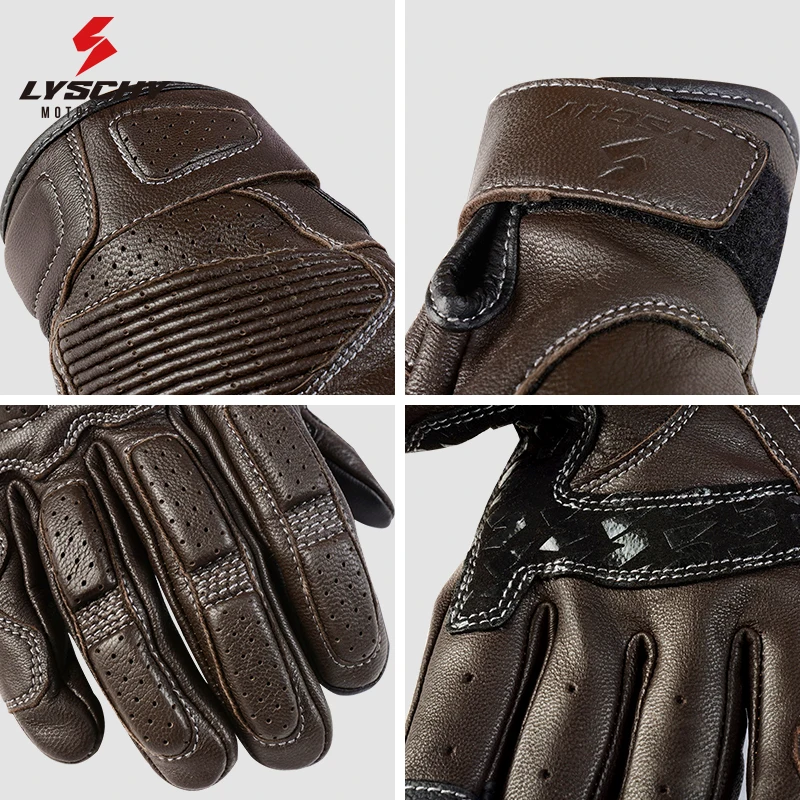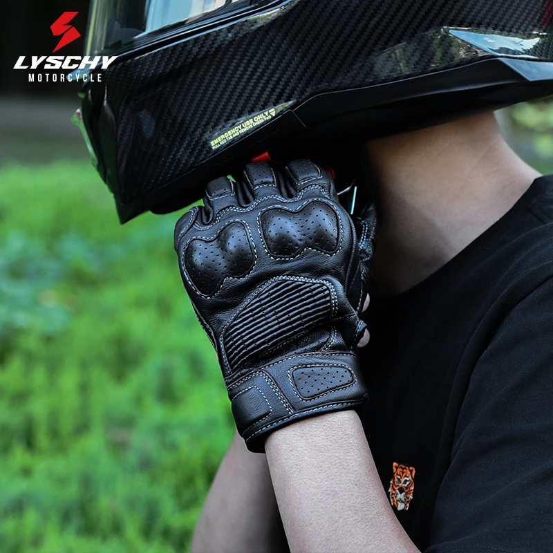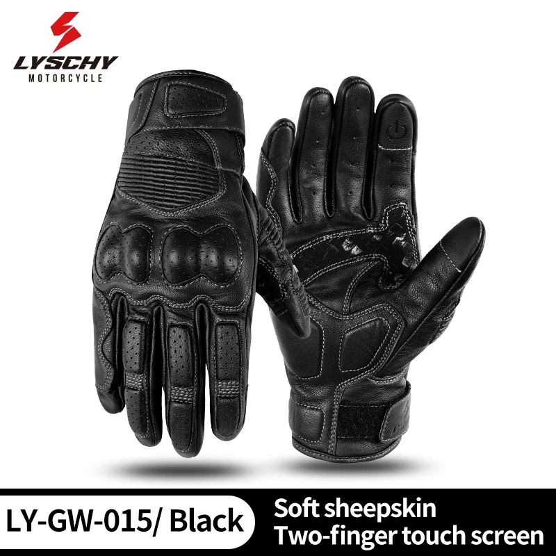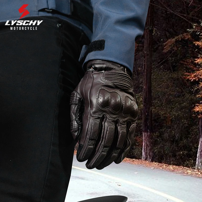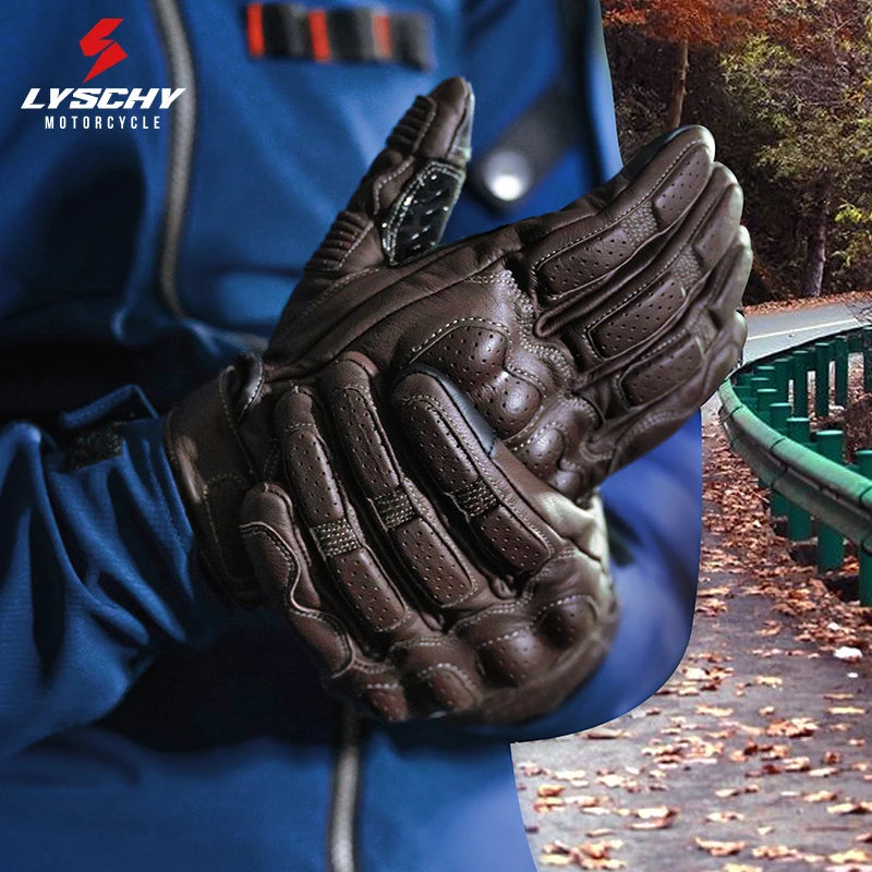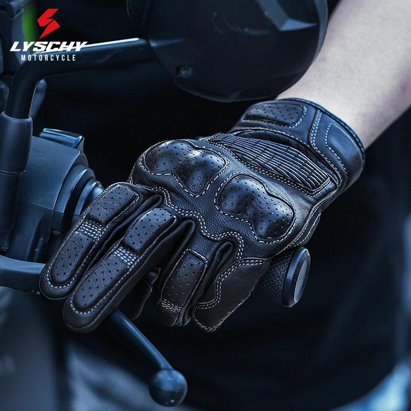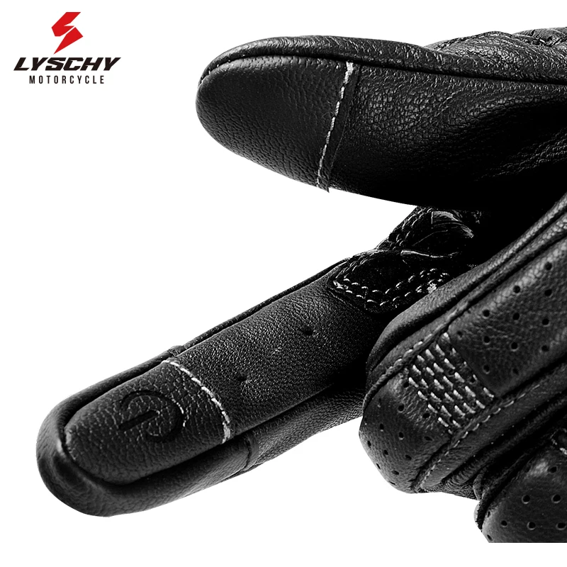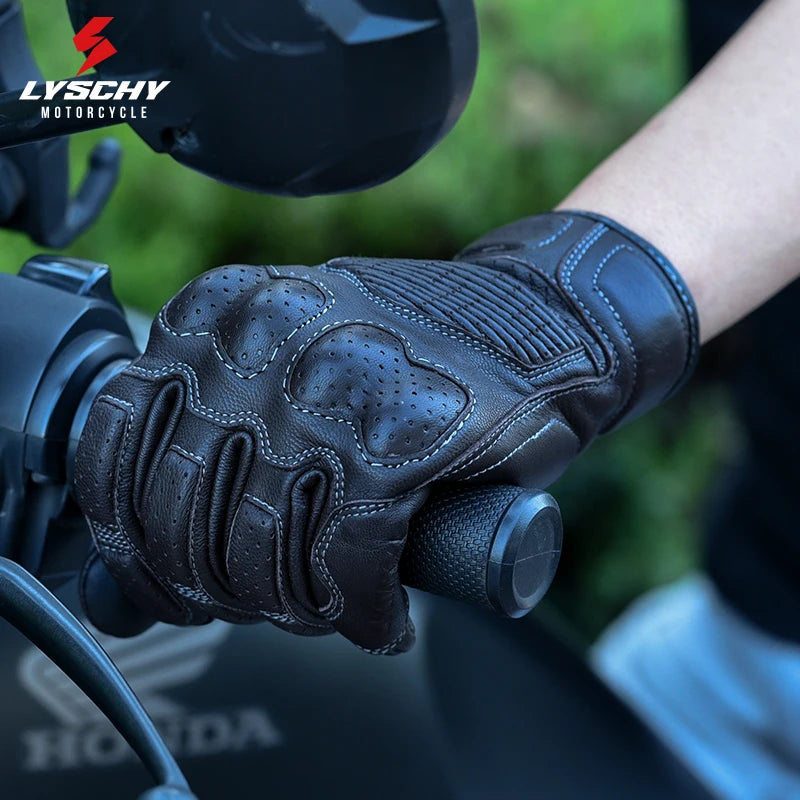 LYSCHY Motorcycle Leather Gloves Soft Goat Skin Full Finger Gloves Drop-proof Touch Screen Breathable Off-Road Gloves