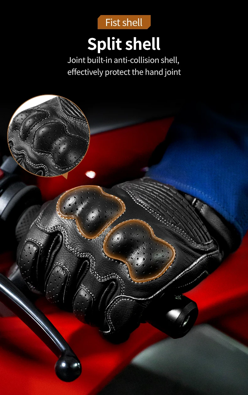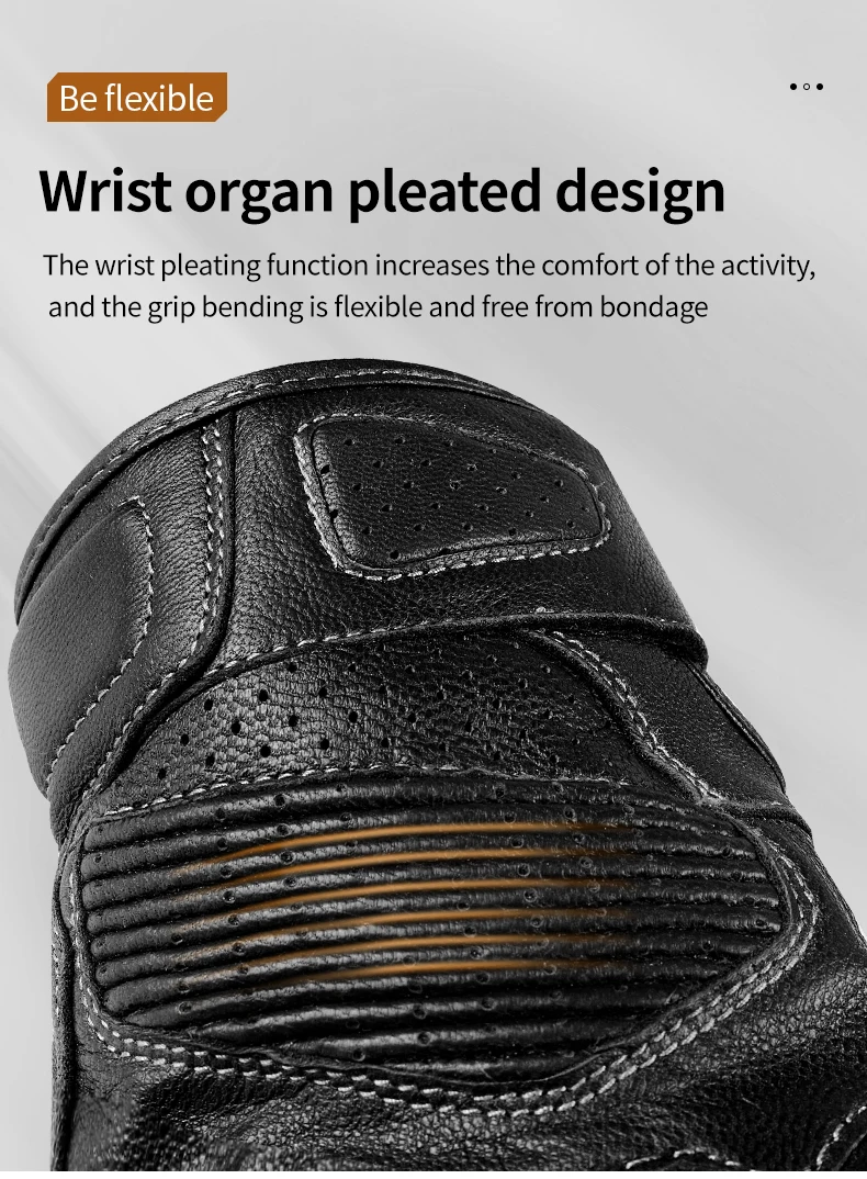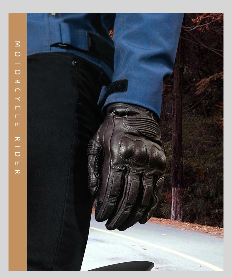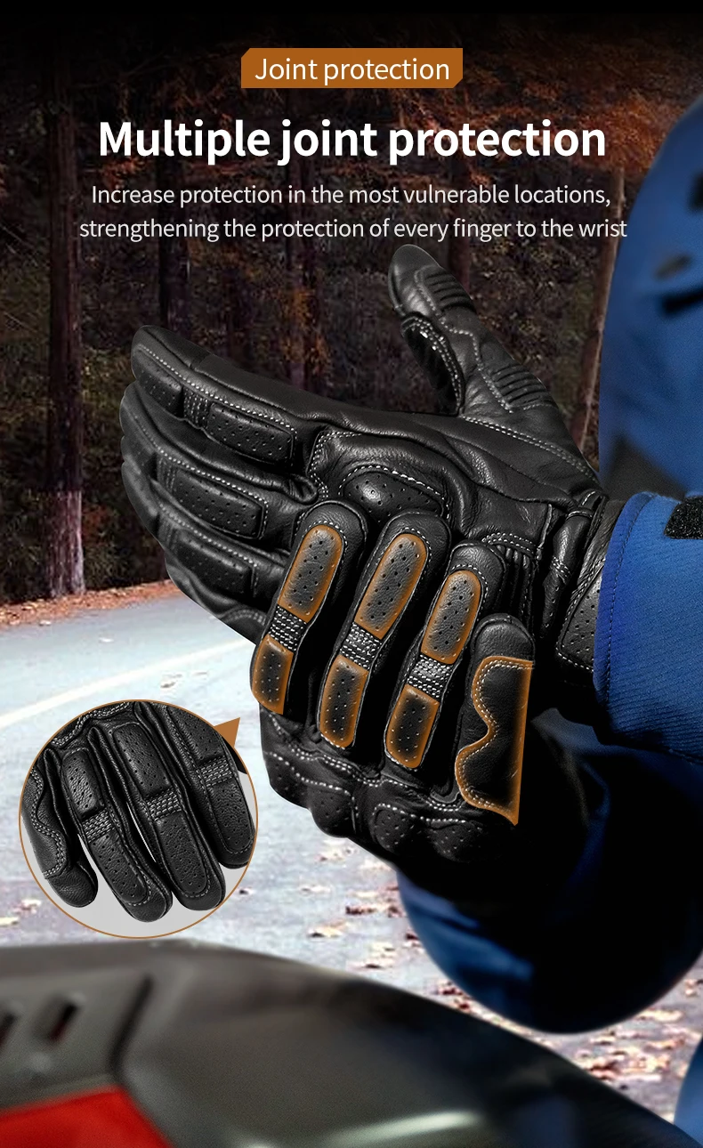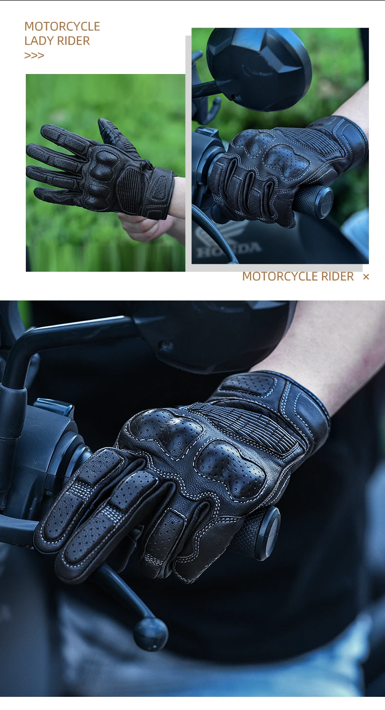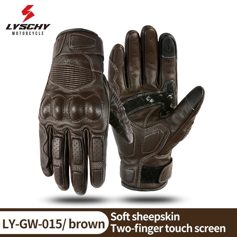 LYSCHY Motorcycle Leather Gloves Soft Goat Skin Full Finger Gloves Drop-proof Touch Screen Breathable Off-Road Gloves