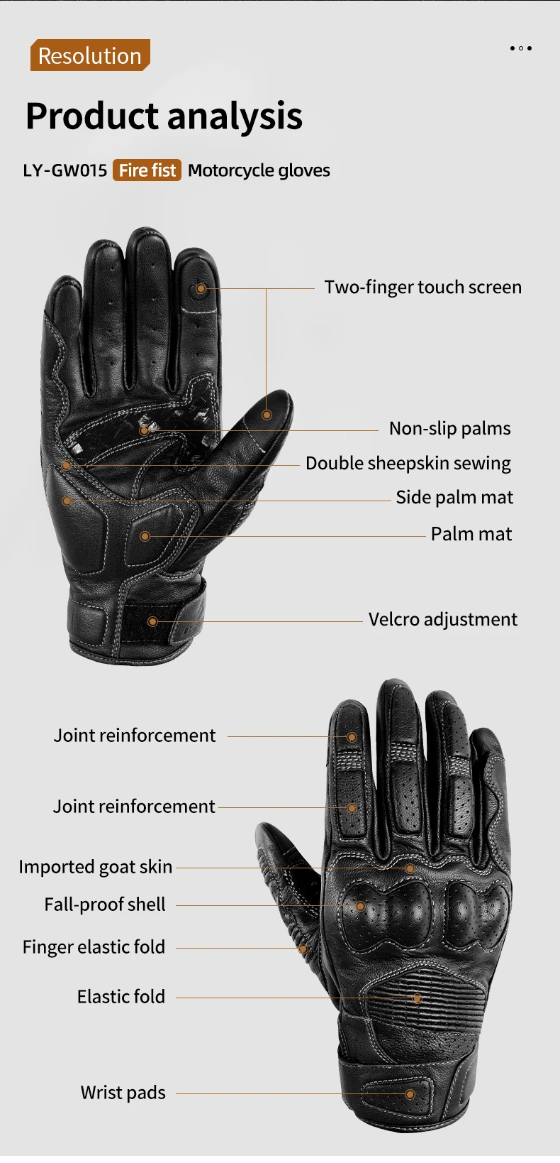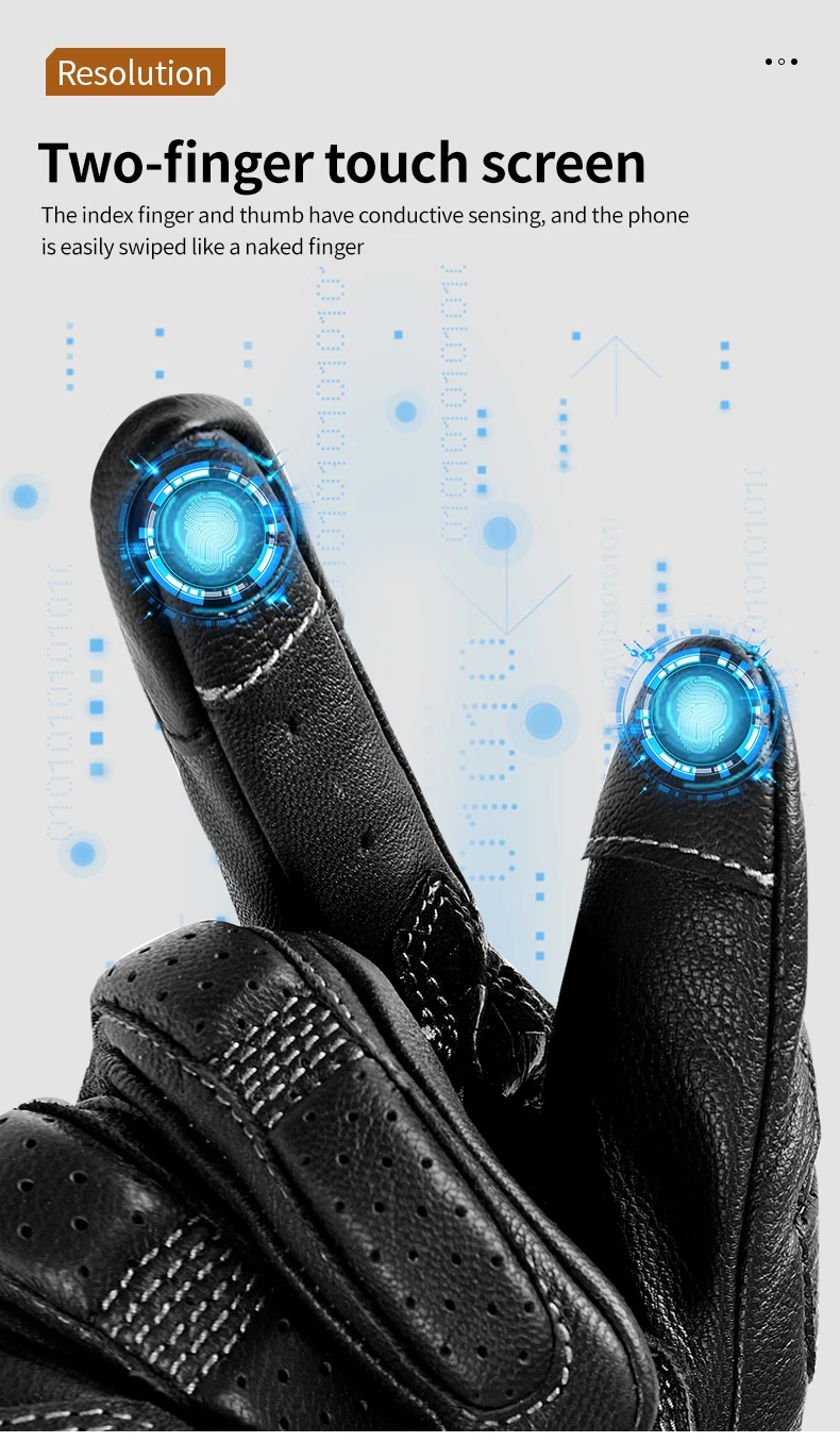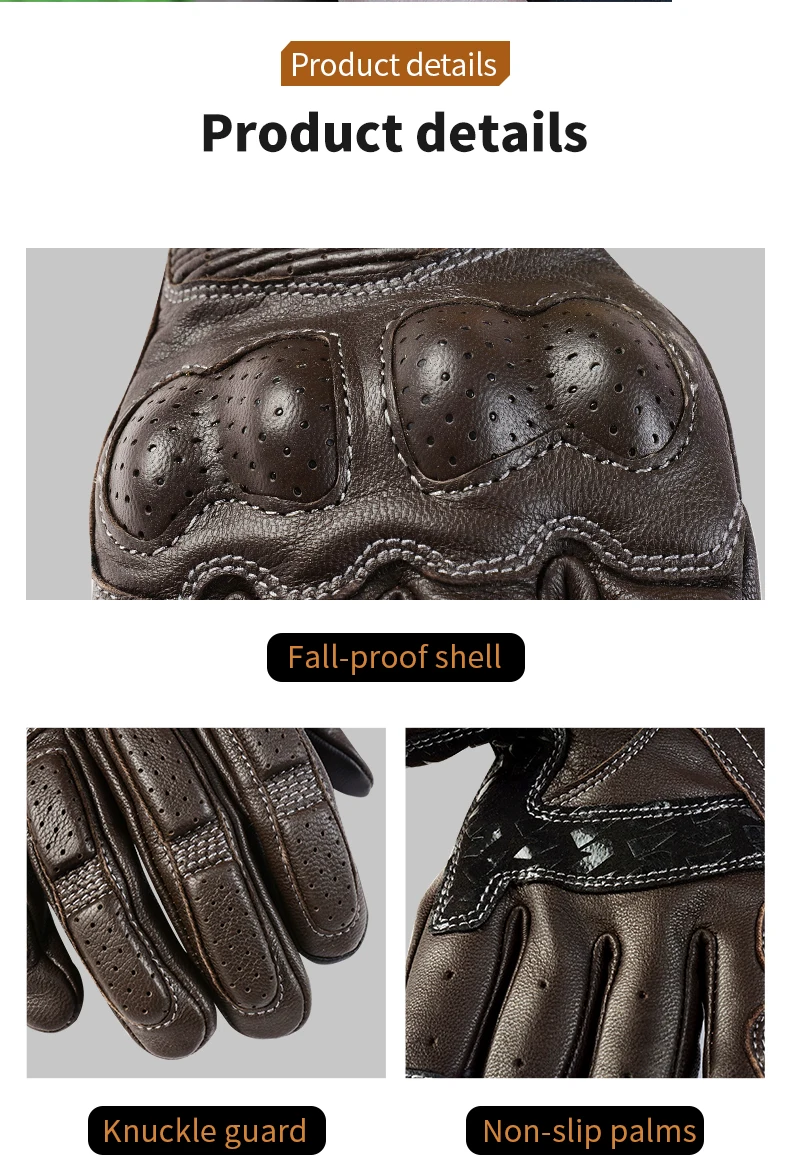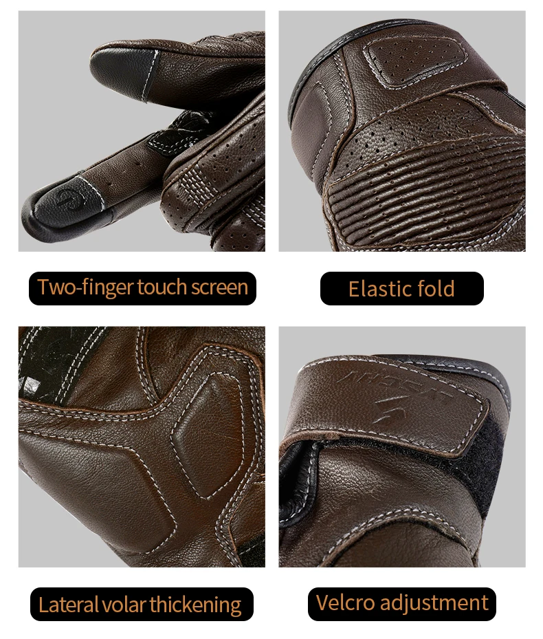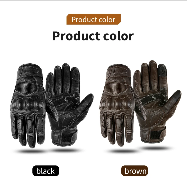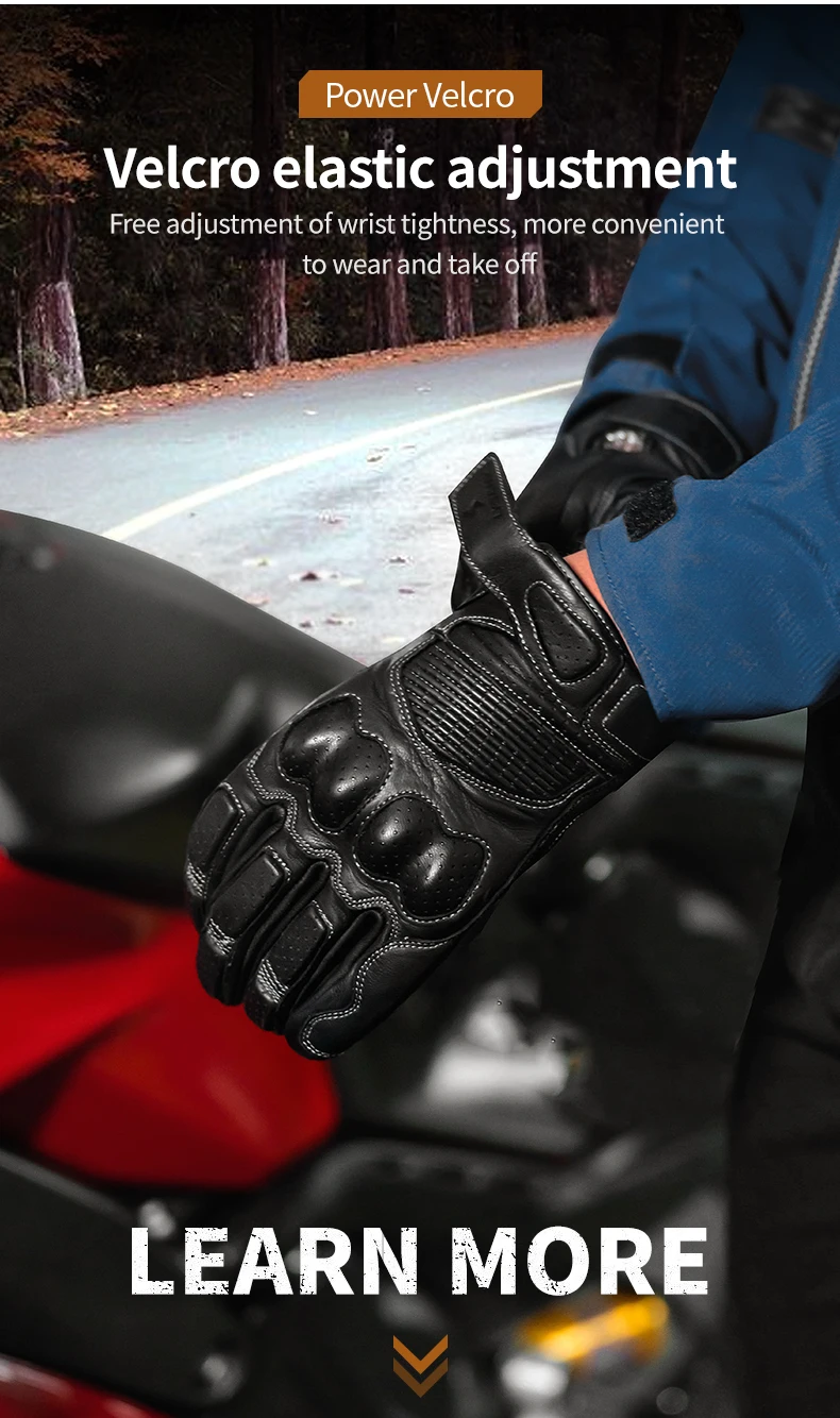 LYSCHY Motorcycle Leather Gloves Soft Goat Skin Full Finger Gloves Drop-proof Touch Screen Breathable Off-Road Gloves
