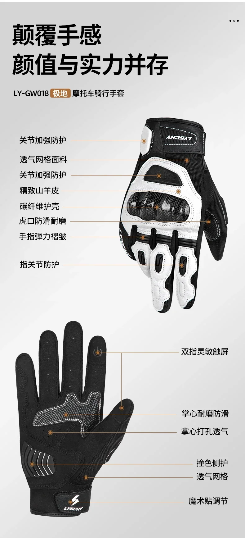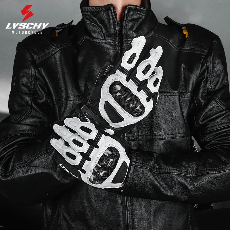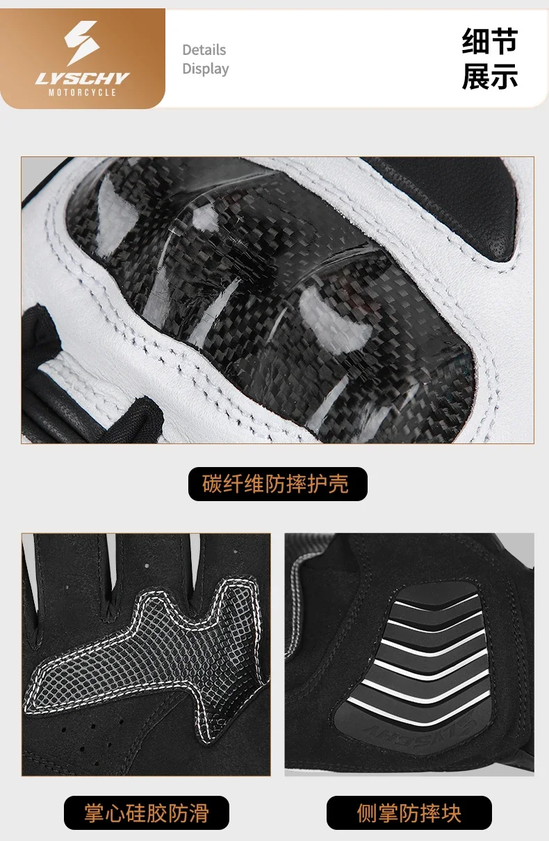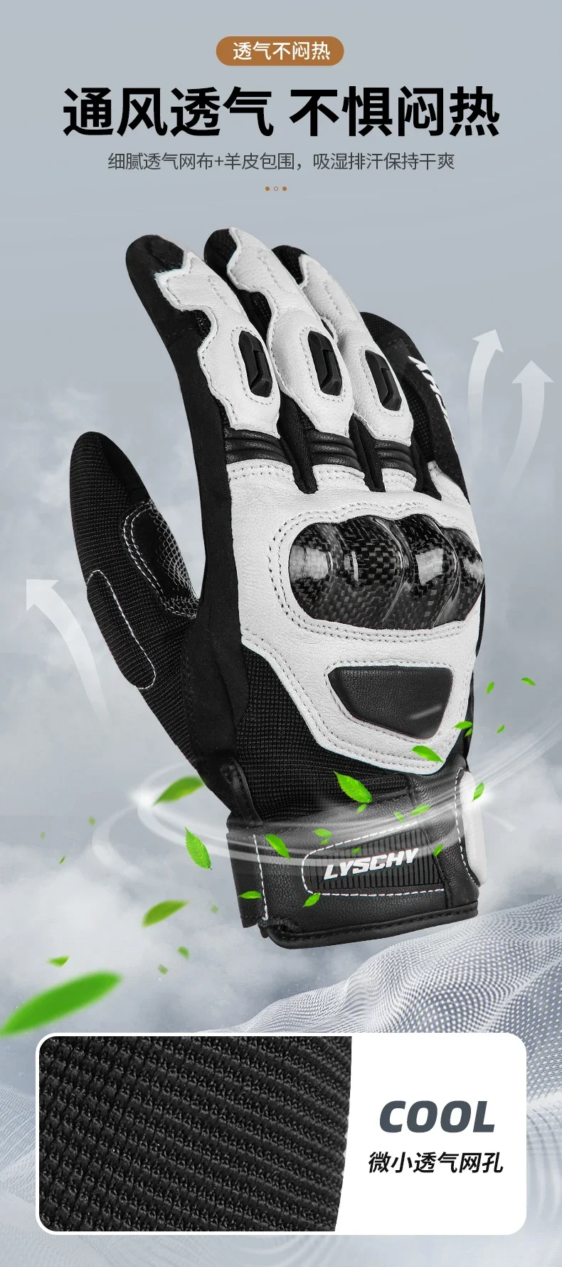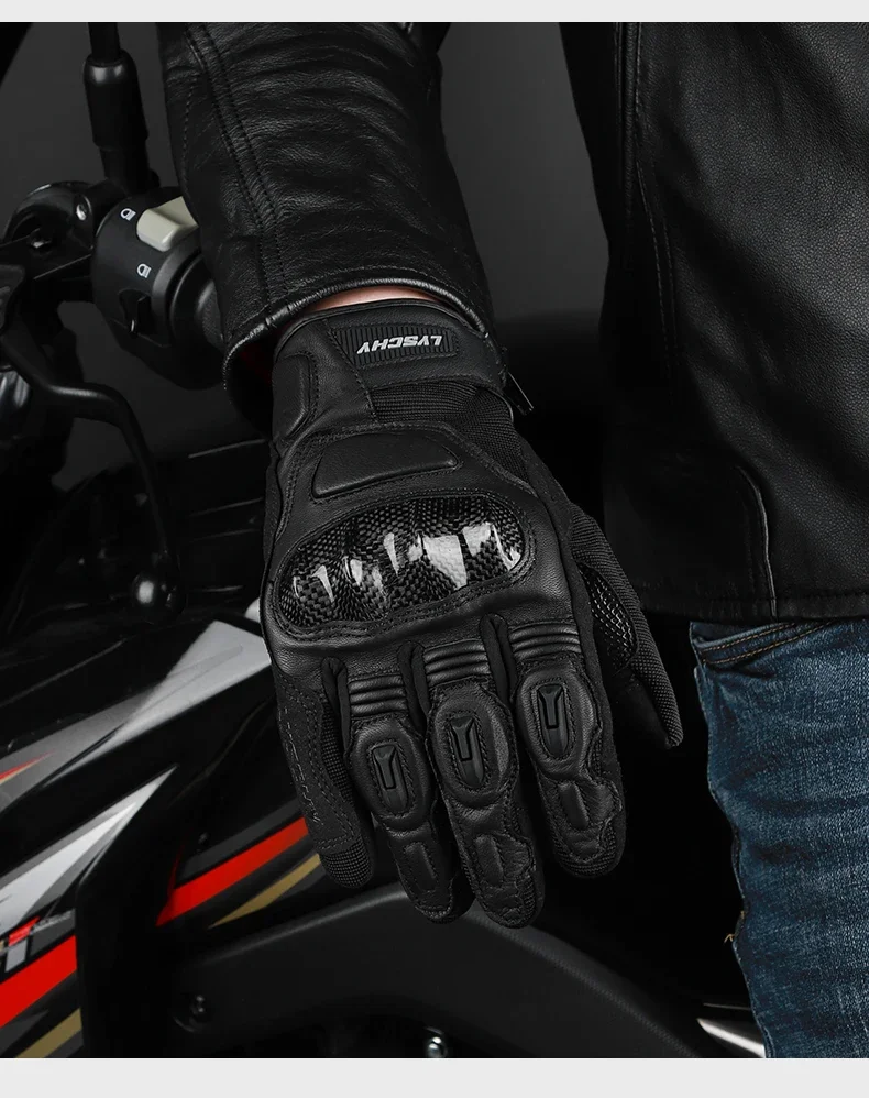 LYSCHYLY-GW018Summer Cycling Gloves Motorcycle Carbon Fiber Anti Drop Leather Breathable Men's Motorcycle Gloves fashion wear motocross gloves luva moto