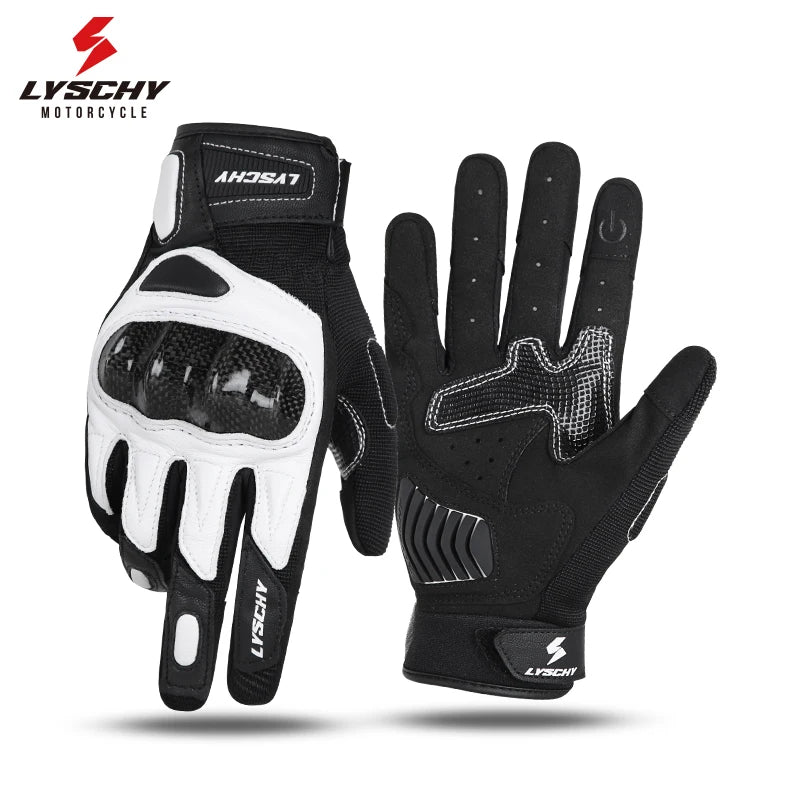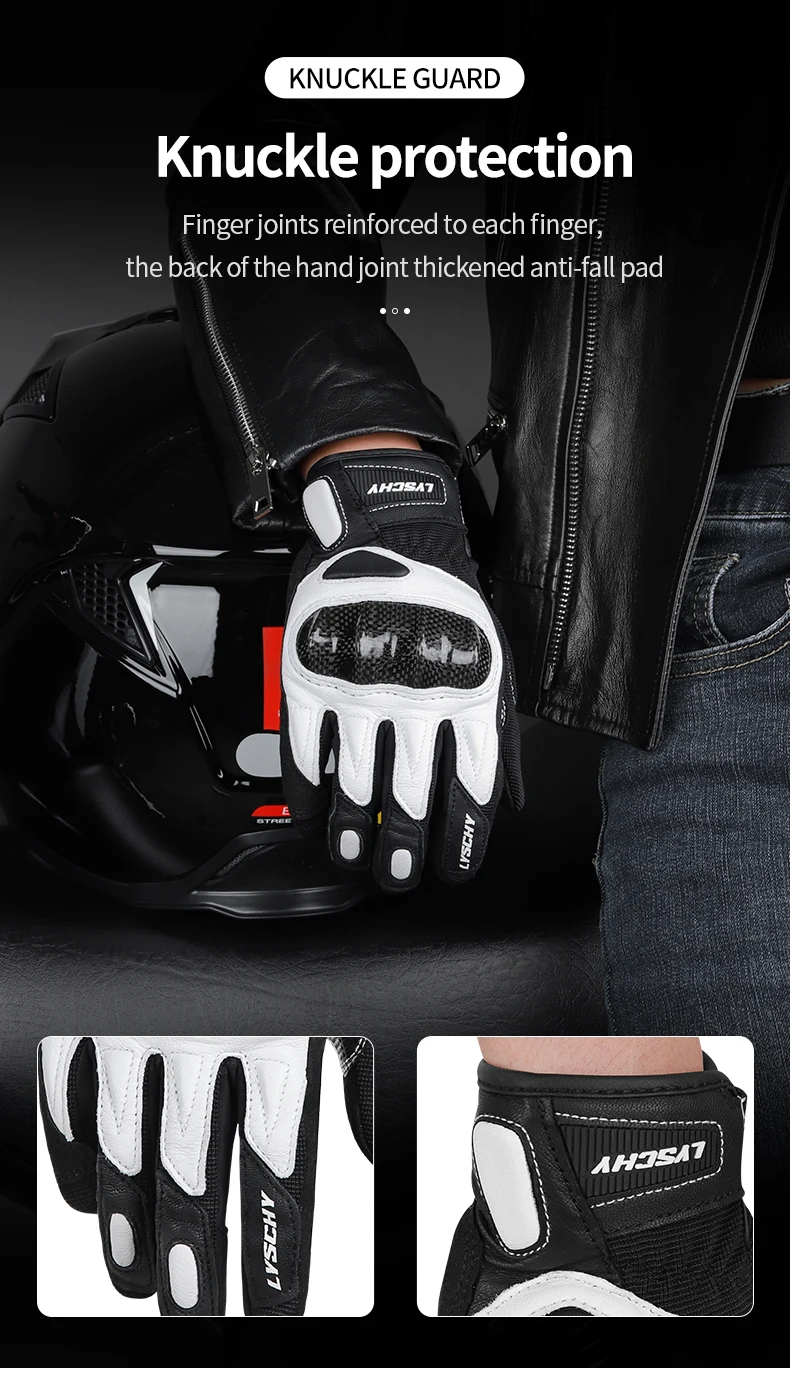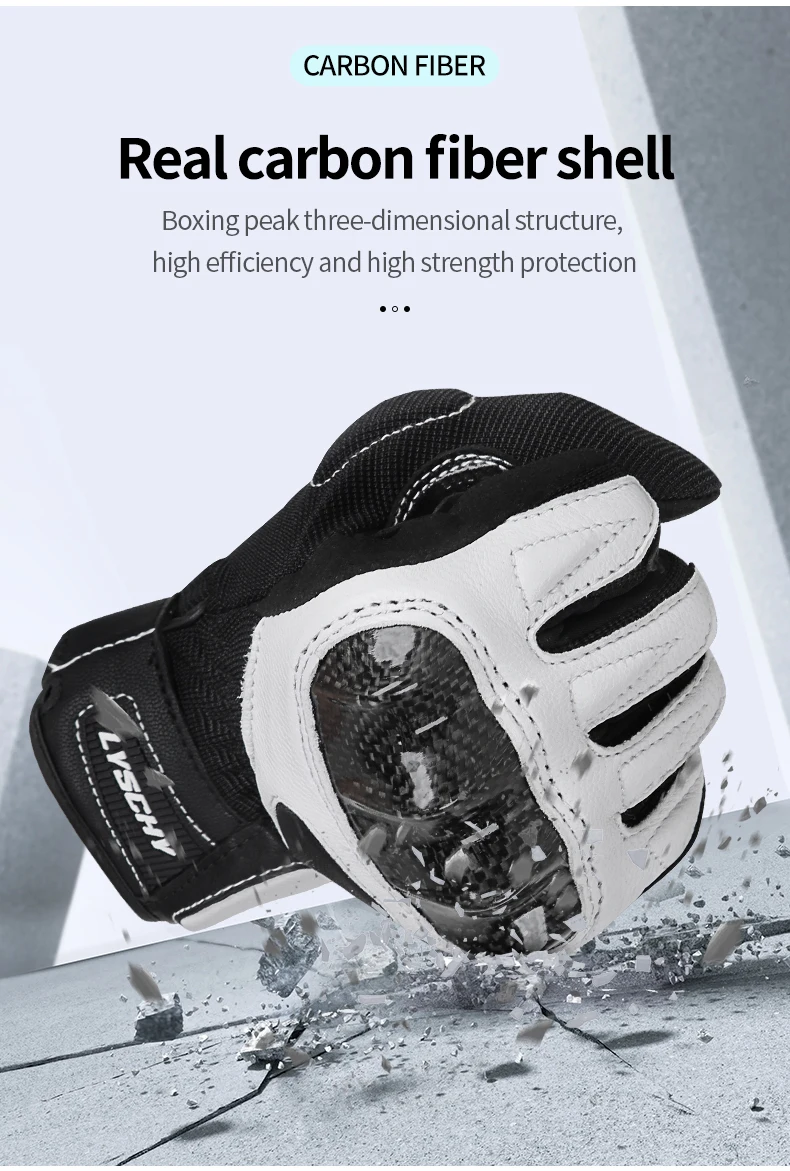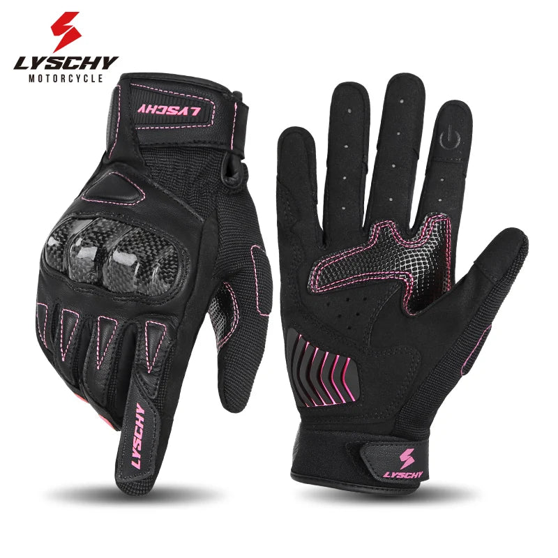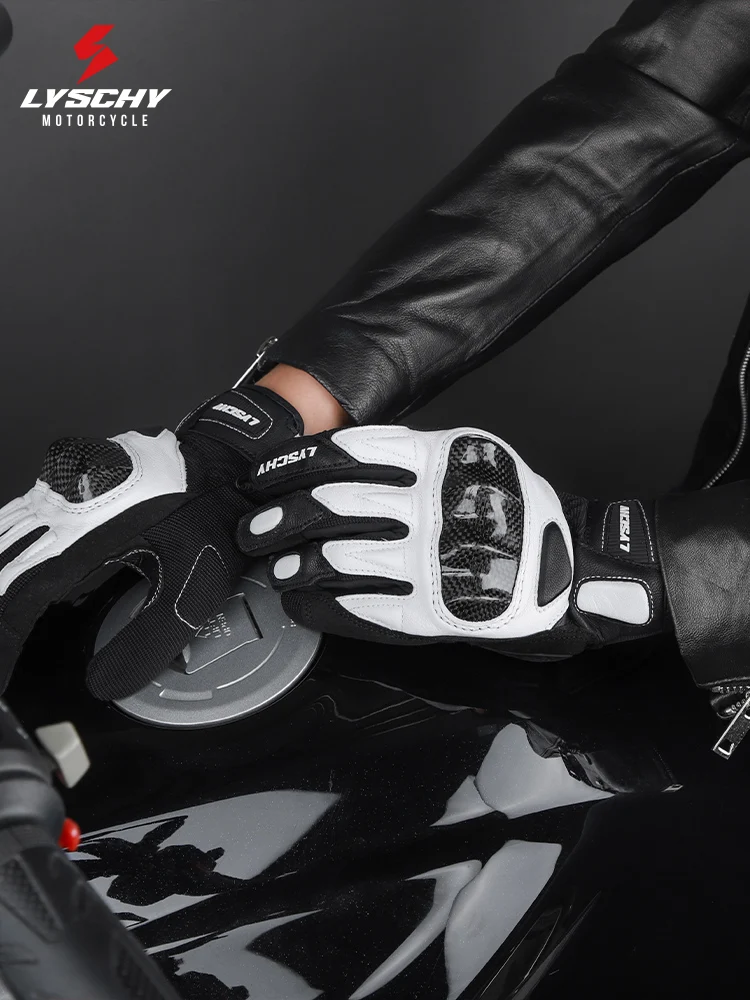 LYSCHY Summer Girls Motorcycle Leather Gloves Soft Goat Leather Carbon Fiber Shell Protector Riding Gloves Touch Screen Gloves LY-GW019
