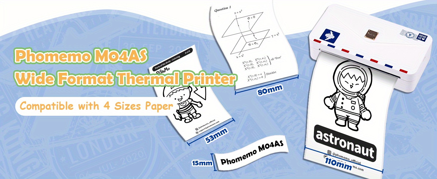 M04AS 4" Sticker Printer, Wireless Mobile Inkless BT Label Maker Support 15/53/80/110mm Size Printing, 300dpi HD Printer, Suitable For Photos, Labels, Memo, Education, Christmas Gift, Mother's Choice