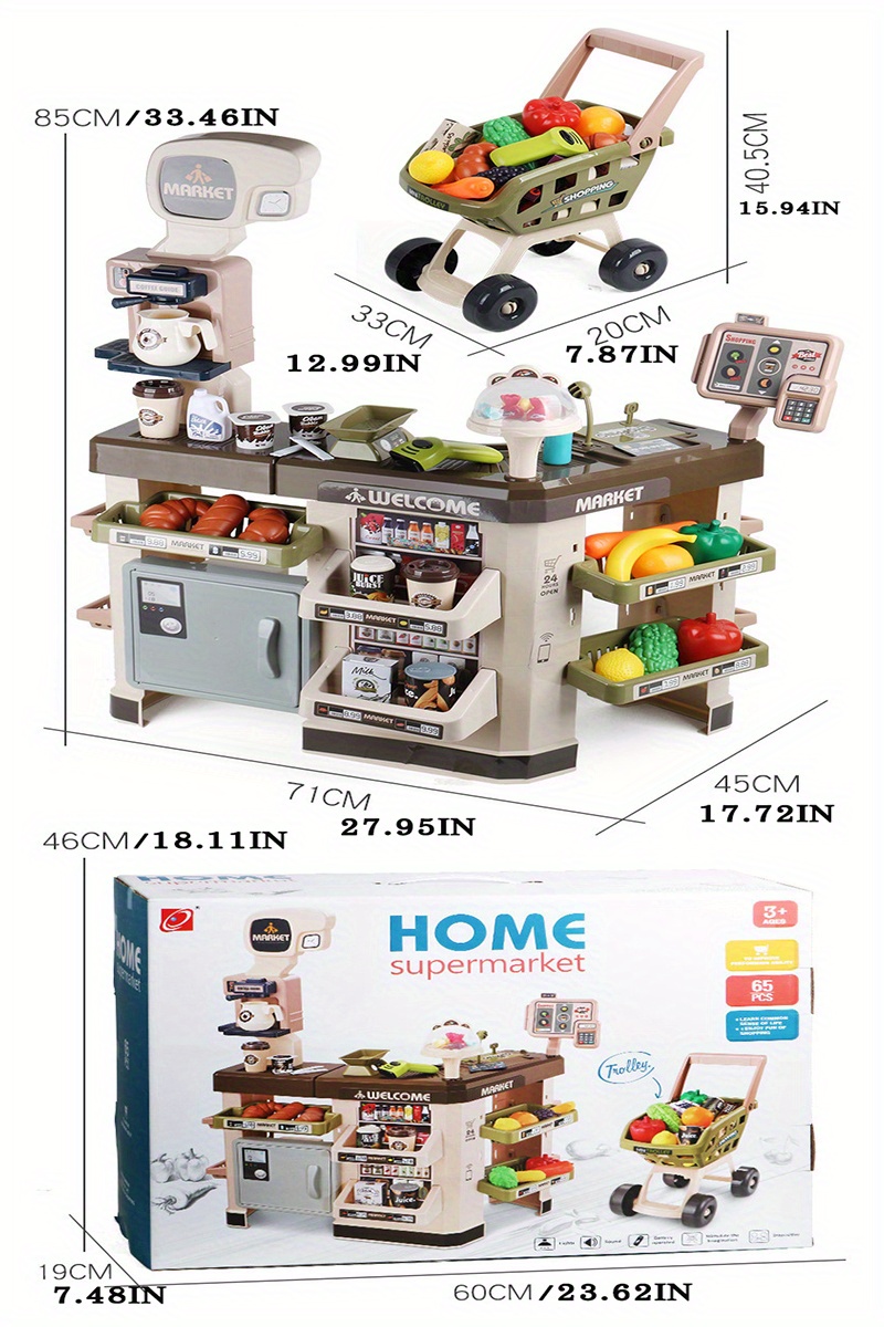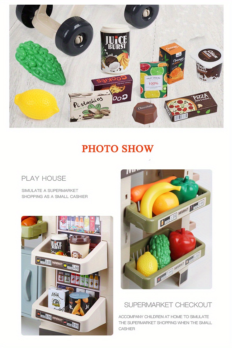 March 2023 Kids' Supermarket Shopping Adventure Set - Play House Toy Spray Refrigerator, Simulation Cashier, Swipe Machine & More!