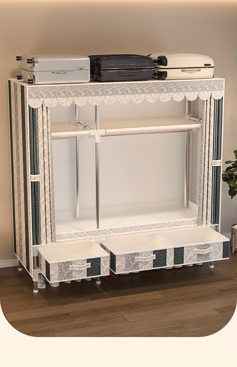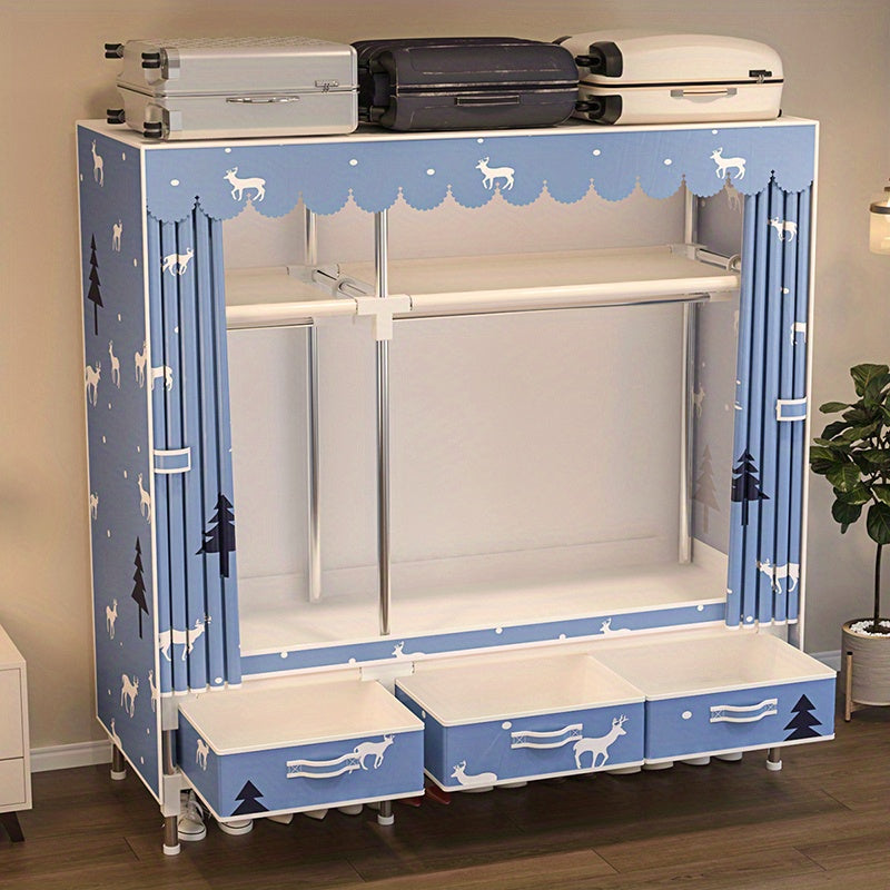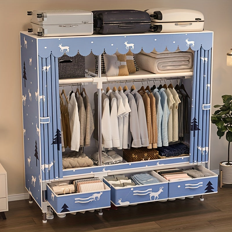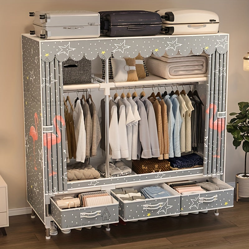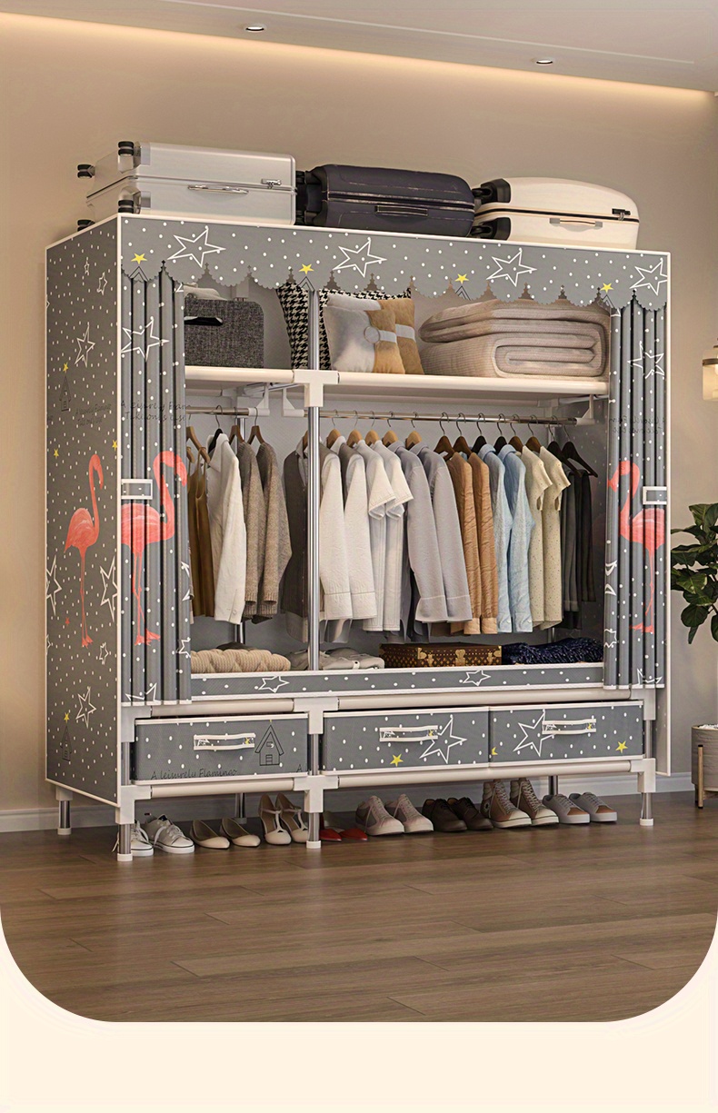 Maximize Your Bedroom Storage with This Simple Assembled Steel Frame Cloth Wardrobe!