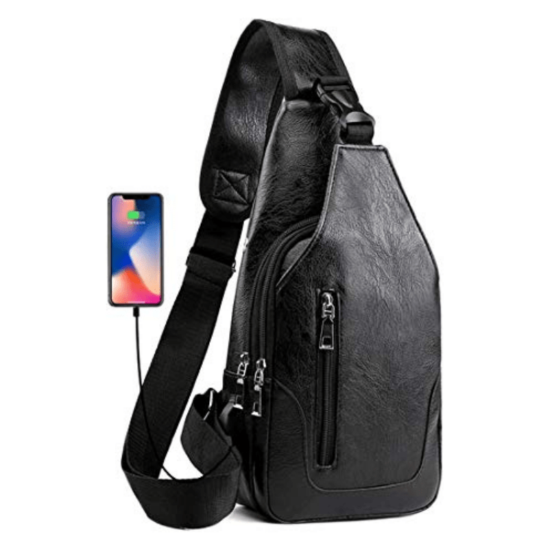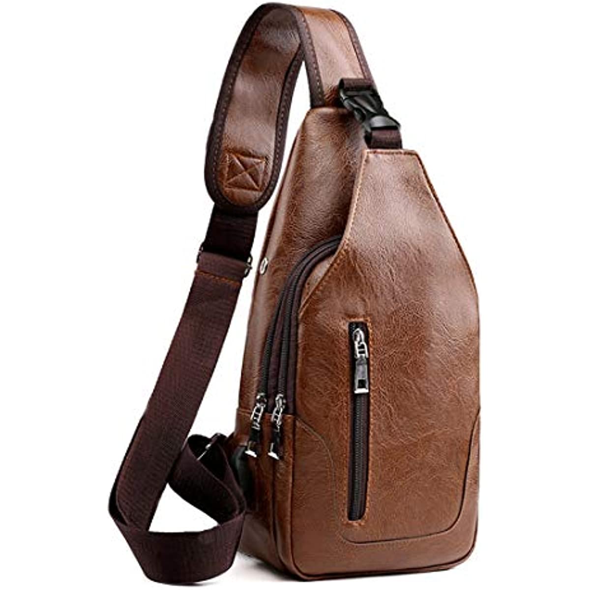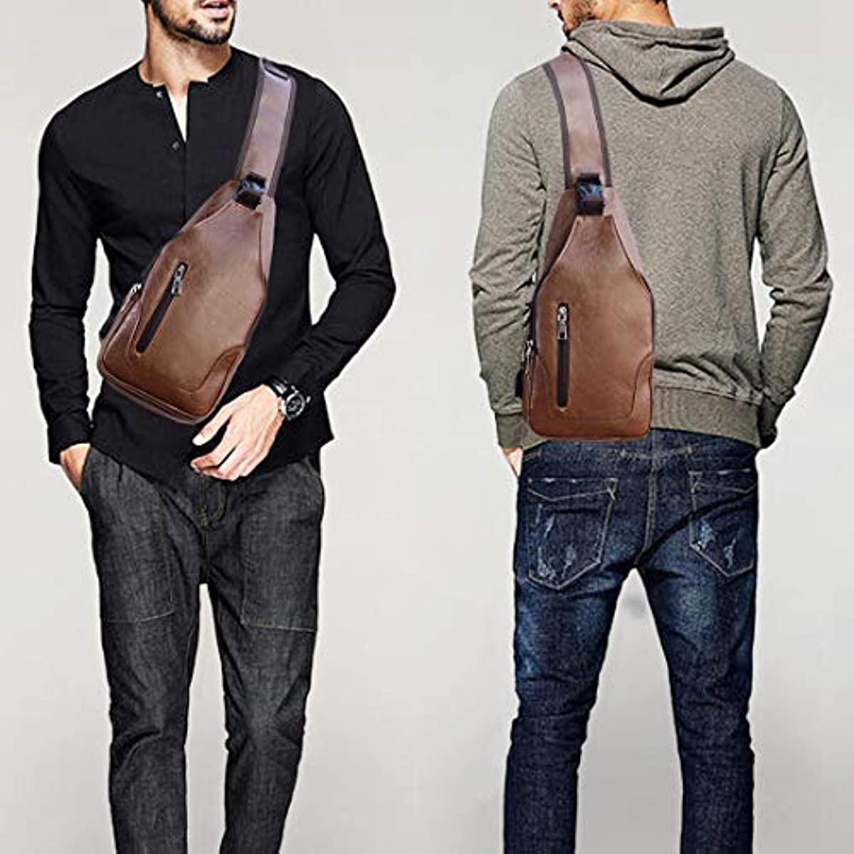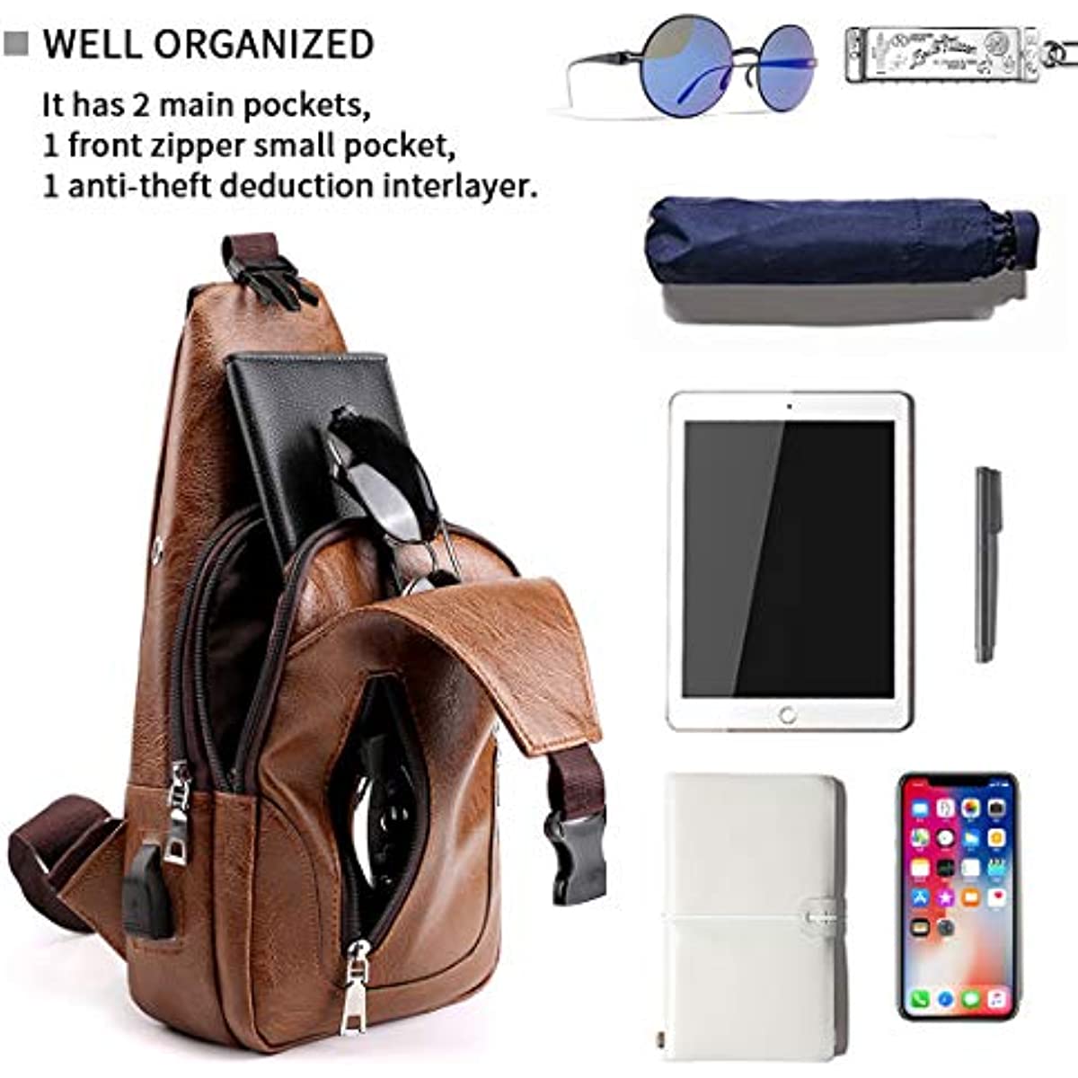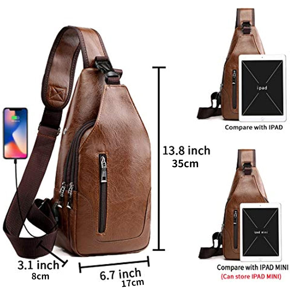 Men Sling Bag Anti Theft Shoulder Bag Small Leather Crossbody Sling Backpack With USB Charge Port