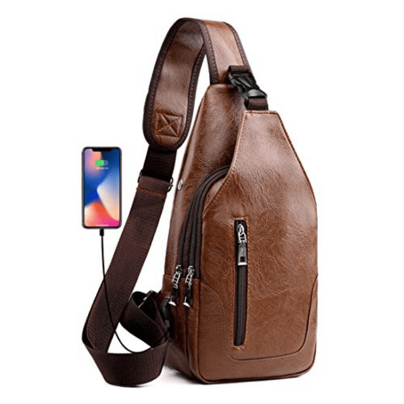 USB CHARGING PORT & HEADPHONE HOLE: This sling bag with external USB charging port (power bank not included), built-in charge cable and convenient to charge your phone. The side hole is for earphone wire, you can enjoy music anytime anywhere.