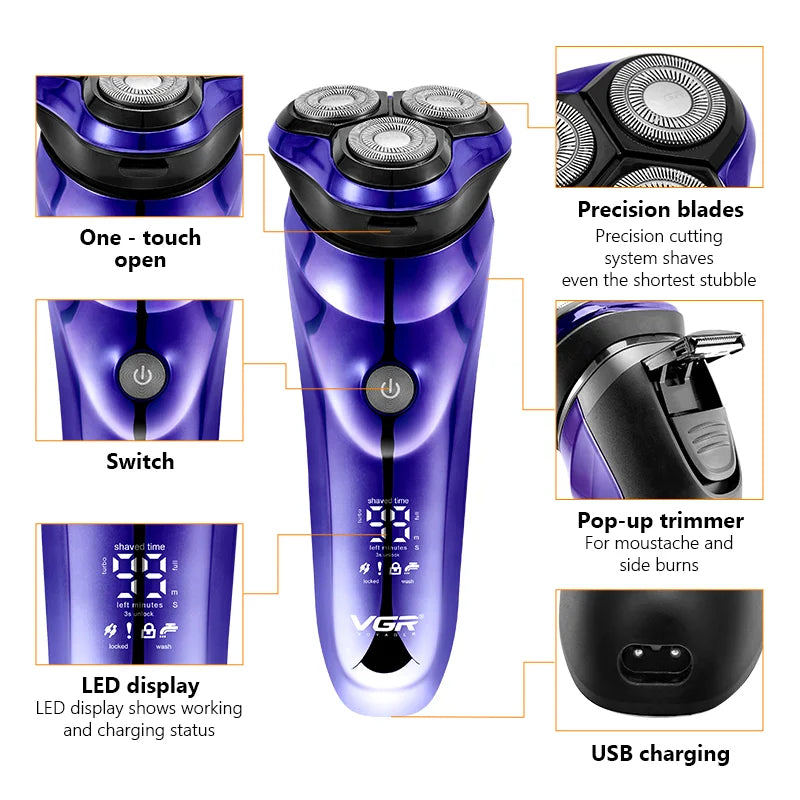 1.using 5D-contour detect thechnology and Floating double track blade net,Floating contour follow ,Give you a comfortable shaving experience.