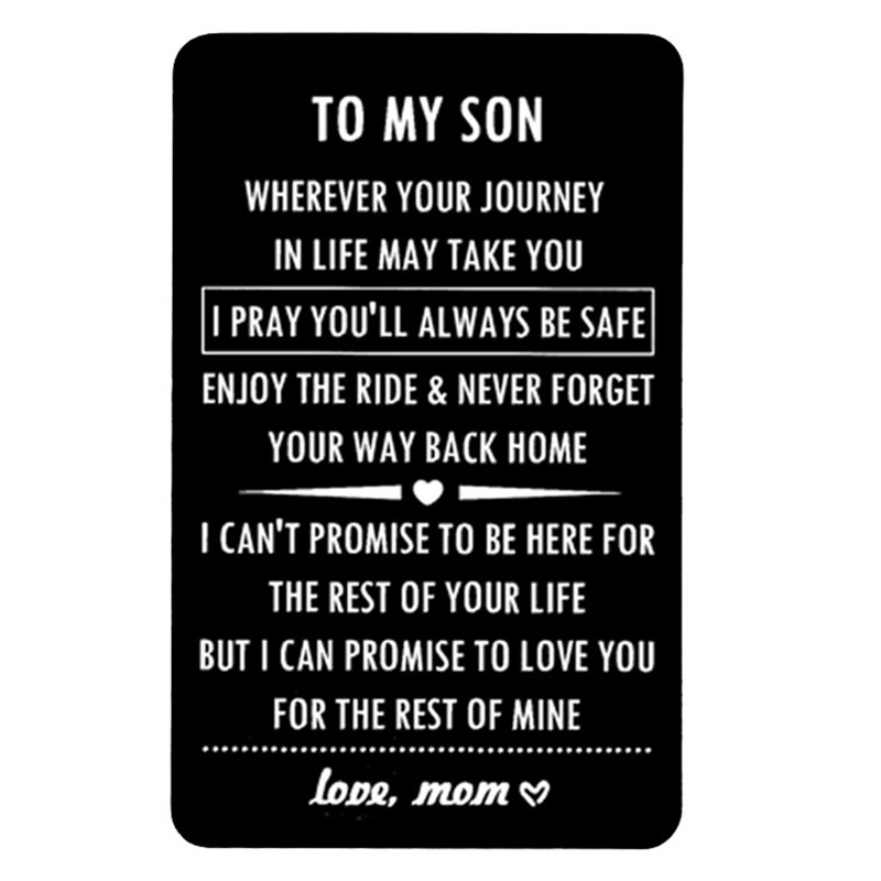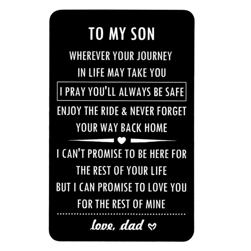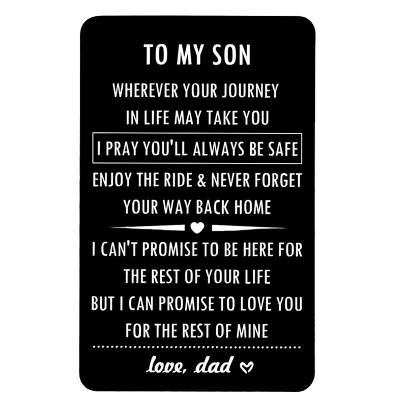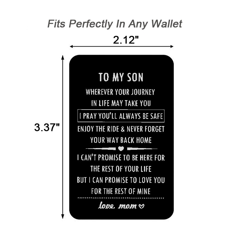 Approximately credit card size 3.37x2.12x0.02, Fits Perfectly In Any Wallet. An Unique gifts as best son birthday card, greeting cardmaterial: metalPacking: 1x wallet card