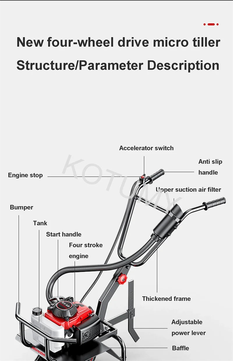 Micro Tiller Small Gasoline Agricultural Machinery Household 9KW High-Power Tiller For Plowing Weeding Ditching And Rotary Tille
