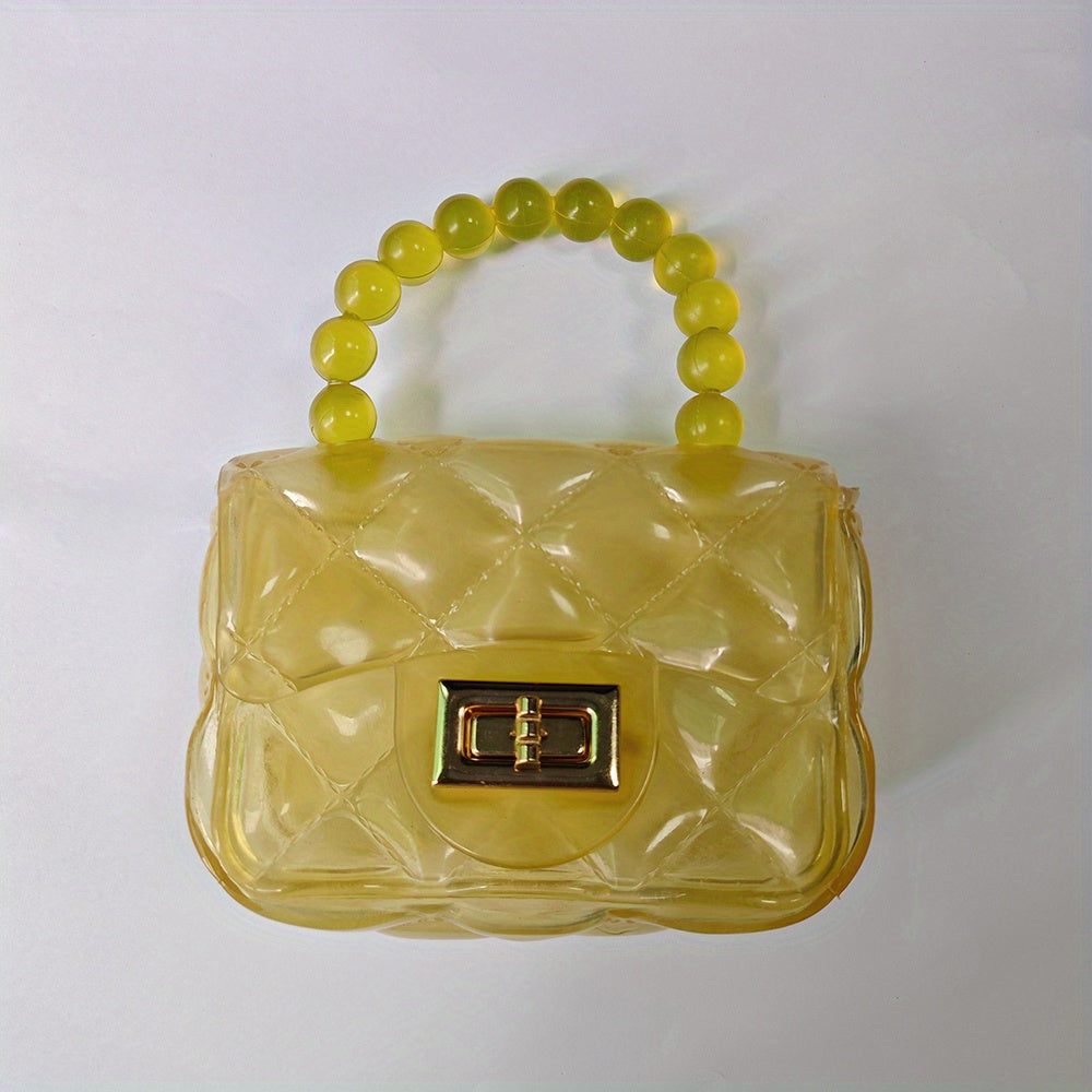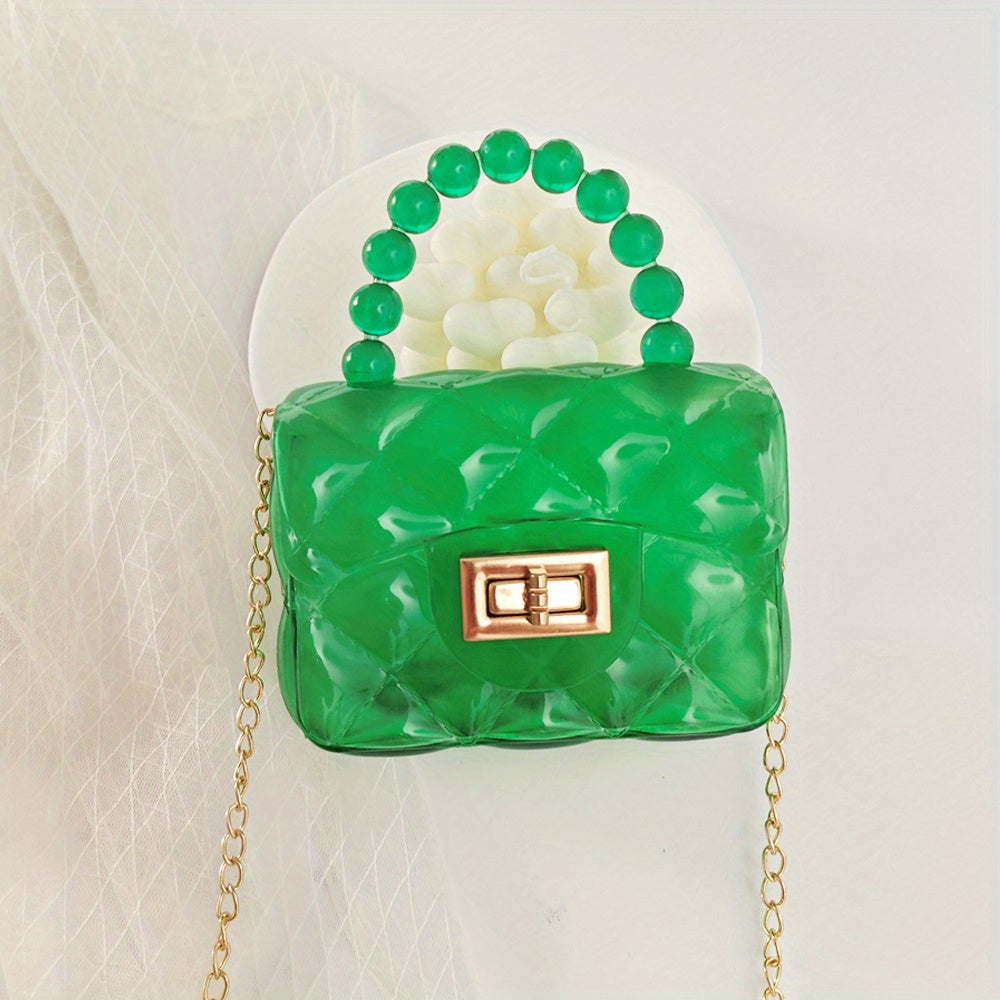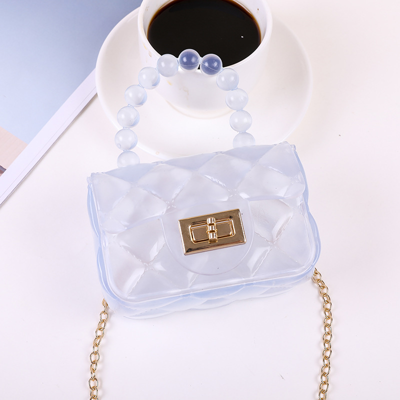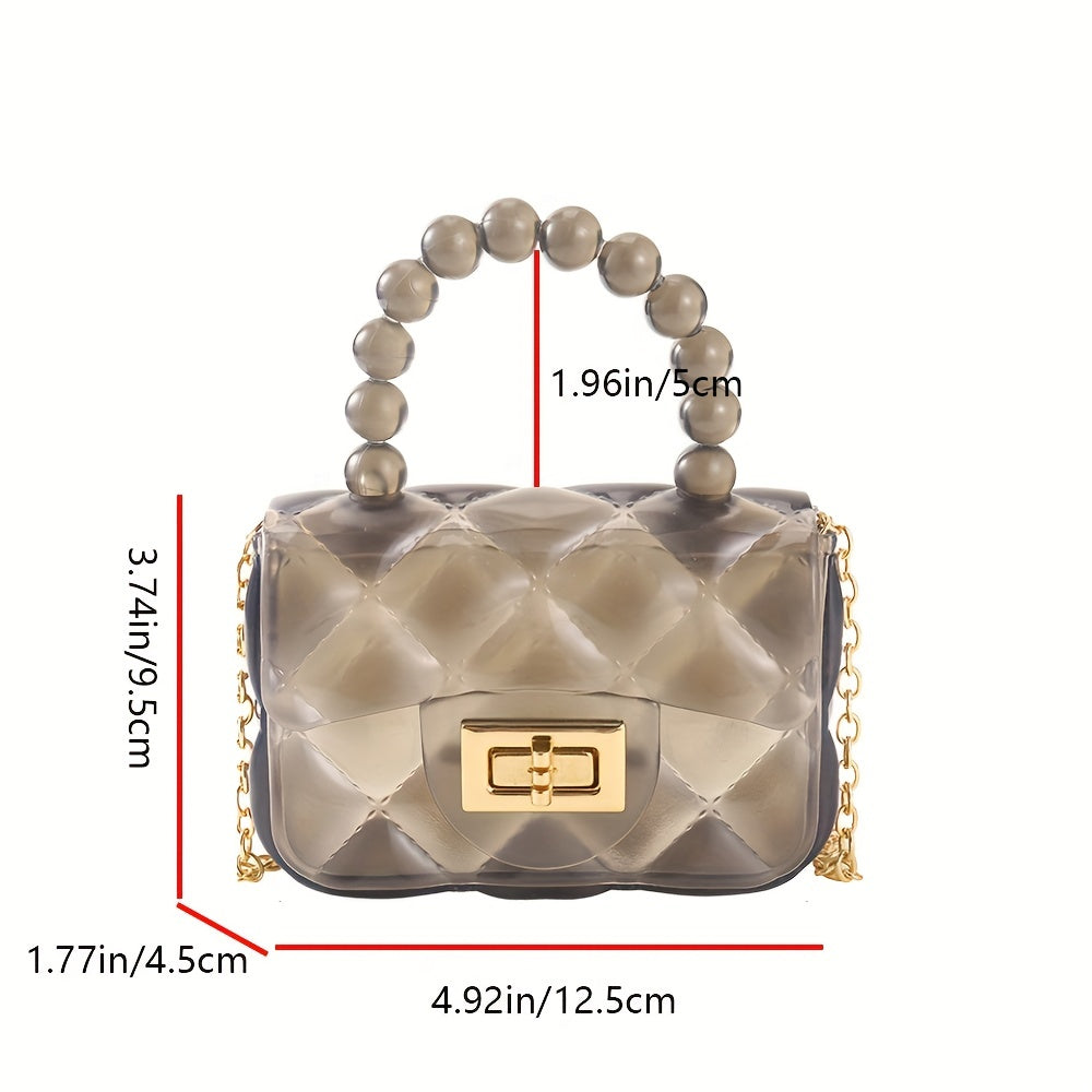 Mini Clear Hand Square Bag, Cute Argyle Embossed Shoulder Bag, Buckle Decor Chain Crossbody Coin Purse