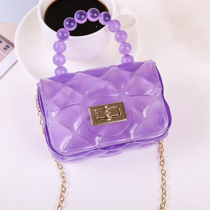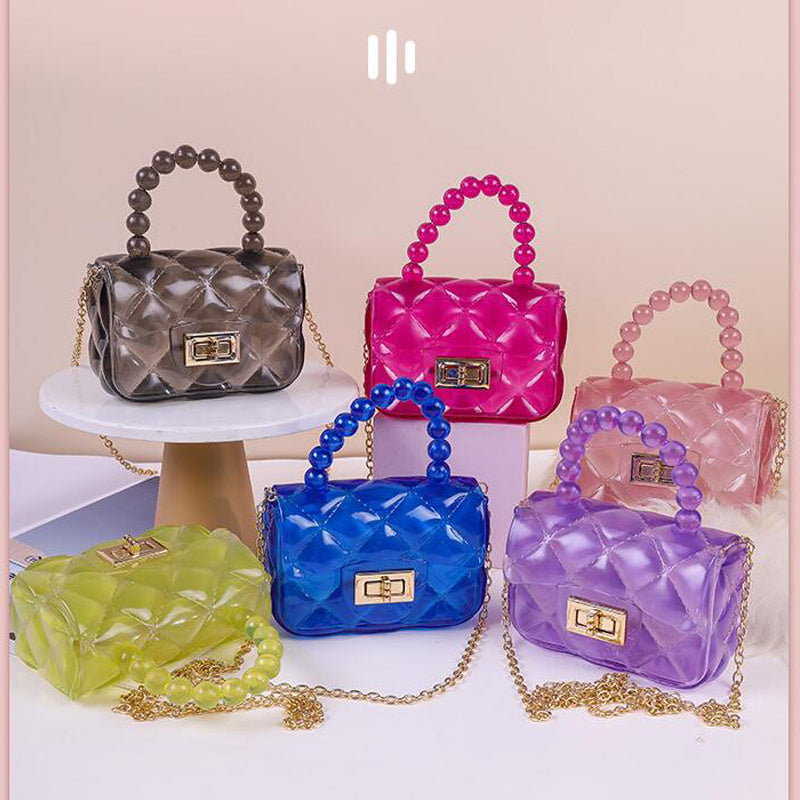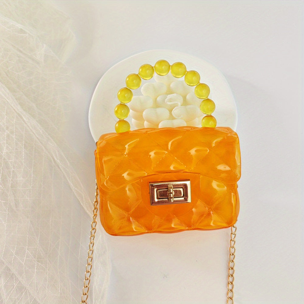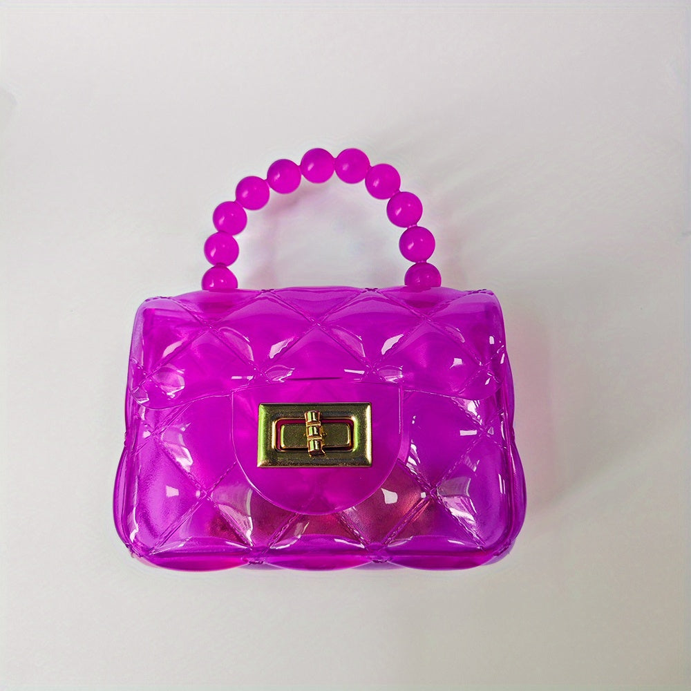 Mini Clear Hand Square Bag, Cute Argyle Embossed Shoulder Bag, Buckle Decor Chain Crossbody Coin Purse