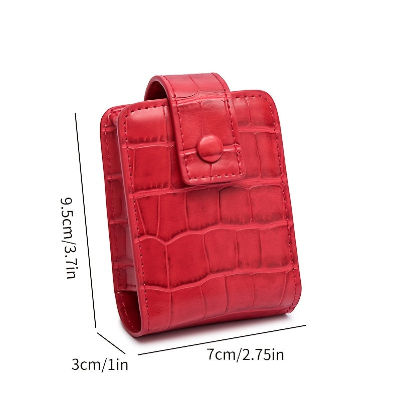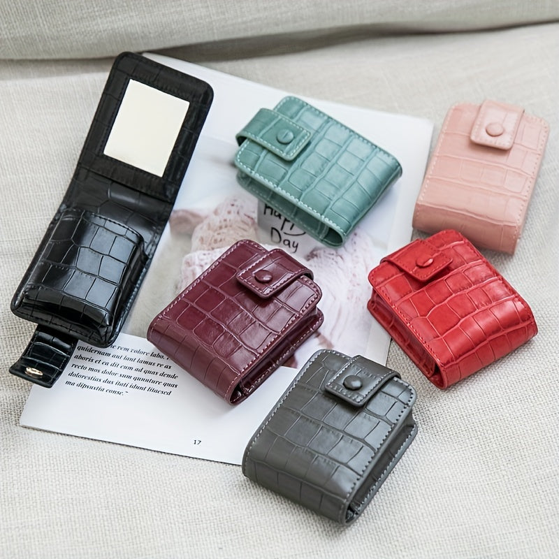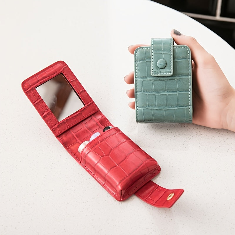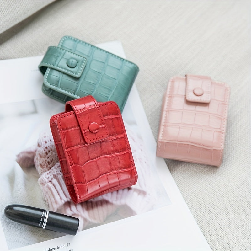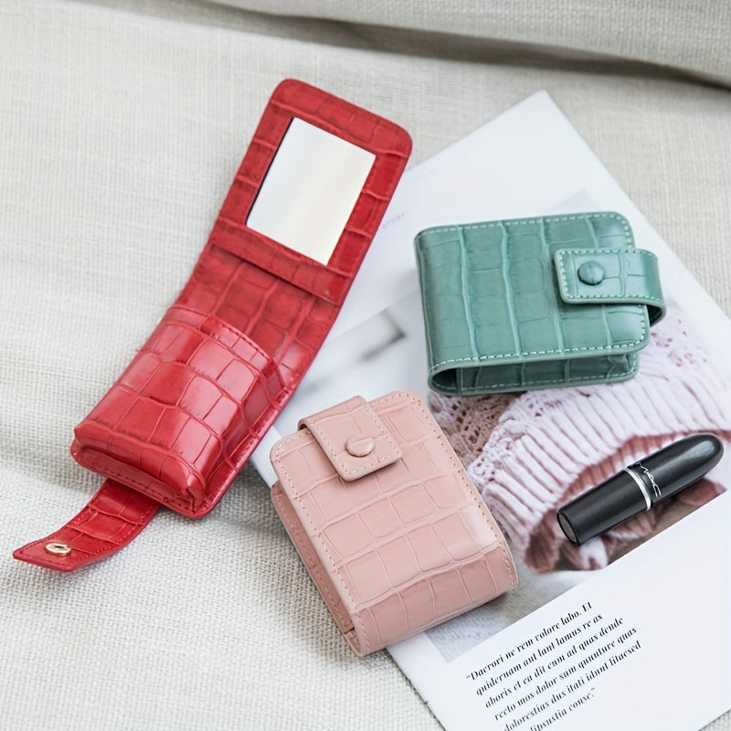 Mini Portable Lipstick Bag With Mirror,Minimalism Small Cosmetic Bag With Button, Crocodile Embossed Women's Makeup Storage Case