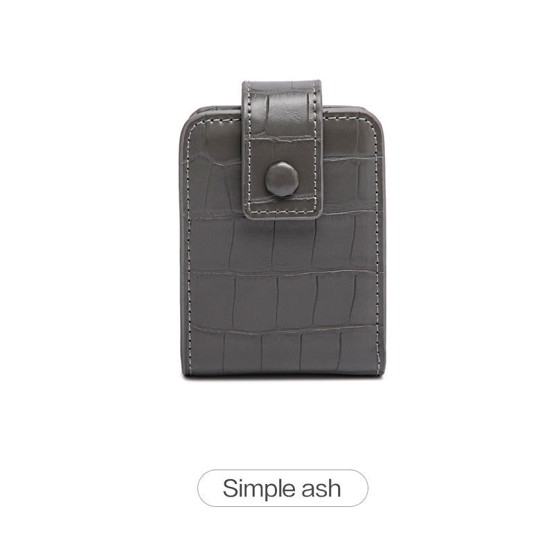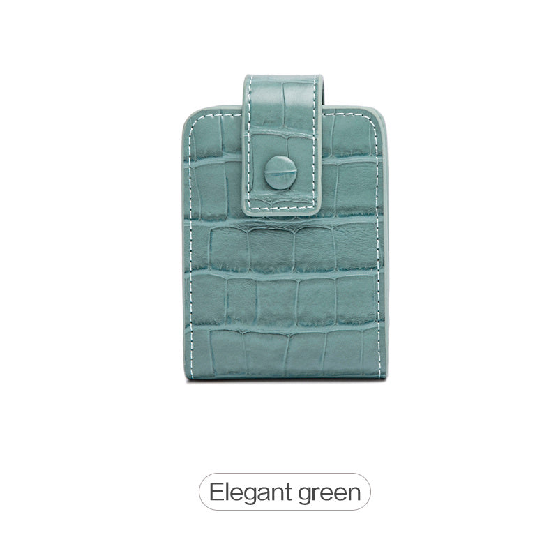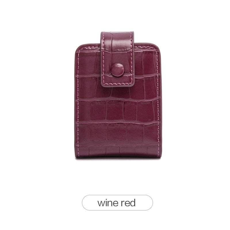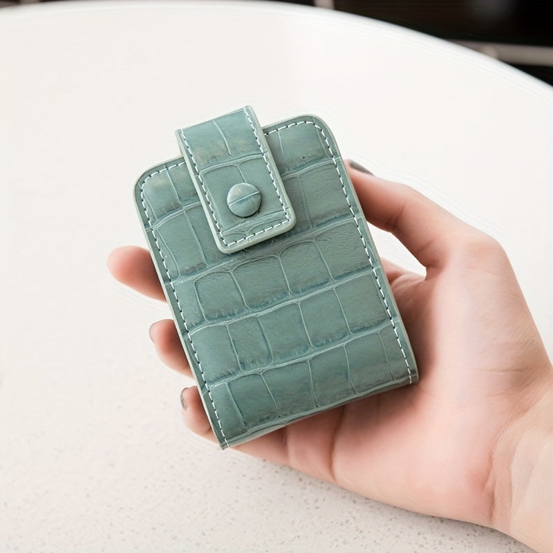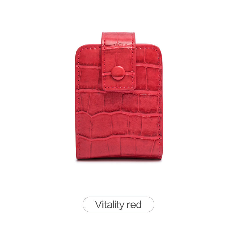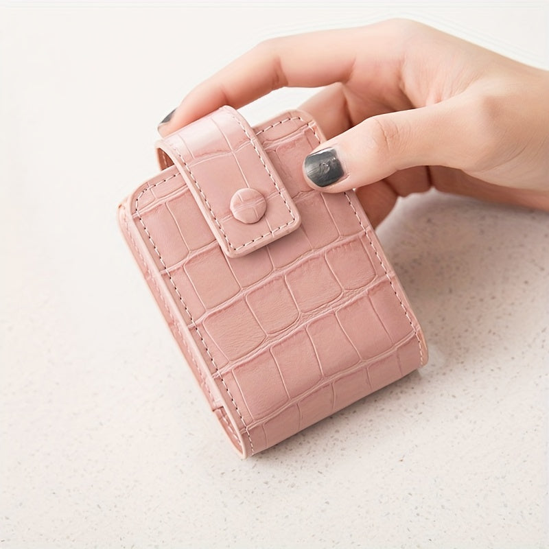 Mini Portable Lipstick Bag With Mirror,Minimalism Small Cosmetic Bag With Button, Crocodile Embossed Women's Makeup Storage Case