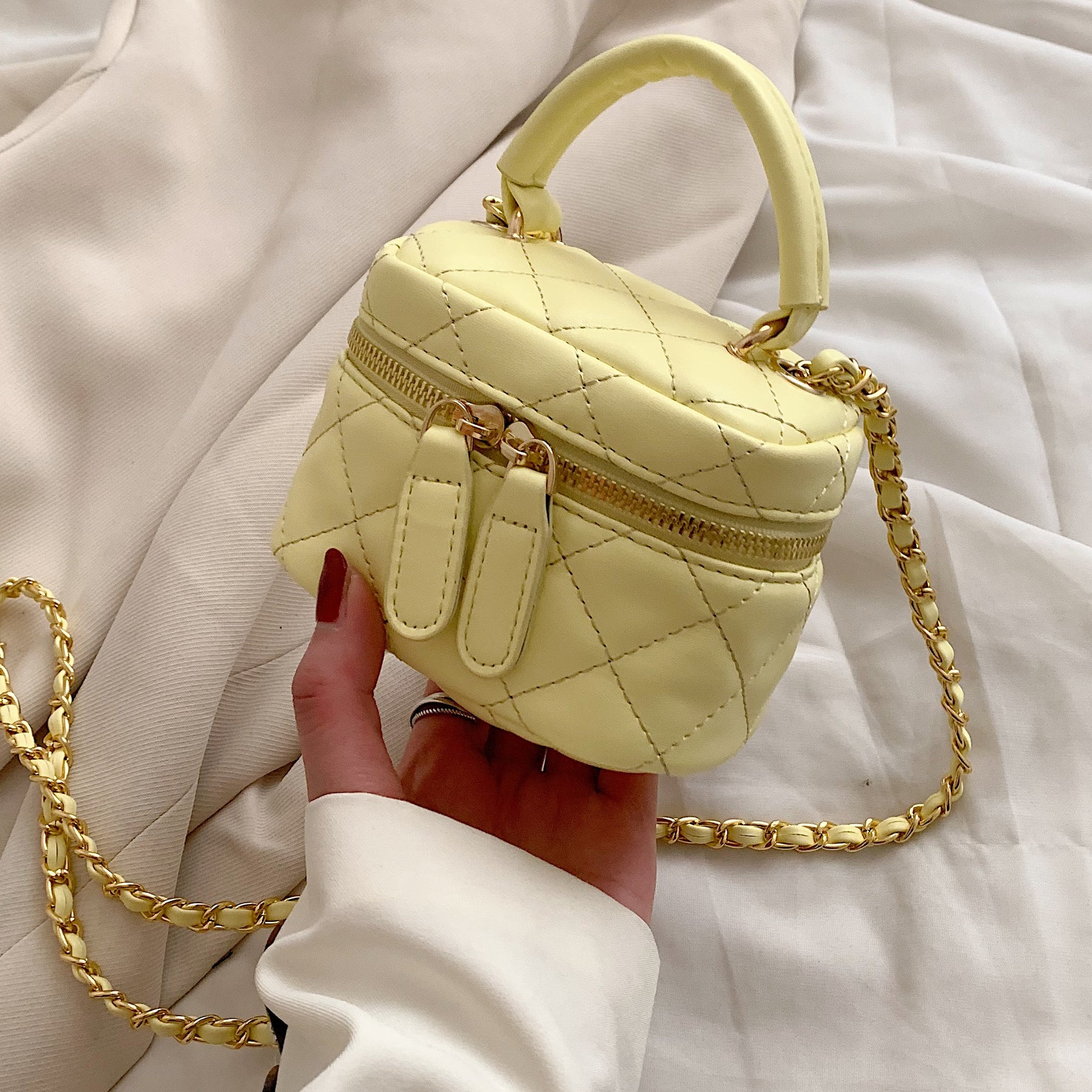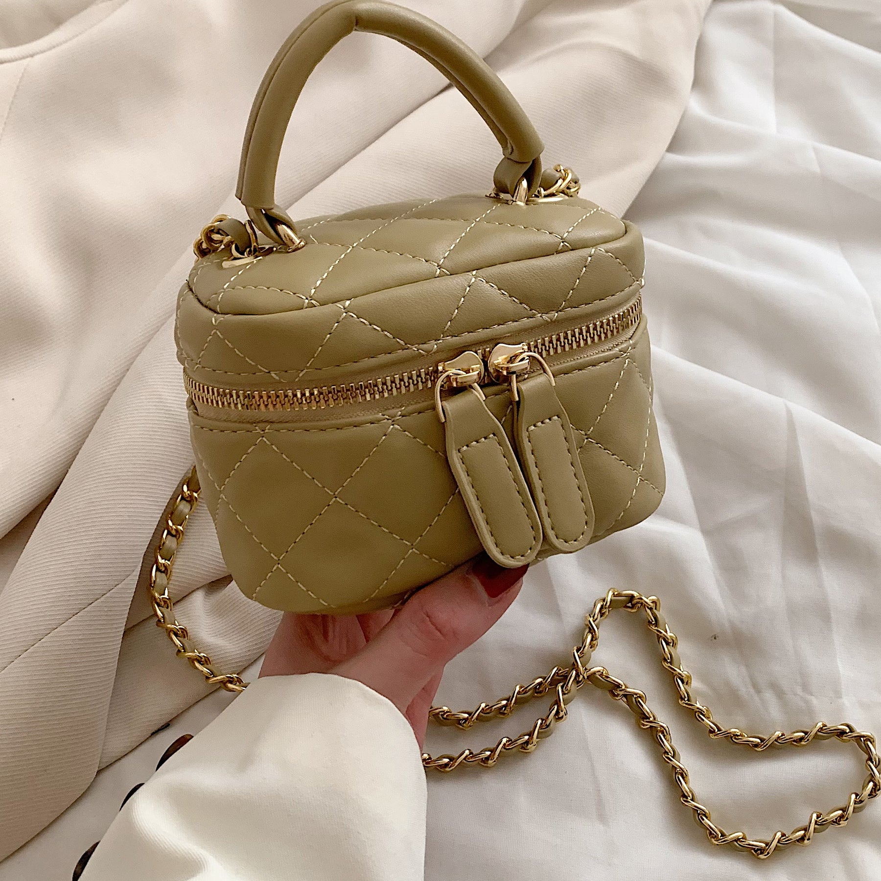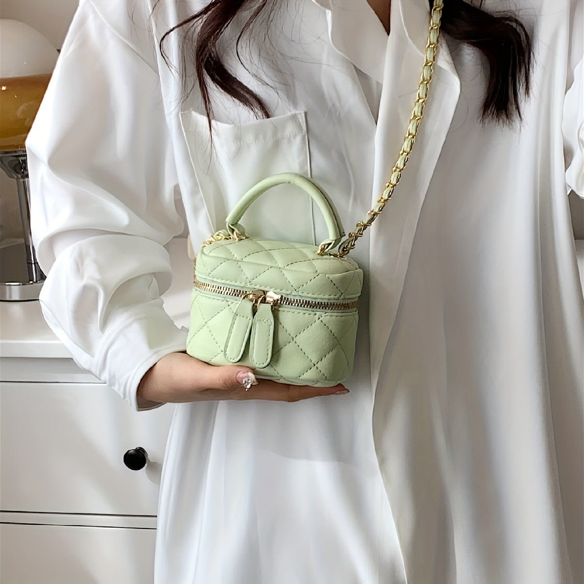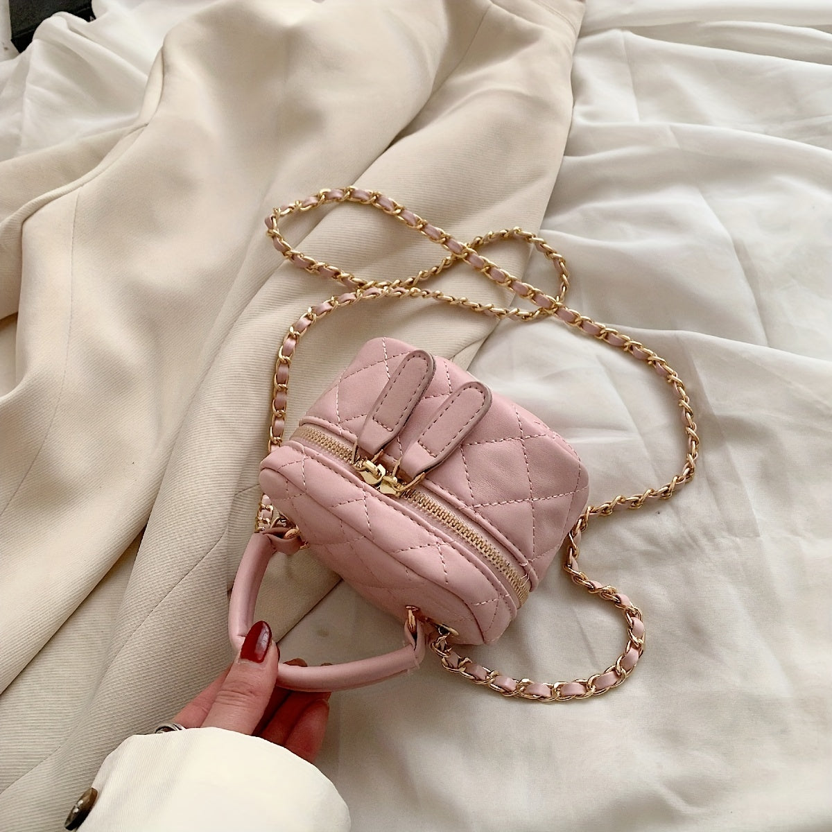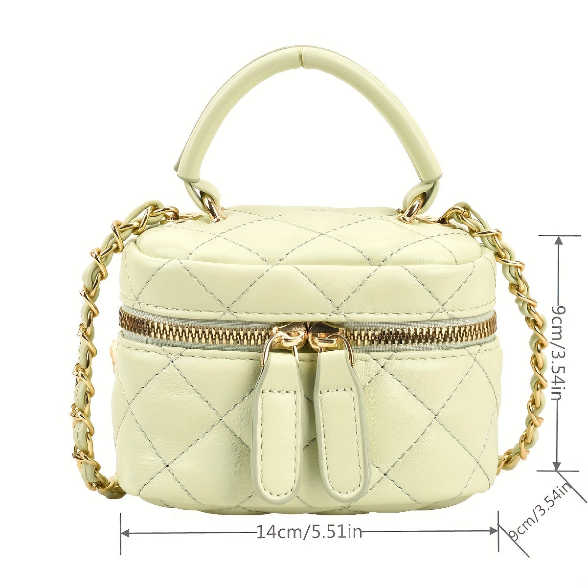 Mini Quilted Chain Crossbody Bag, Fashion PU Leather Bucket Bag, Women's Top Handle Purse (5.51*3.54*3.54) Inch