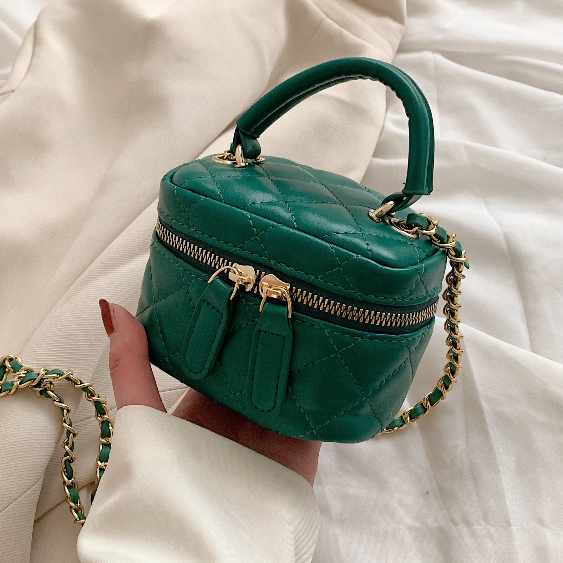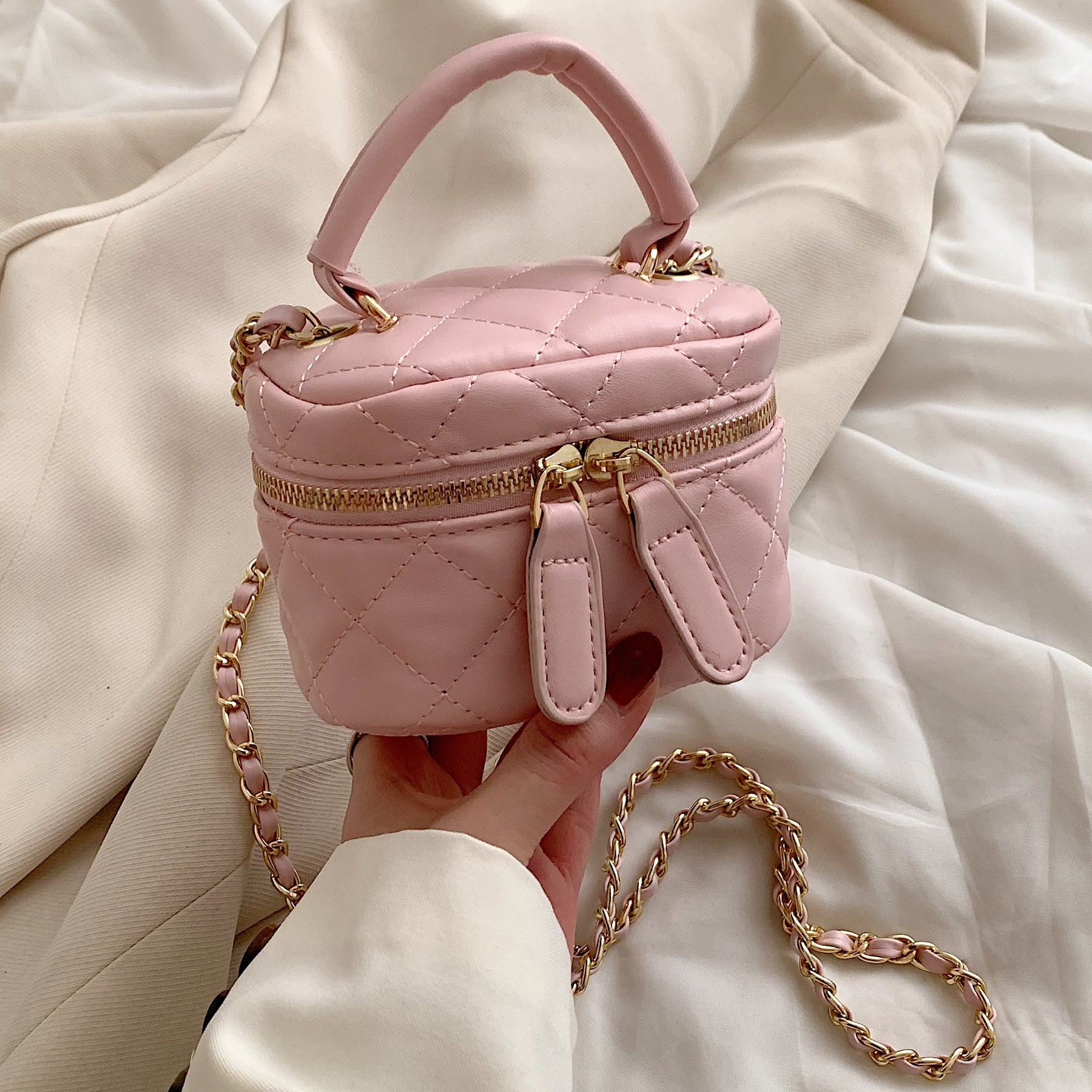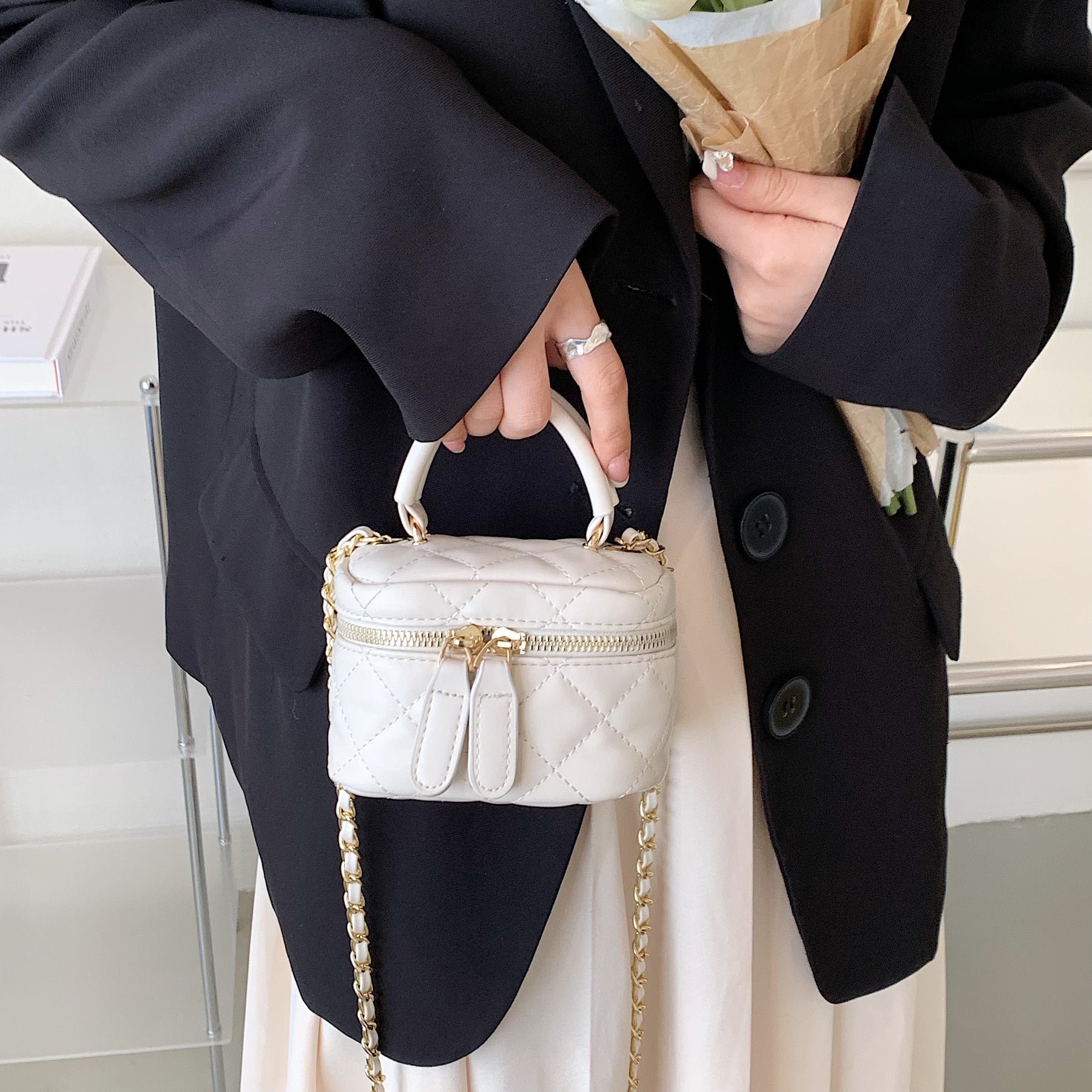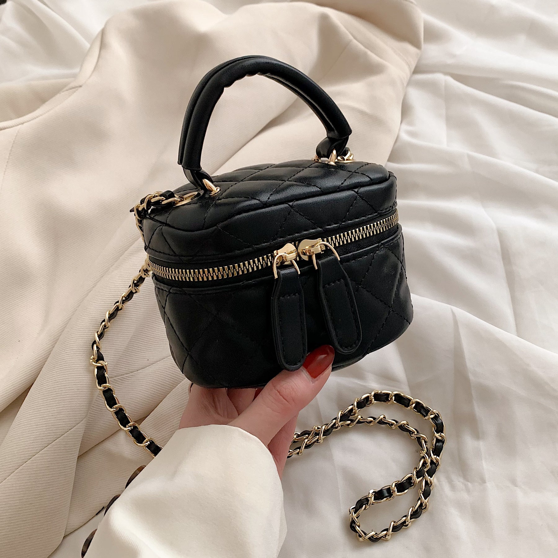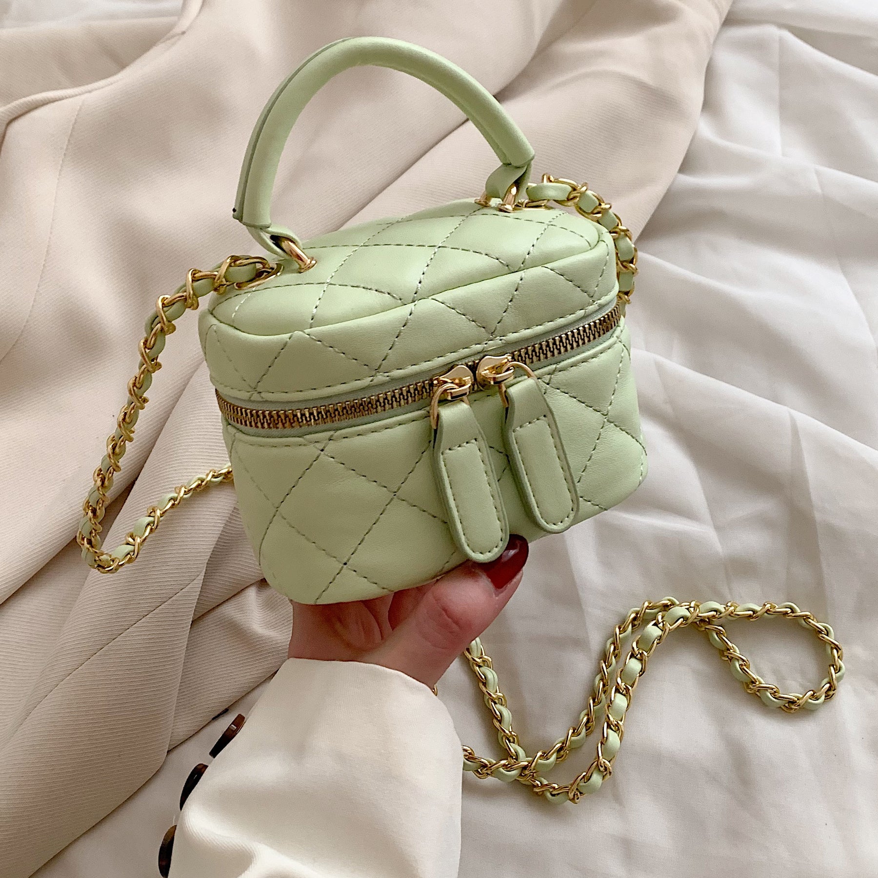 Mini Quilted Chain Crossbody Bag, Fashion PU Leather Bucket Bag, Women's Top Handle Purse (5.51*3.54*3.54) Inch