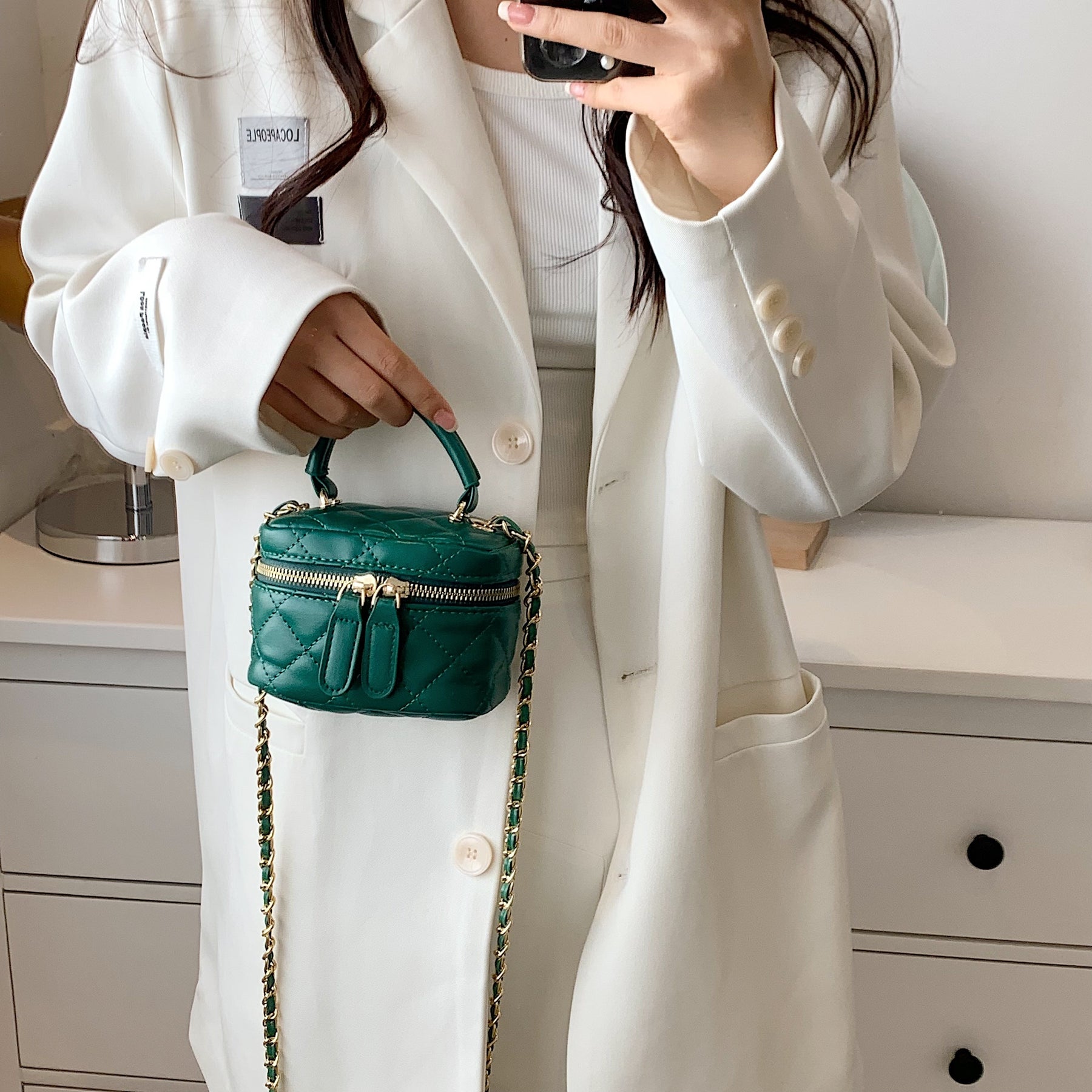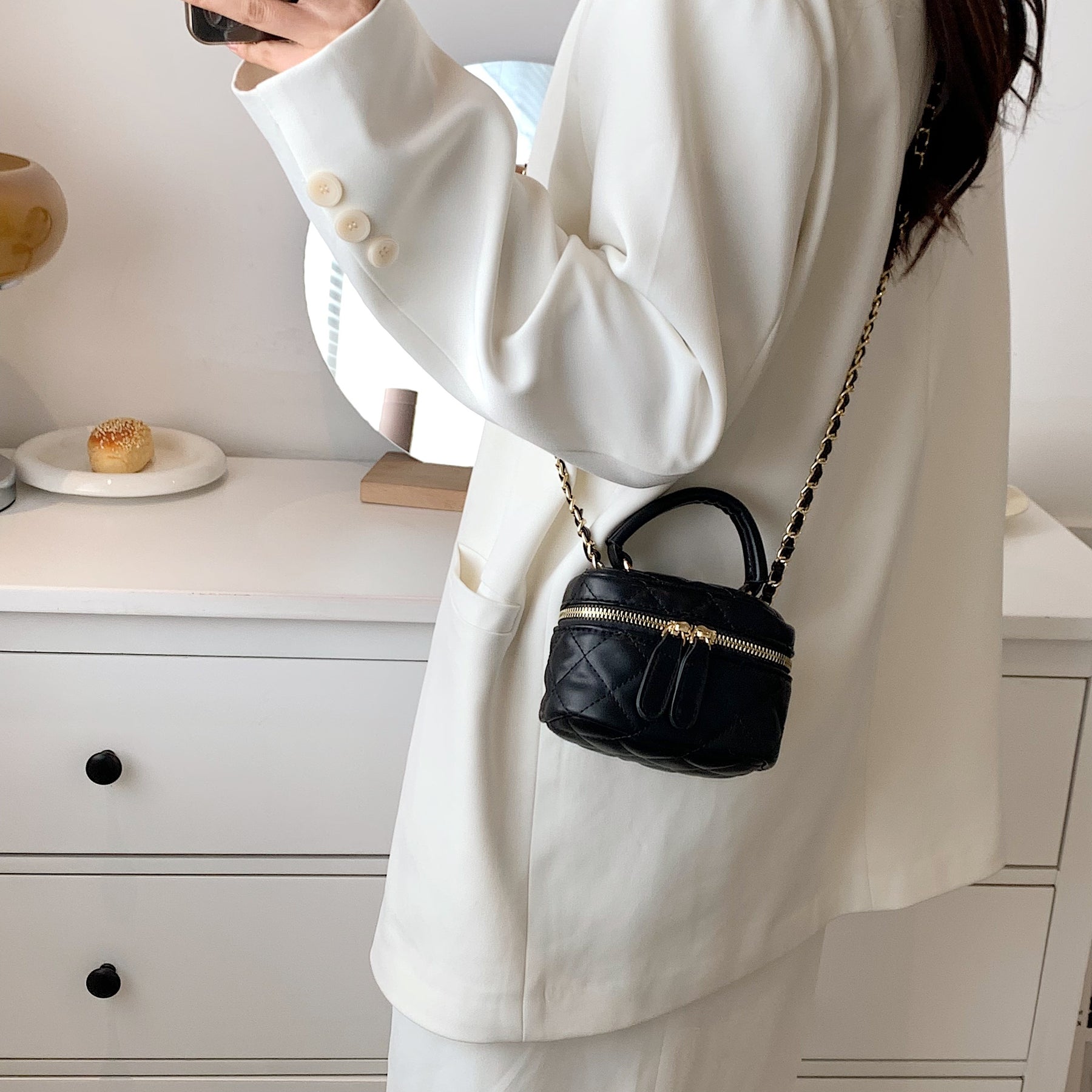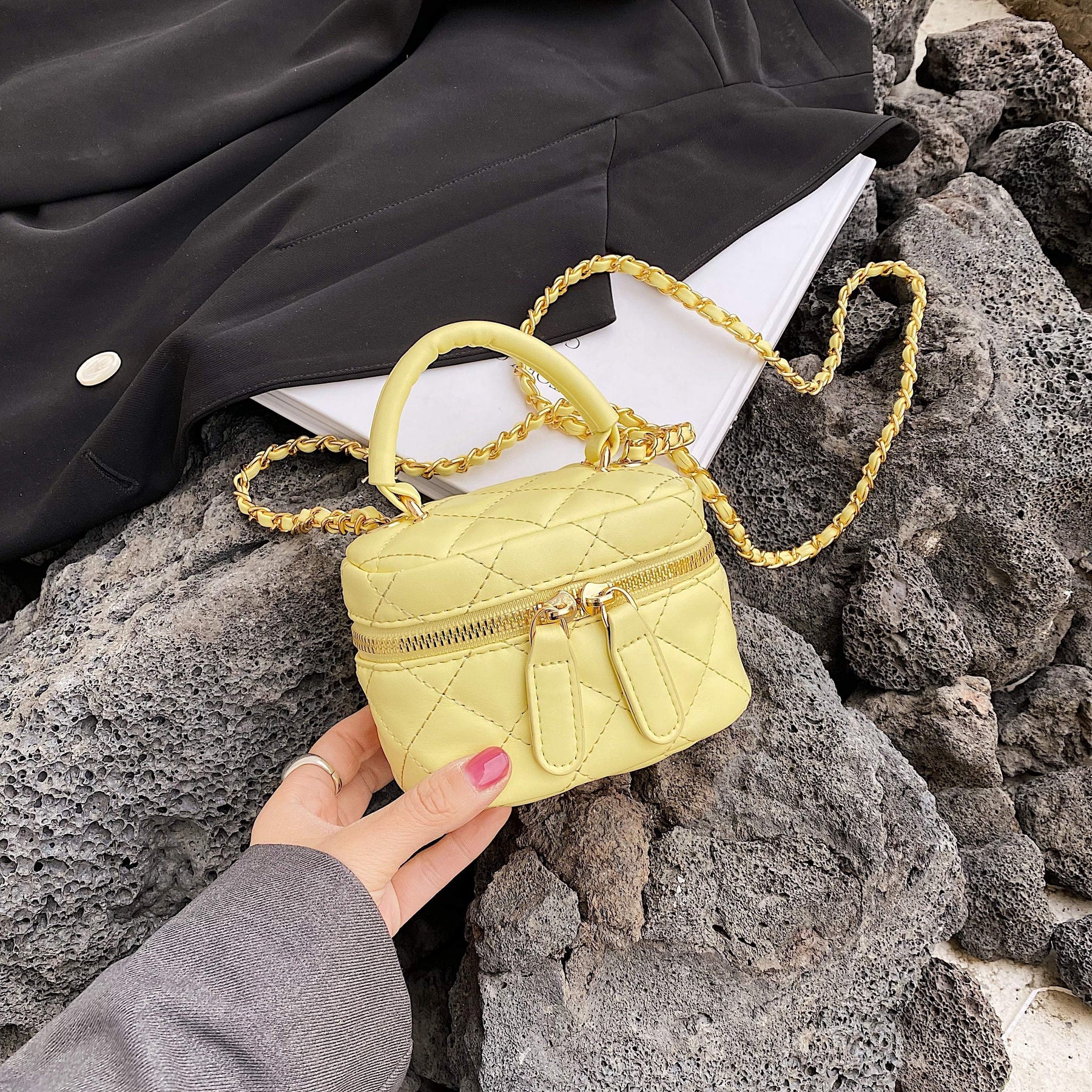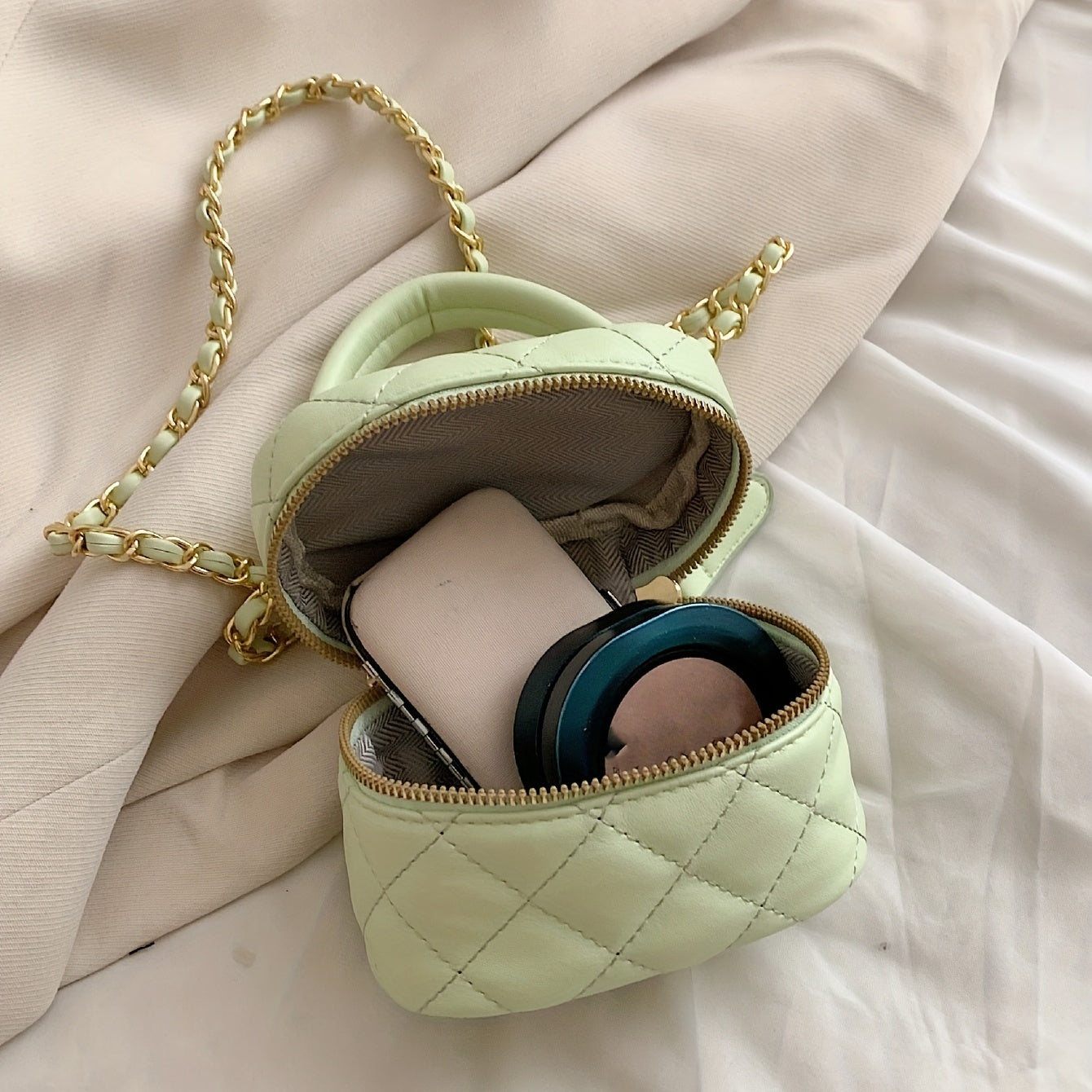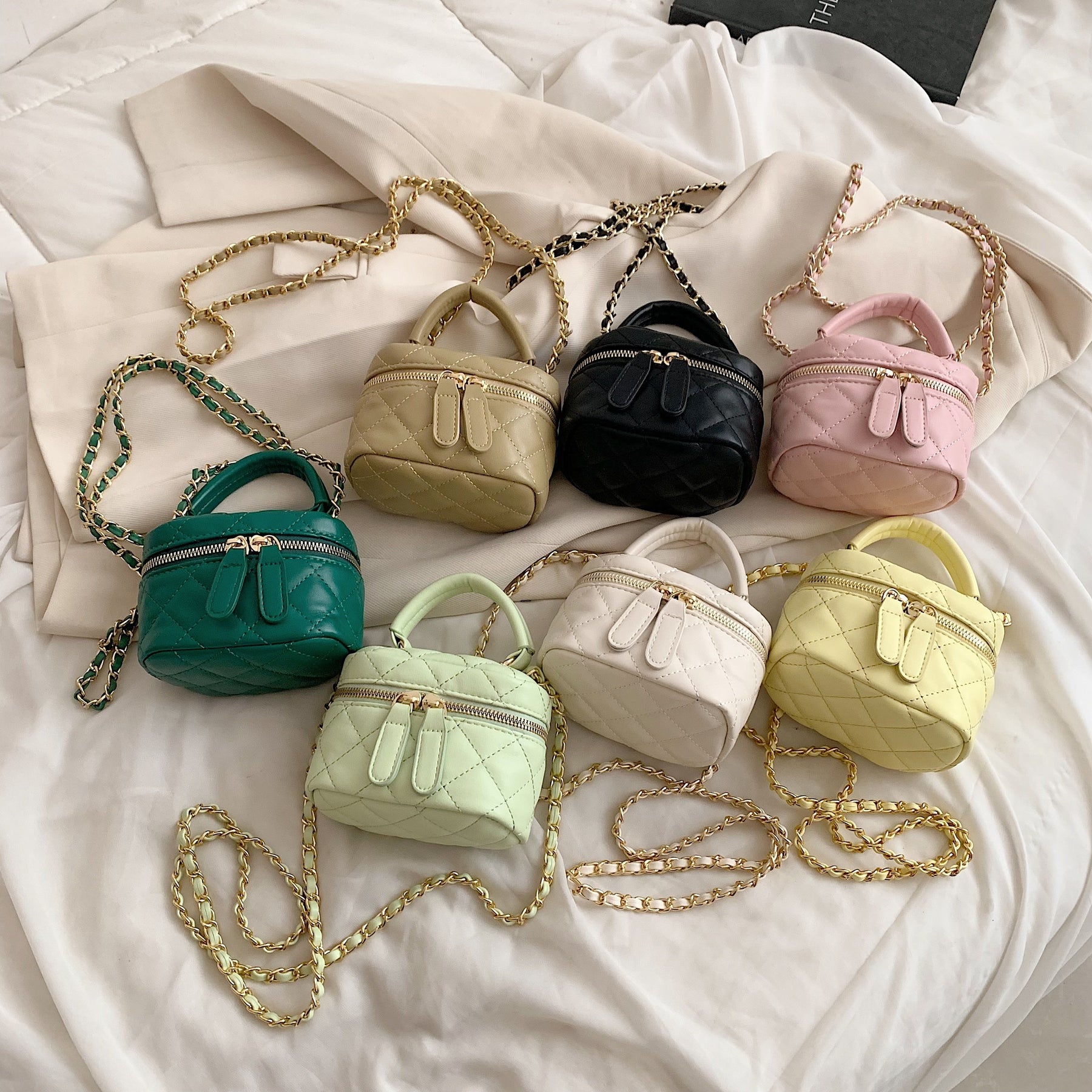 Mini Quilted Chain Crossbody Bag, Fashion PU Leather Bucket Bag, Women's Top Handle Purse (5.51*3.54*3.54) Inch