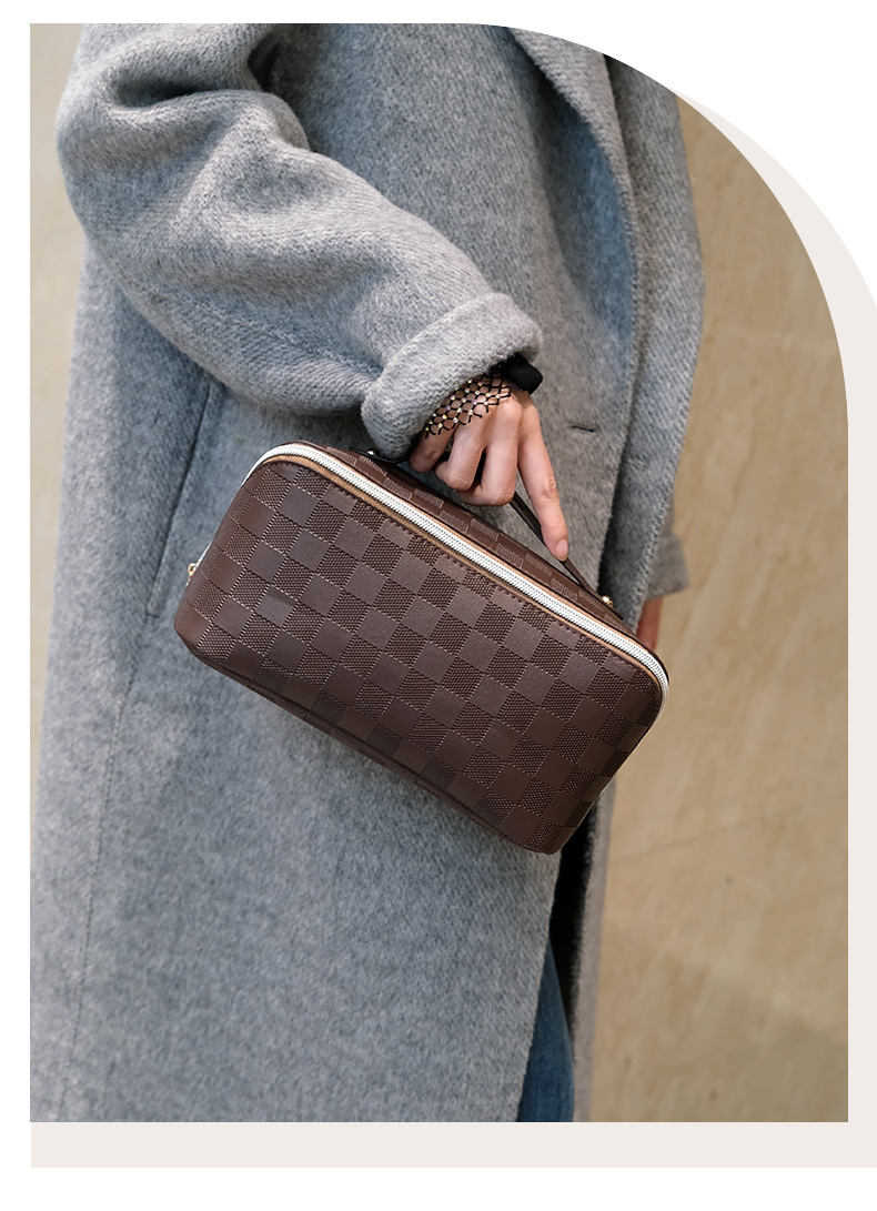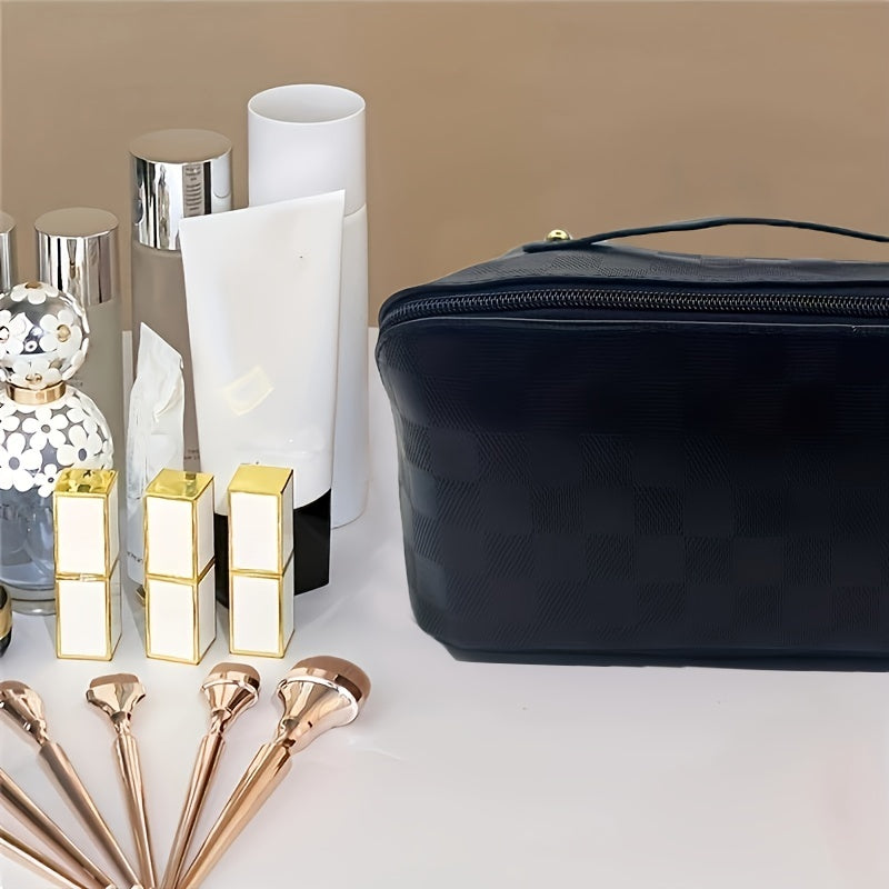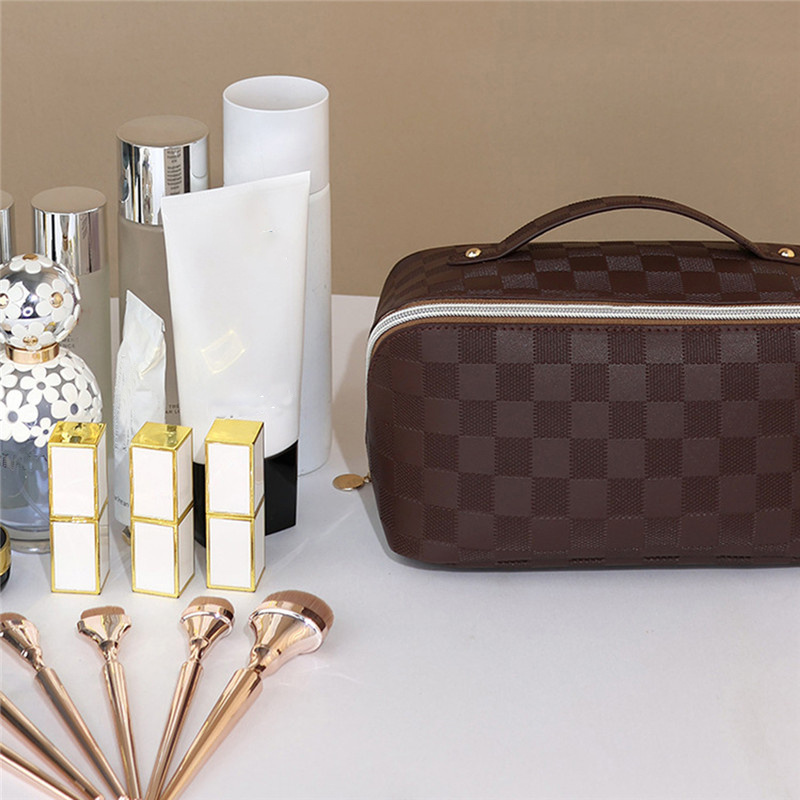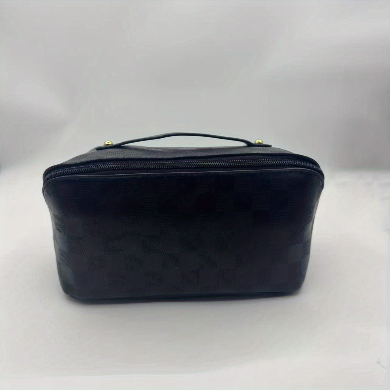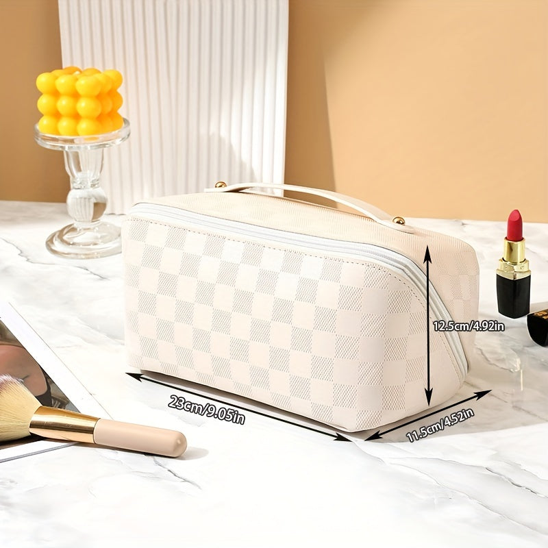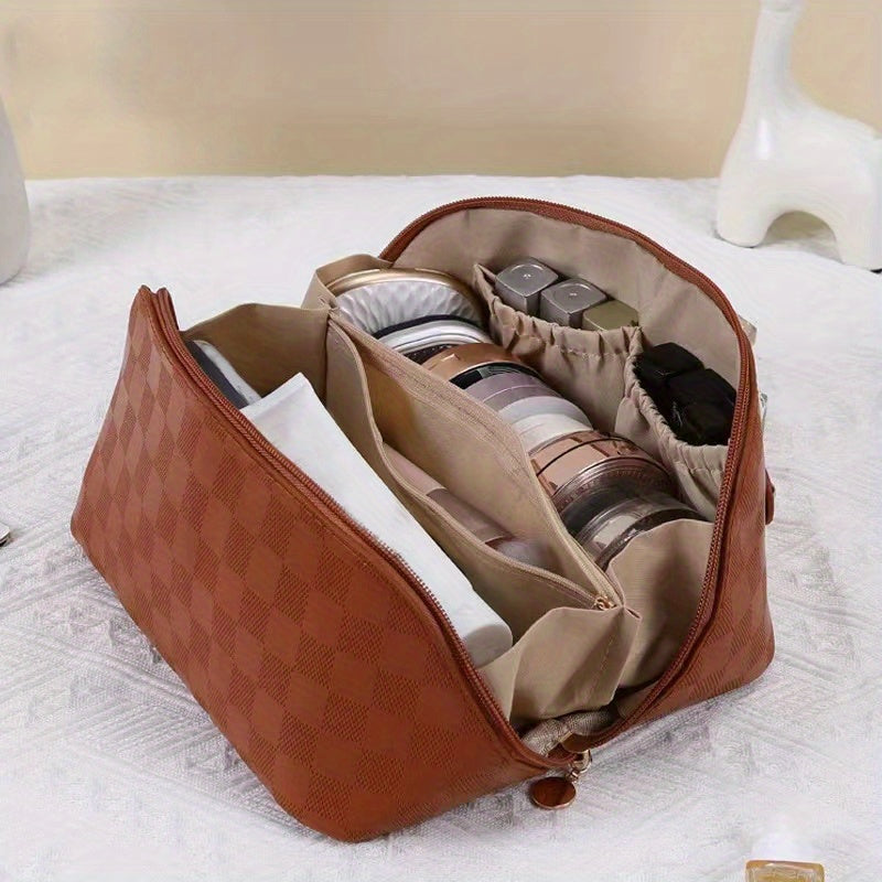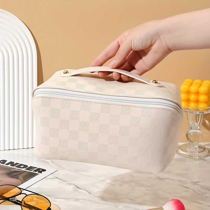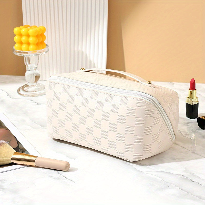 Minimalist Plaid Pattern Makeup Zipper Bag, Lightweight Cosmetic Bag, Travel Toiletry Wash Bag