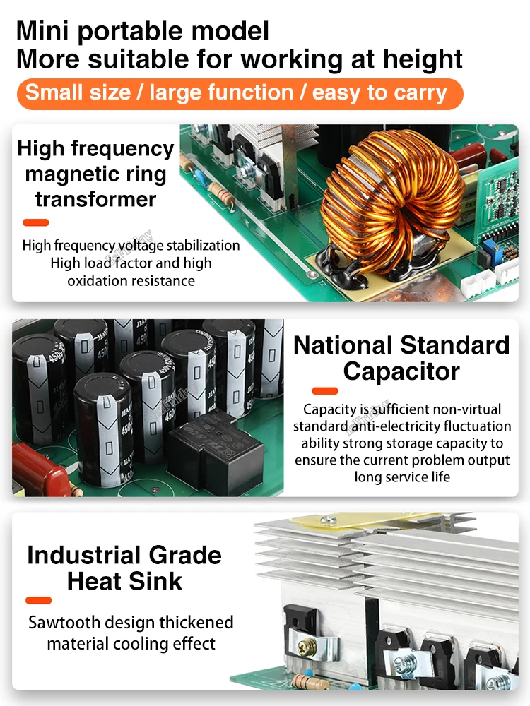 This is a compact and user-friendly household welding machine, equipped with a built-in fault detection light for added convenience. Perfect for welding iron fences, tables, chairs, and shelves, this machine is designed specifically for home use. Its small size makes it easy to store and transport, while its intuitive controls make it simple to operate.