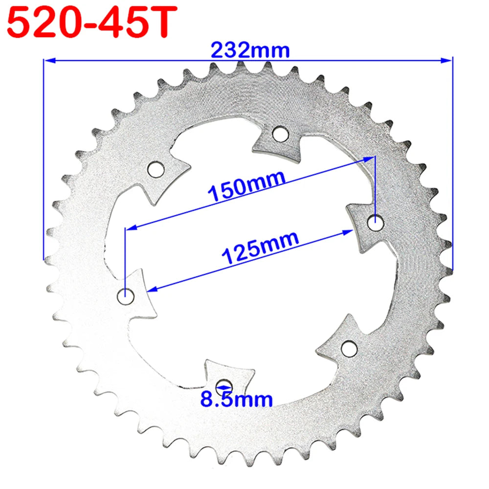 Motorcycle 520 Chains 45T Sprockets Rear Back Sprocket Cog fit for Karting ATV Off-road motorcycle parts