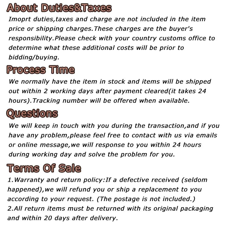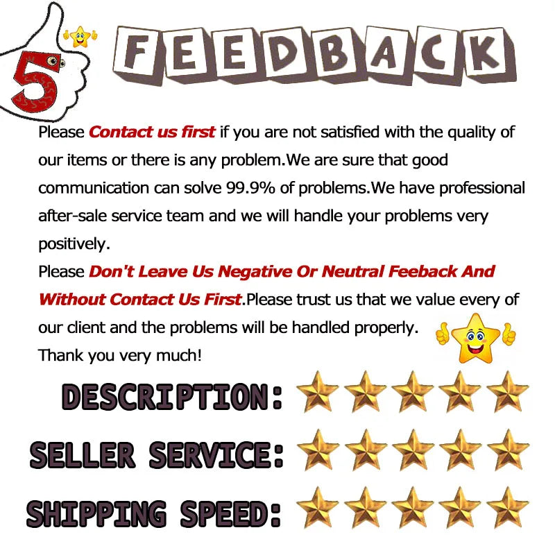 We maintain high standards of excellence and strive for 100% customer satisfaction! Feedback is very important We request that you contact us immediately BEFORE you give us neutral or negative feedback, so that we can satisfactorily address your concerns.
