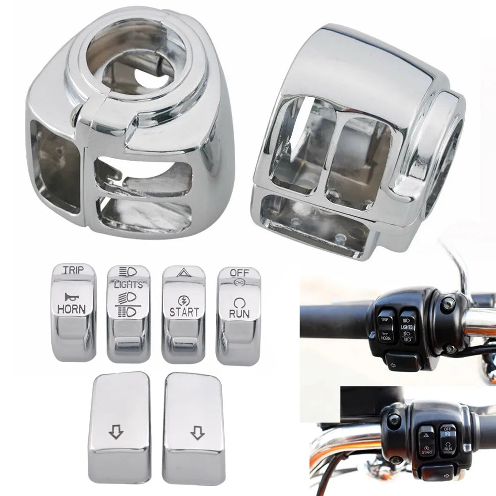 Motorcycle Handlebar Control Switch Housings Chrome Switch Caps Kit Parts For Harley VRSC Sportster XL XR Dyna Softail Road King