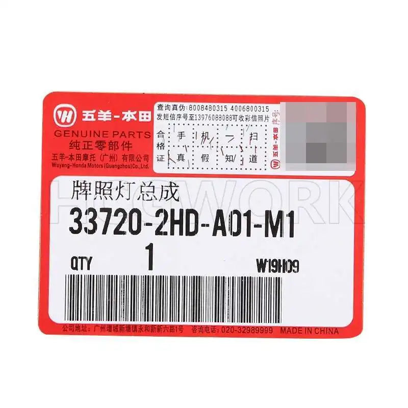 Motorcycle Original Parts License Plate Light for Wuyang-honda Cb190ss