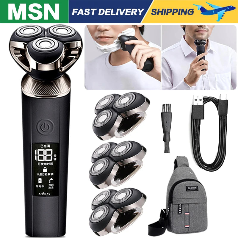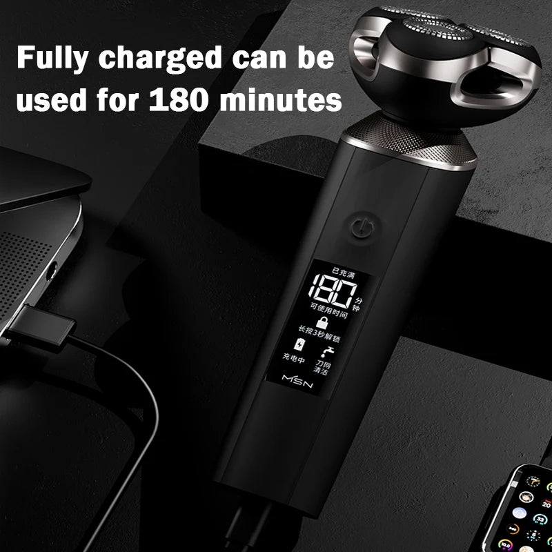 MSN Electric Shaver Electric Men Razor Beard Trimmer Fast Charging LCD Display Electric Shaving Machine Cutter Head Washable