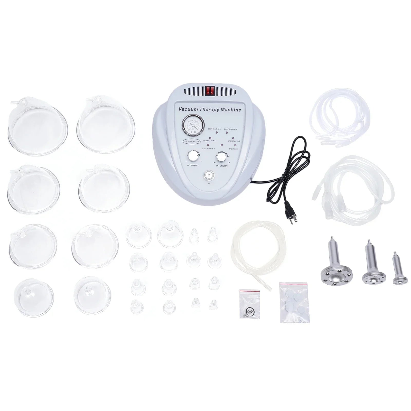 Are you still looking for a multifunctional, safe, and effective machine to shape your body? Our vacuum therapy machine will meet your needs. It has an ABS shell with baking paint, 24pcs cups with acrylic material, and 3pcs grease massage heads with aluminum alloy material, which is designed for butt enlargement, breast enlargement, and natural sculpting of legs and mid-section of the body. It is suitable for most ages, especially for females to have a better figure.