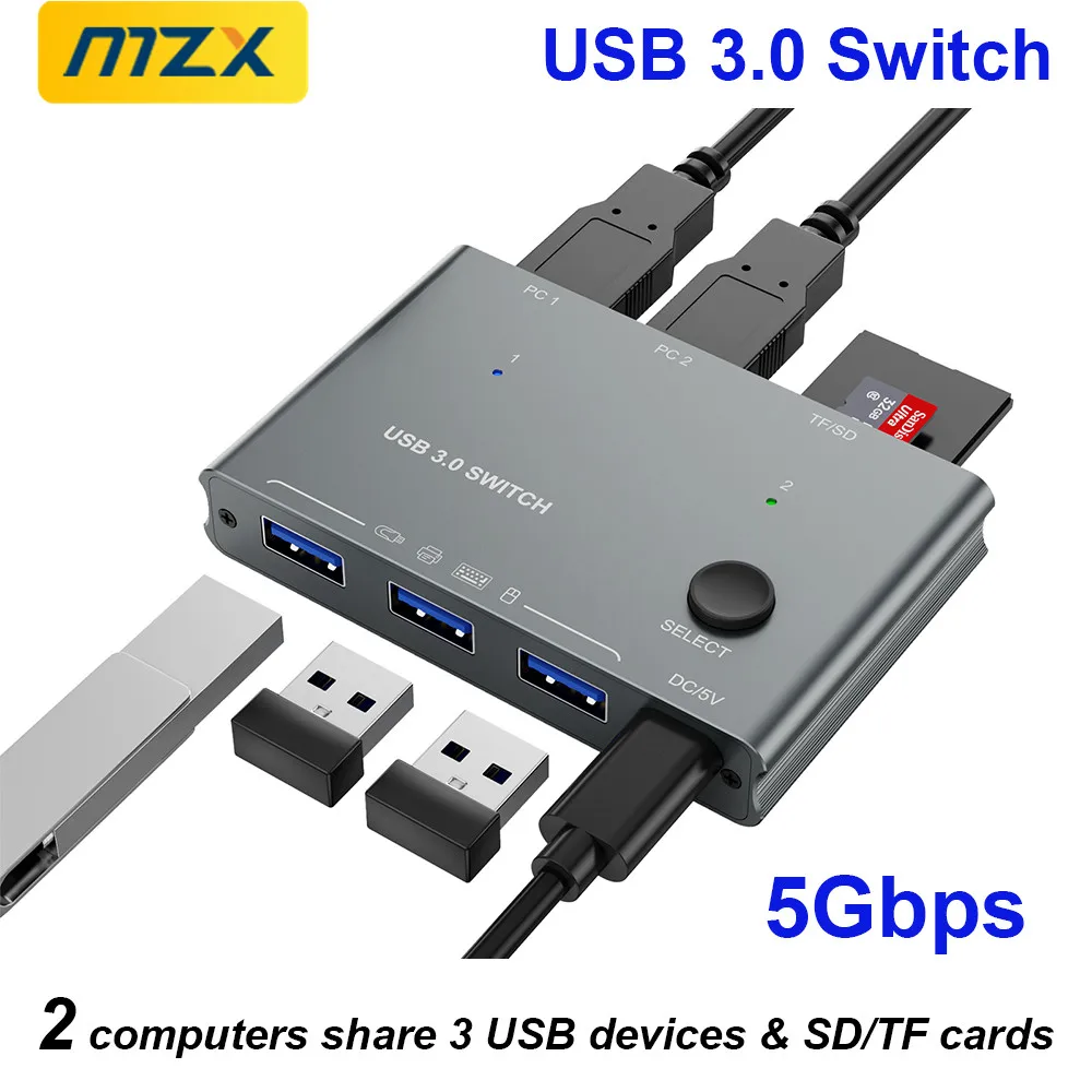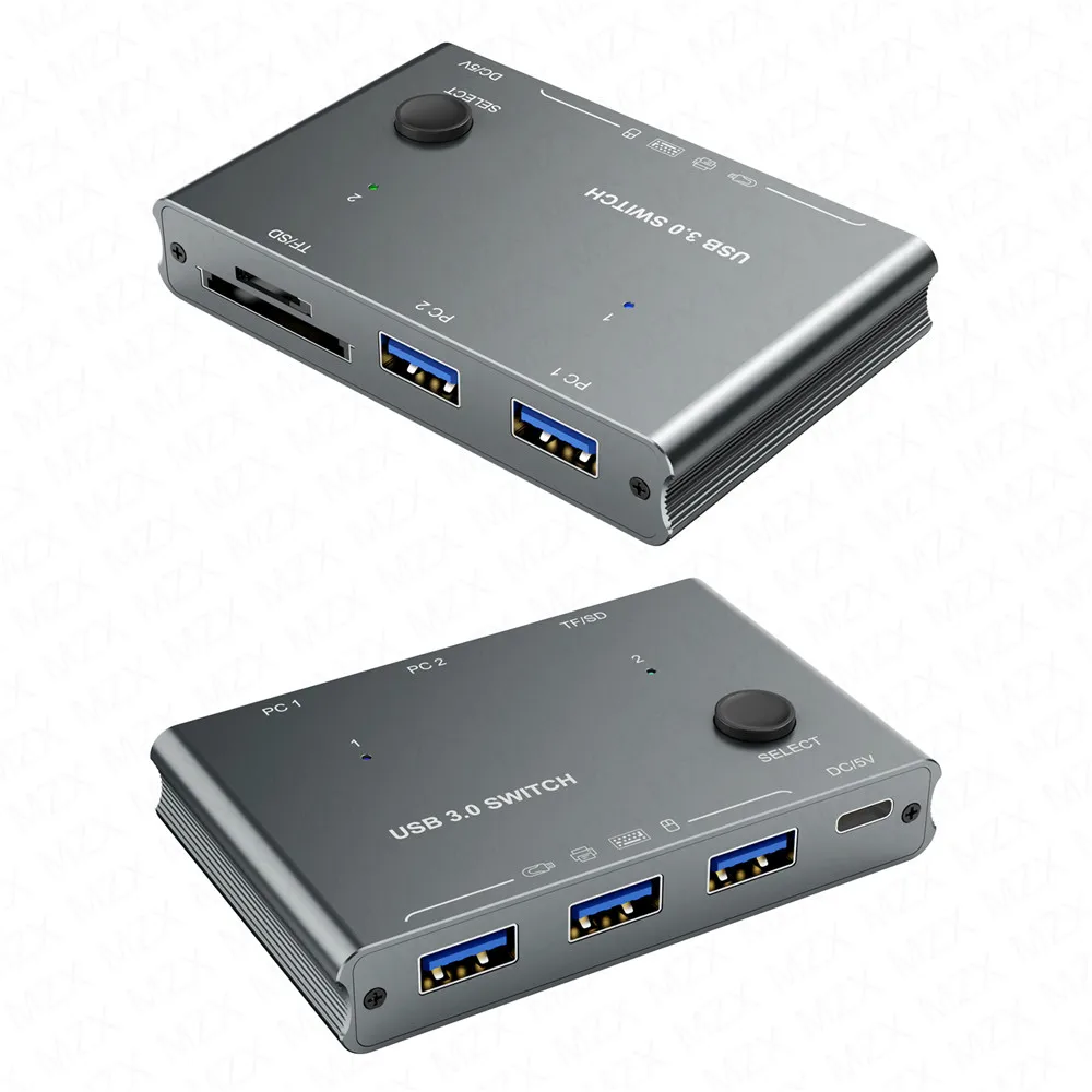 MZX USB 3.0 Switch Hub Switcher Selector SD TF Card Reader 2 PC Share 3 USB Hubs KVM Dock Station Docking Keyboard Mouse Printer HDD U-flash