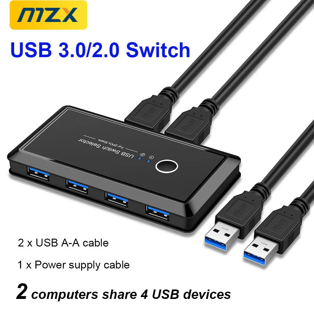 MZX USB Switch KVM Switcher 2x4 Hub Selector 2 Computer Share 4 USB Devices Keyboard Printer HDD KVM Switch Docking Dock Station Mouse Printer HDD U-flash
