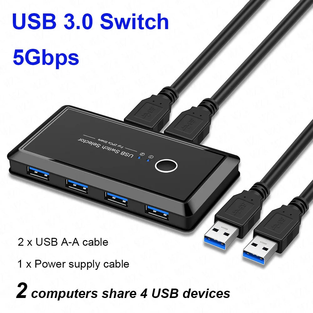 This 2 in 4 out USB Switch allows one button toggle between 2 computers to share 4 USB peripheral devices without constantly pull cables or set up complicated network sharing software. Support for wireless mouse and mechanical keyboards.