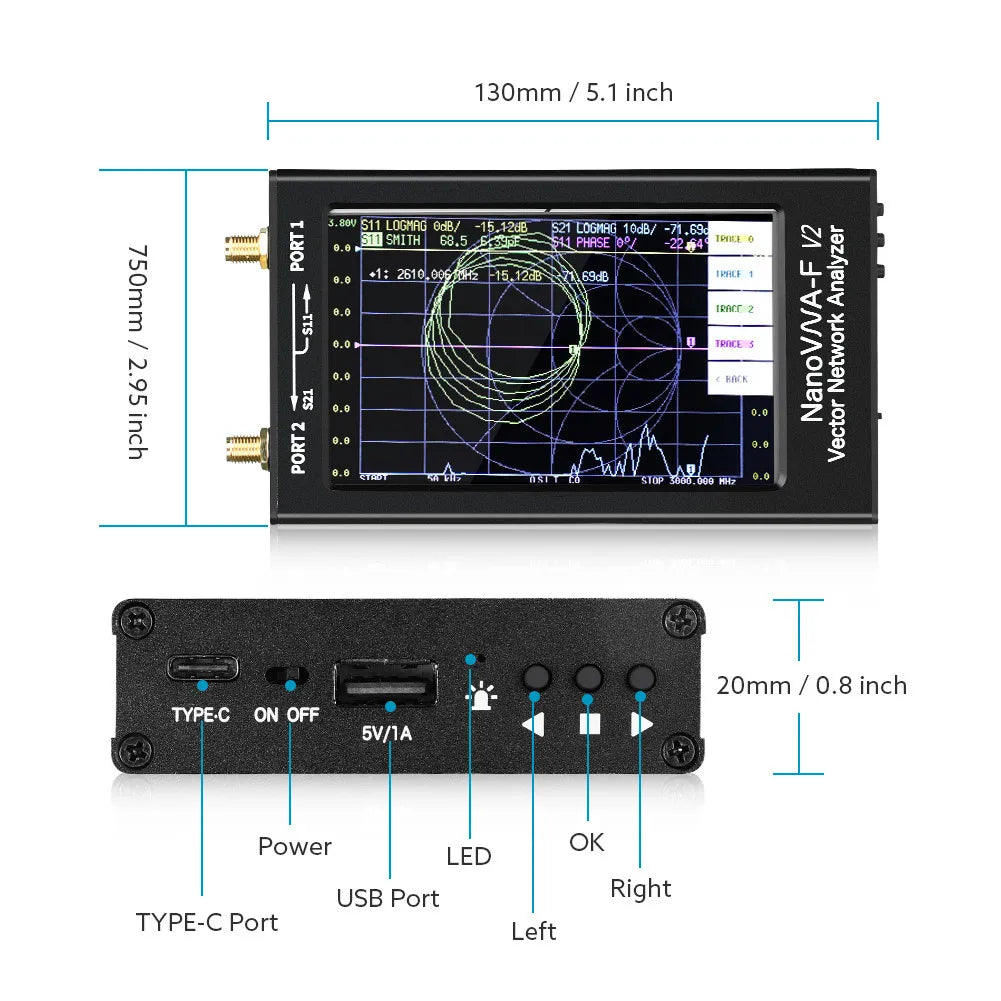 * The NanoVNA-F V2 is a new generation product provides perfect vector network measurement capabilities, tiny and handheld, stand-alone with 4.3-inch LCD display, more active, more colorful is within reach. it portable with 5000mAh battery powered or USB powered.Standby time is up to 7 hours.