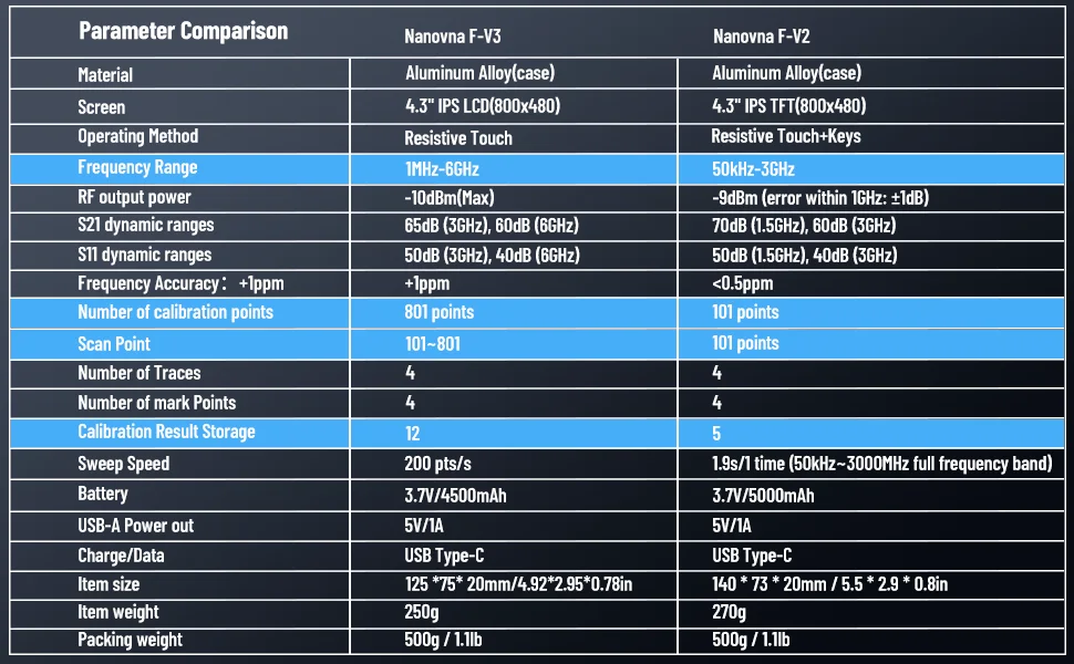 NanoVNA-F V3 is a portable Vector Network Analyzer (VNA) with a measurement frequency range of 1MHz ~ 6GHz, and can measure S11 and S21 parameters, of which the dynamic range of S11 is 50dB and S21 is 65dB.