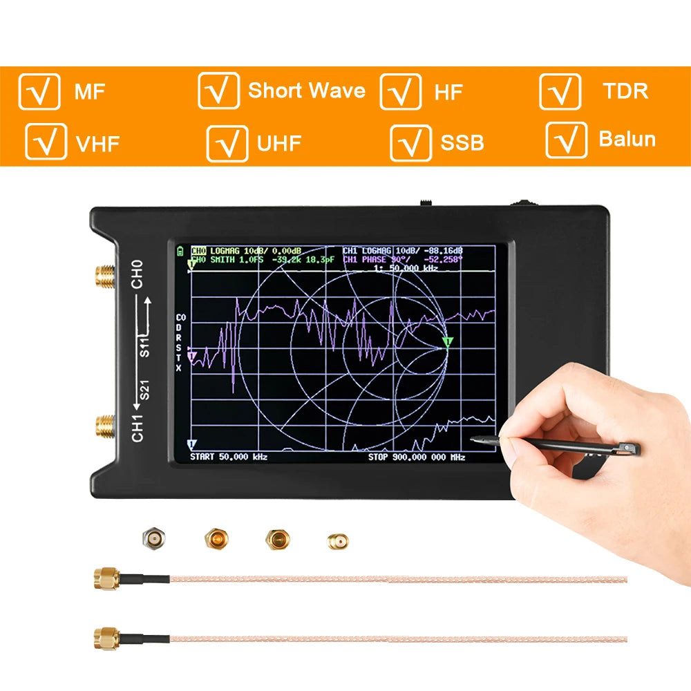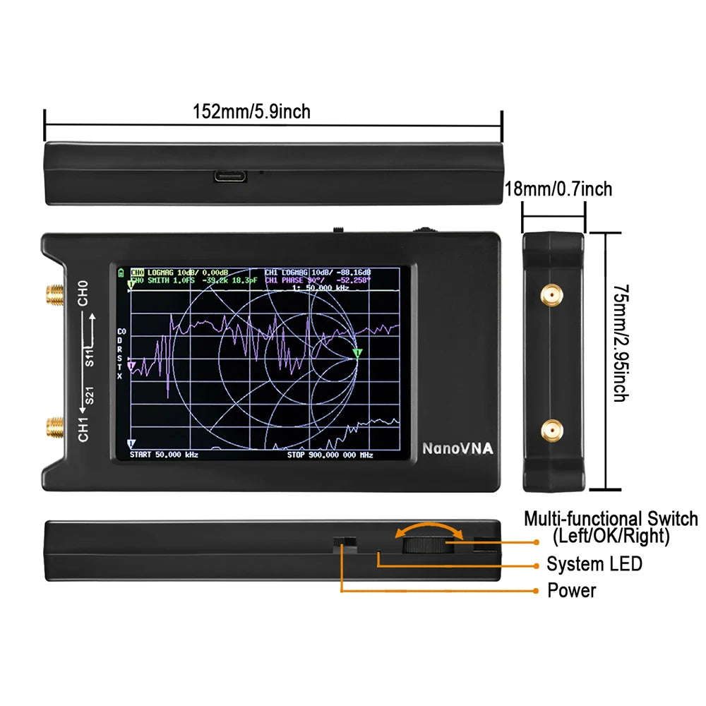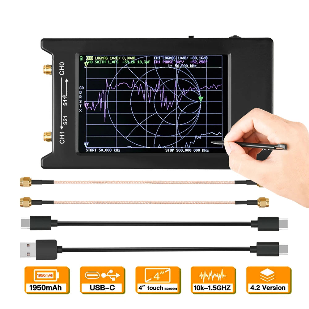 This Nano VNA is a DIY product that provides perfect vector network measurement capabilities, tiny and handheld, stand-alone with 4-inch LCD display, portable with 1950mAh battery powered or USB powered