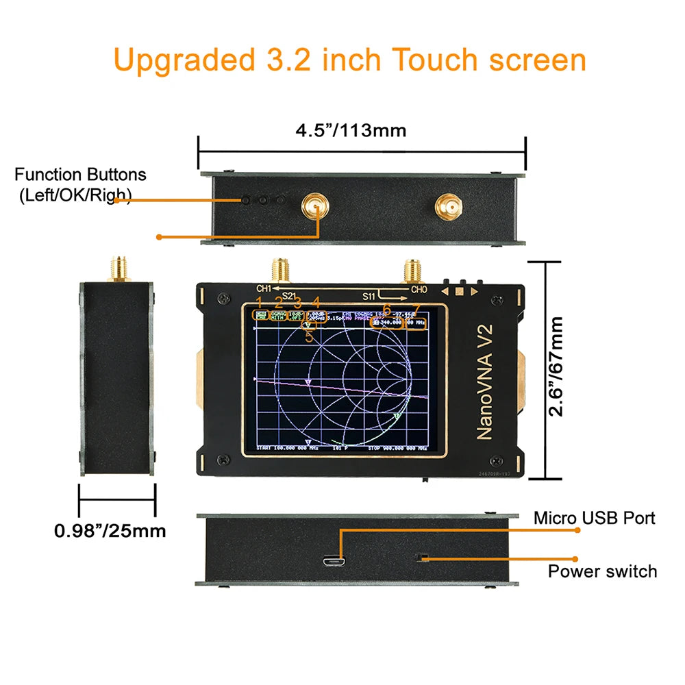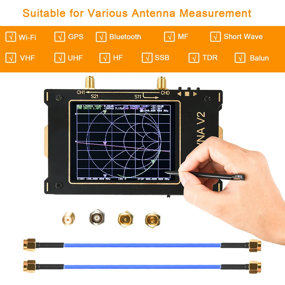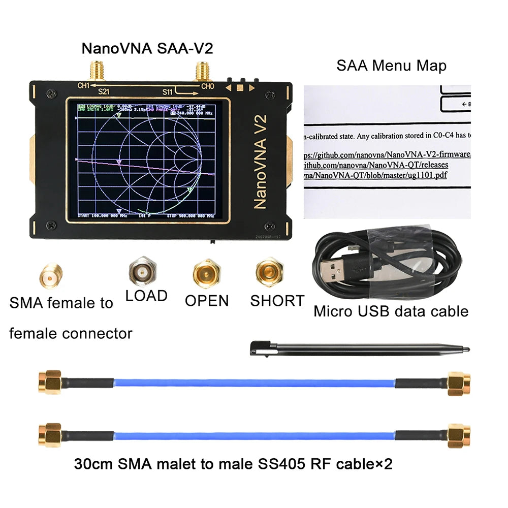 1. 3GHz second generation NanoVNA vector network analyzer is based on OwOComm's S-A-A-2 design with greatly upgraded performance. Compared with the basic S-A-A-2, the SAA-V2 is designed with a metal housing, an increased screen size from 2.8" to 3.2", and a touch screen pen to make your operation more convenient while adding measurement duplexer and filter functions.