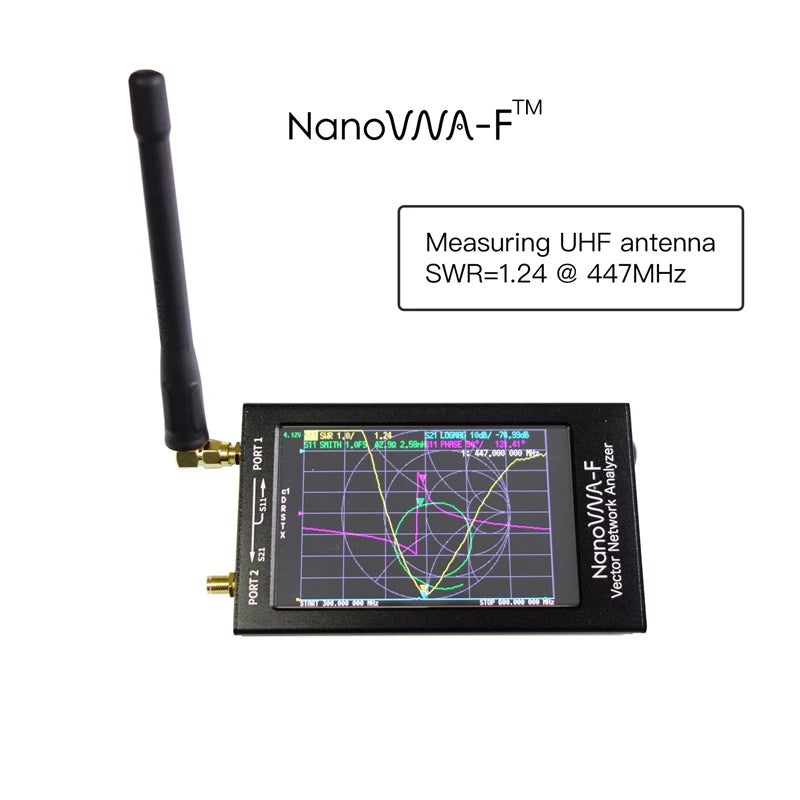 Measurable S parameters, voltage standing wave ratio SWR, phase diagram, group delay, Smith circle diagram... ;